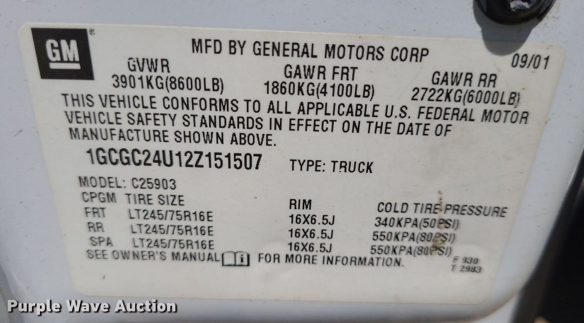 - VIN: 1GCGC24U12Z151507