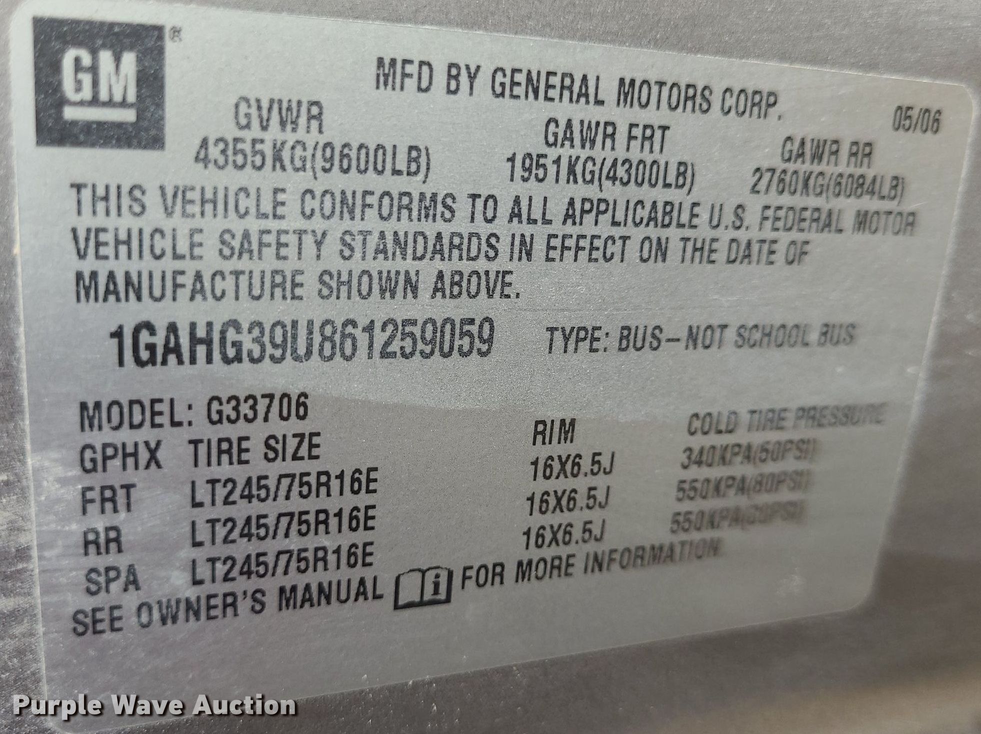 - VIN: 1GAHG39U861259059