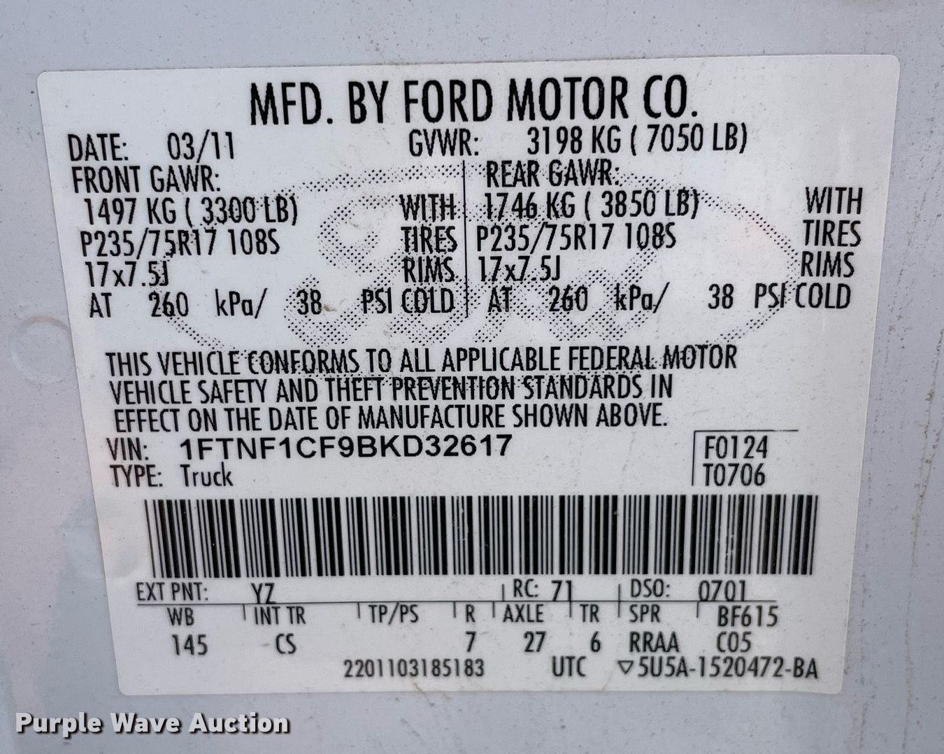 Purple Wave is selling a used 1/2 Ton Pickup or Van in Illinois. This item is a 2011 Ford F150 XL pickup truck with the following: Miles: 202,565 on odometer, VIN: 1FTNF1CF9BKD32617, Unit #: 2