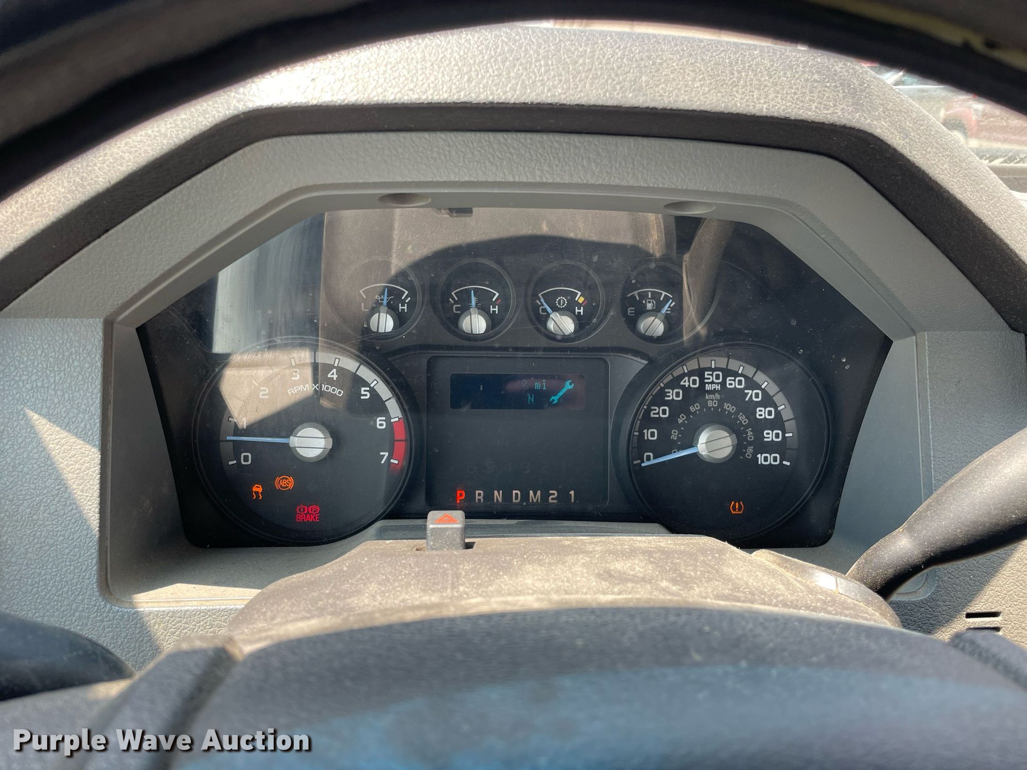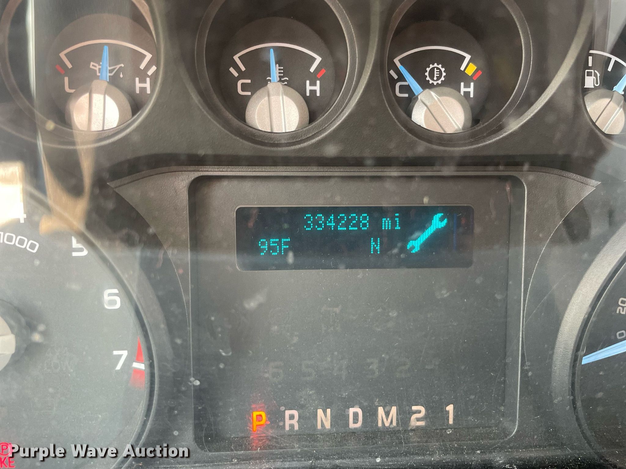 2014 Ford F250 Super Duty XLT SuperCab pickup truck. Miles: 334,228 on odometer, Hours: 11,176 on meter, VIN: 1FT7X2B63EEA34404, Unit #: 45. Engine Displacement: 6.2L V8 OHV, Cylinders: 8, Fuel type: Gas. Transmission Automatic, Four wheel drive. Interior AC, Heat, Power windows, Power locks, Cruise control. Tires Size: 245/75R17. Notes Dash warning indicator: TPMS, ABS, Brake, Traction control, Windshield chipped or cracked, Possible electrical issues. Illinois title. Title distribution may be delayed up to 14 days from verification of funds. 4319 North Main Street Access Road 8. East Peoria, IL 61611