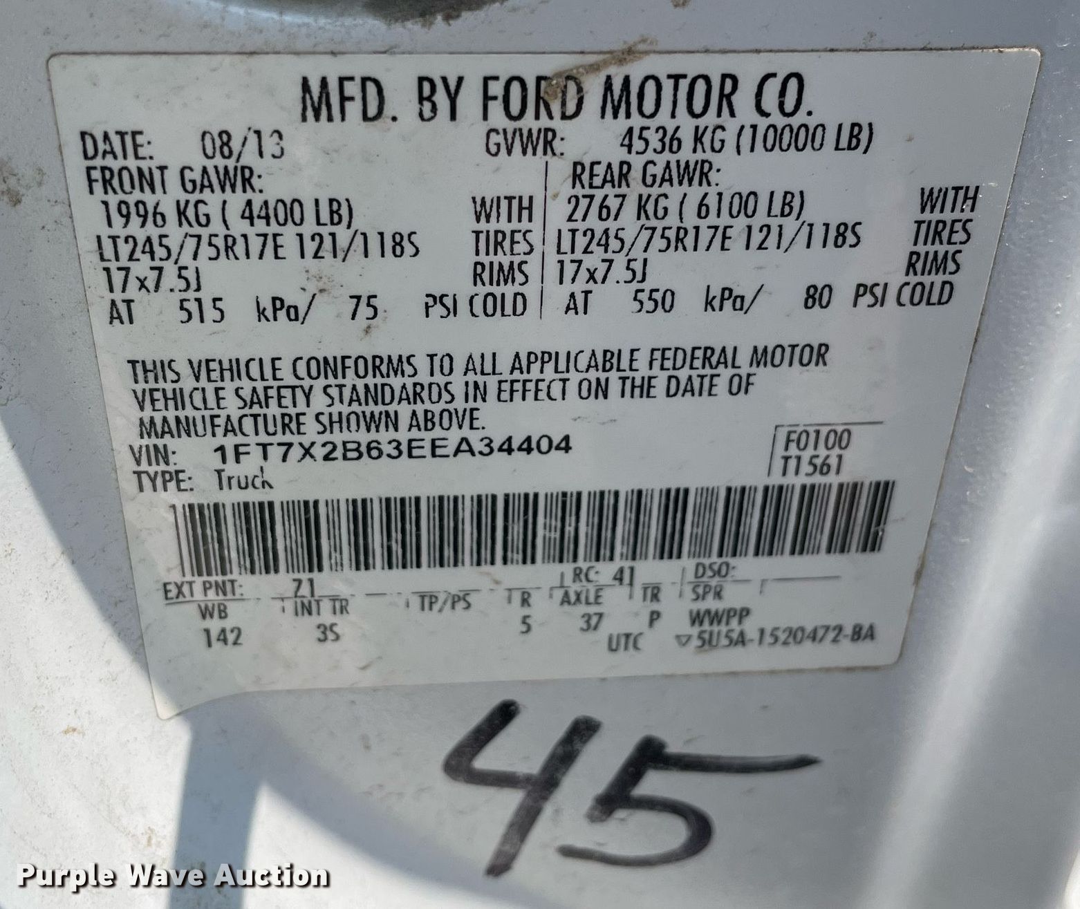 Purple Wave is selling a used 3/4 or 1 Ton Pickup or Van in Illinois. This item is a 2014 Ford F250 Super Duty XLT SuperCab pickup truck with the following: Miles: 334,228 on odometer, Hours: 11,176 on meter, VIN: 1FT7X2B63EEA34404, Unit #: 45