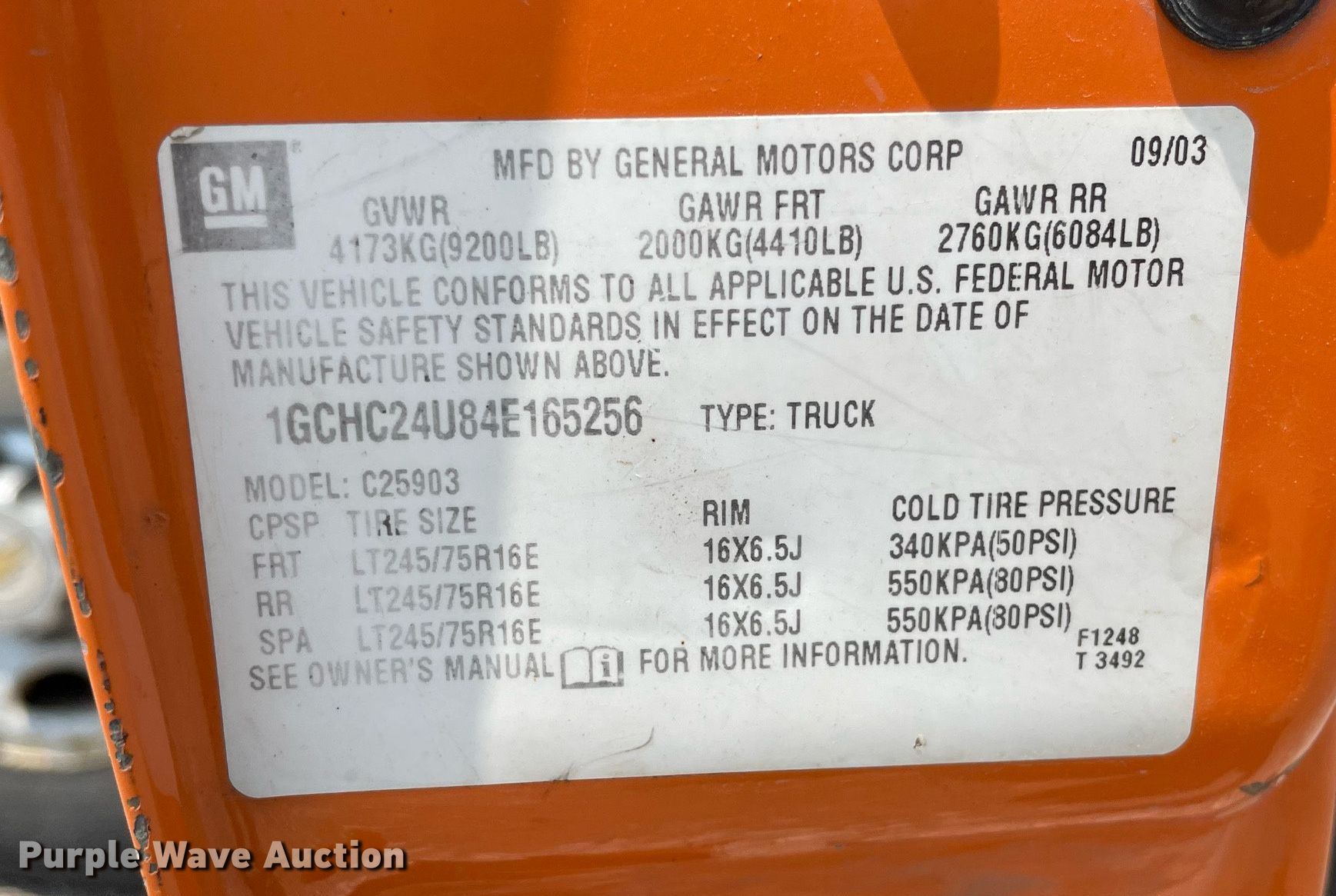 - VIN: 1GCHC24U84E165256