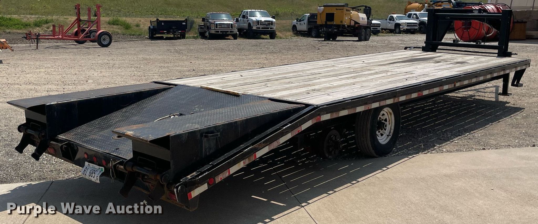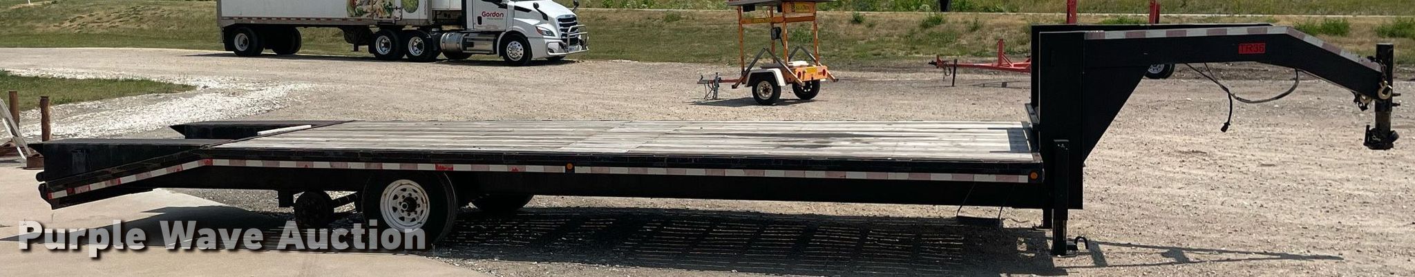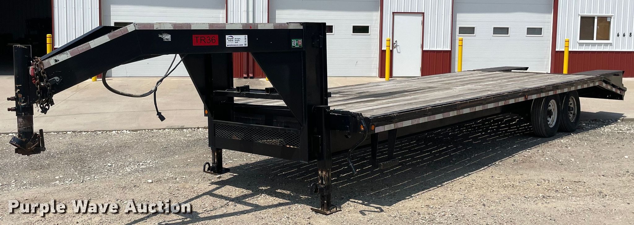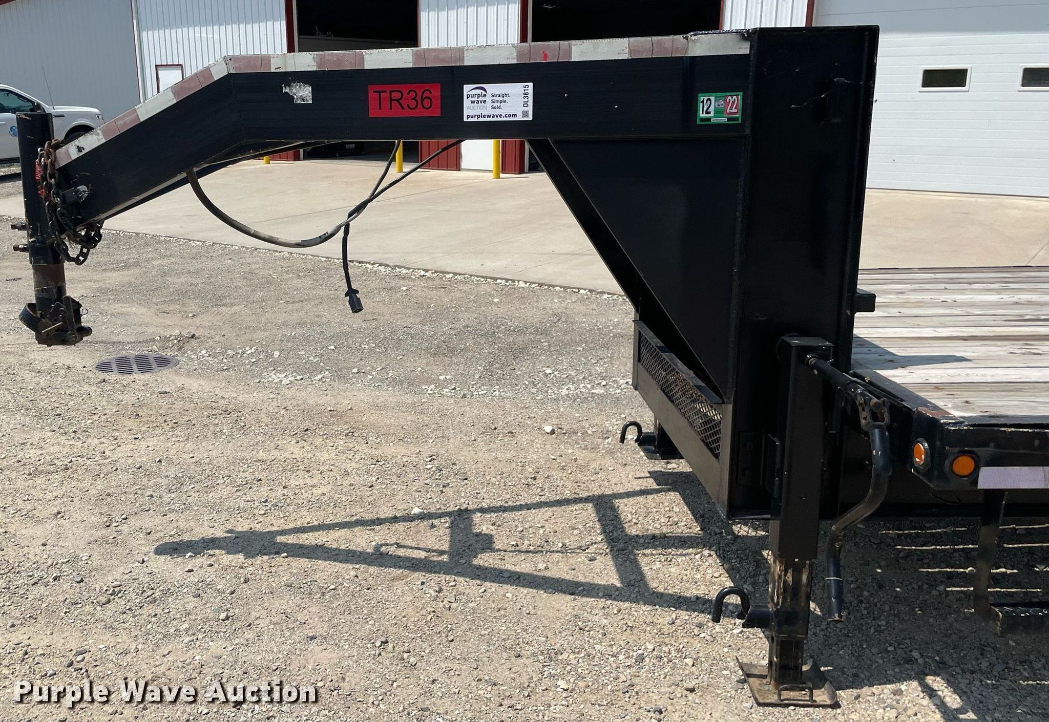 2005 Big Tex equipment trailer. VIN: 16VGX222X52347386, Unit #: TR36. Dimensions Overall: 36' 3" L x 102" W, Deck: 22' L x 97.5" W, Tail length: 5' 6", Ramps: Manual Length: 60". Features Deck type: Wood. Chassis Hitch: Gooseneck, Landing gear: Dual, Suspension: Spring, Brakes: Electric, Axles: Tandem. Tires Steel wheels, Size: 235/80R16. Notes Wheel hub studs broken, Wheel and tire missing. Illinois title. Title distribution may be delayed up to 14 days from verification of funds. 4319 North Main Street Access Road 8. East Peoria, IL 61611