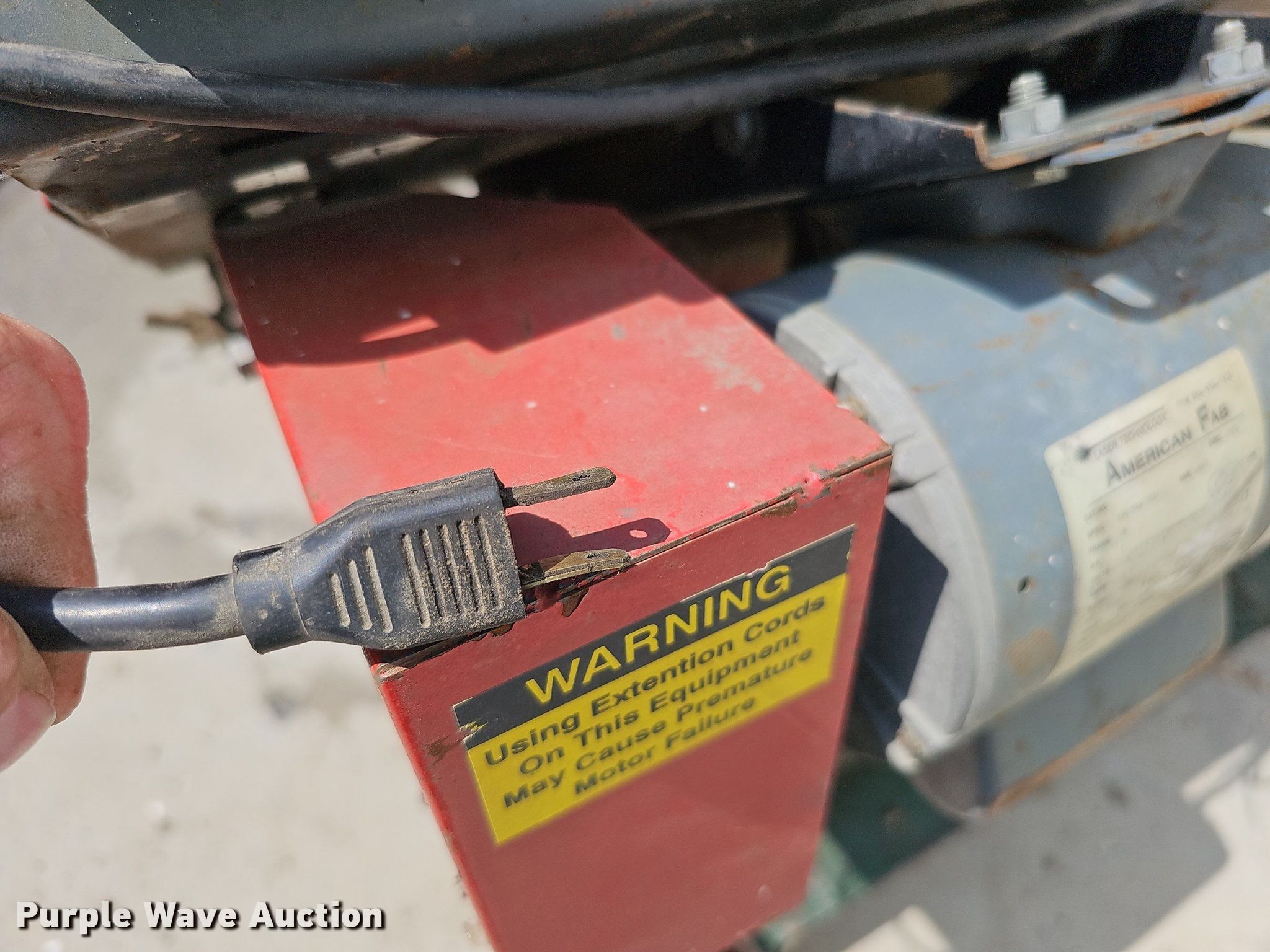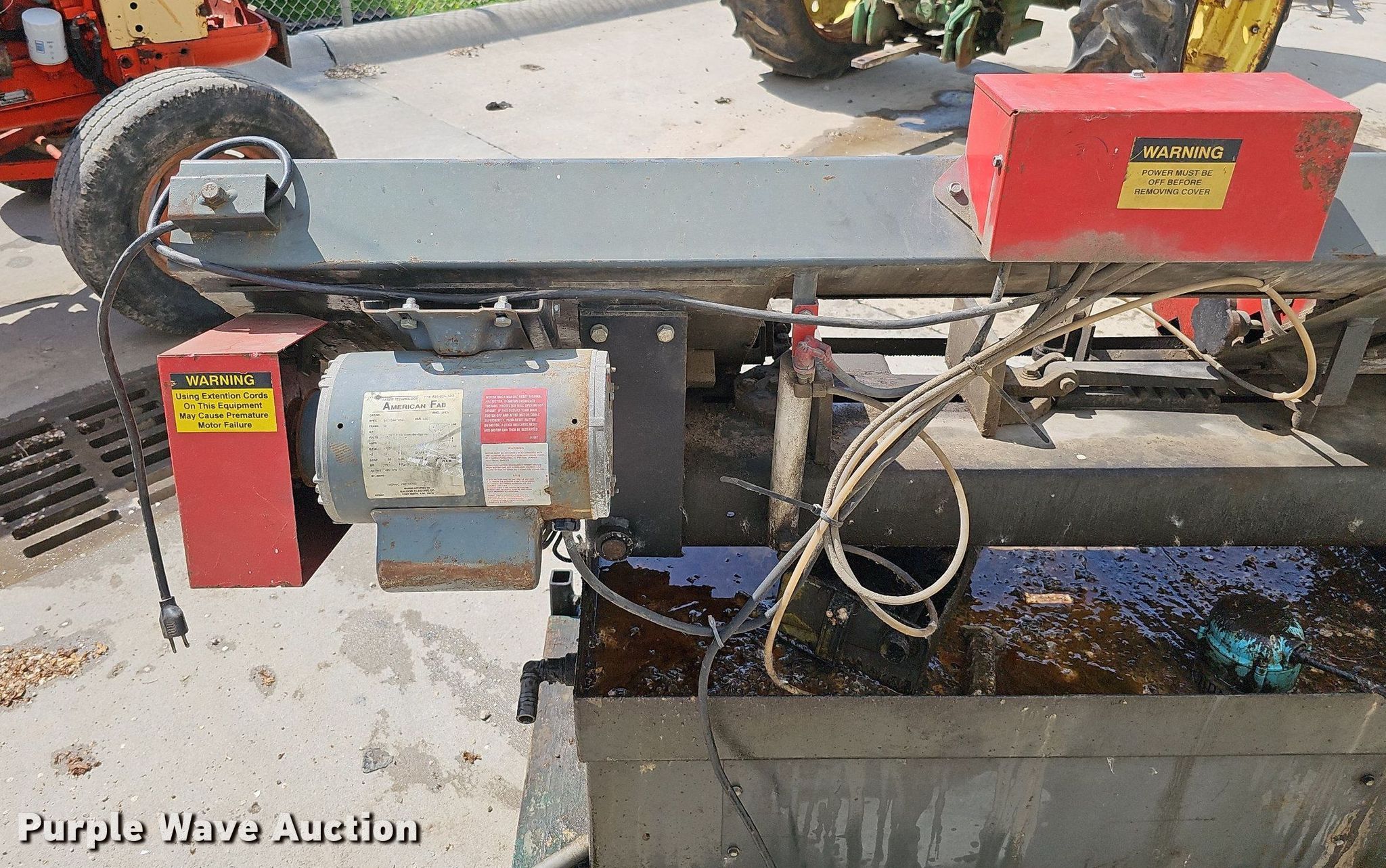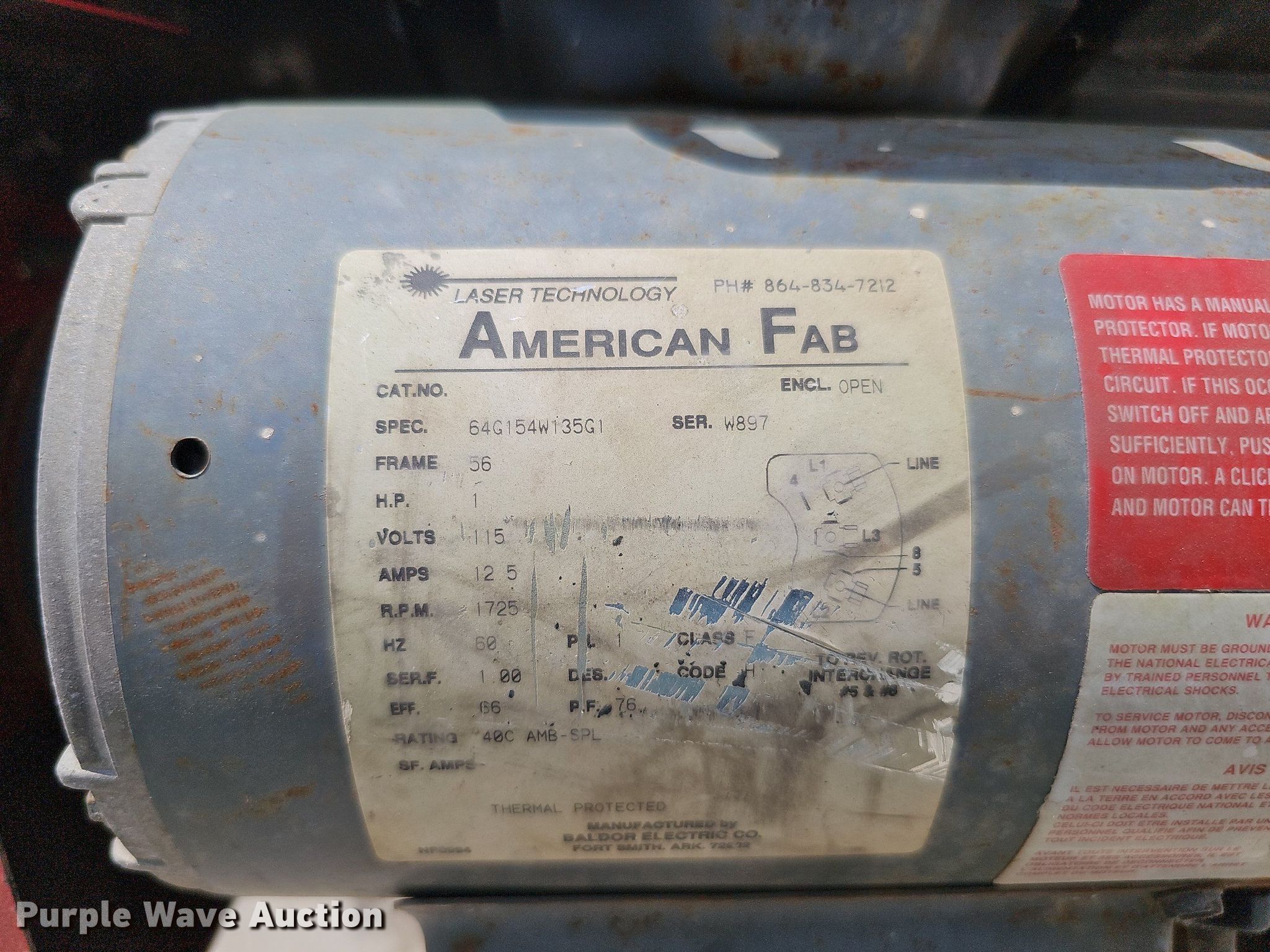 Ramco RS100P bandsaw. Serial: 12124. Electric Motor American Fab, Serial: W897, HP: 1, Volts: 115, Phase: Single. Features 6"W cutting capacity. Notes Rolling cart included, Non-operational unit. Valley Corp. 28001 Ida Circle. Valley, NE 68064