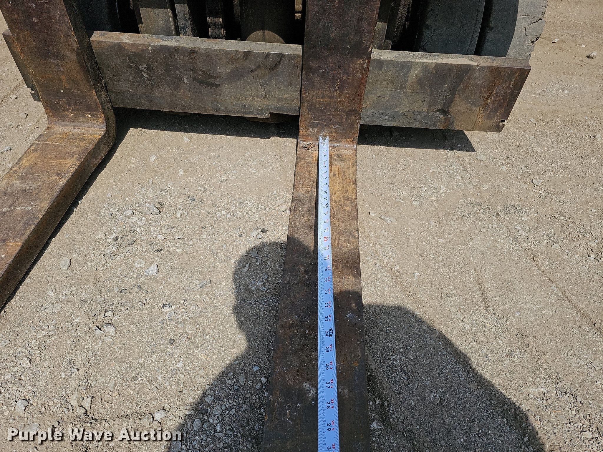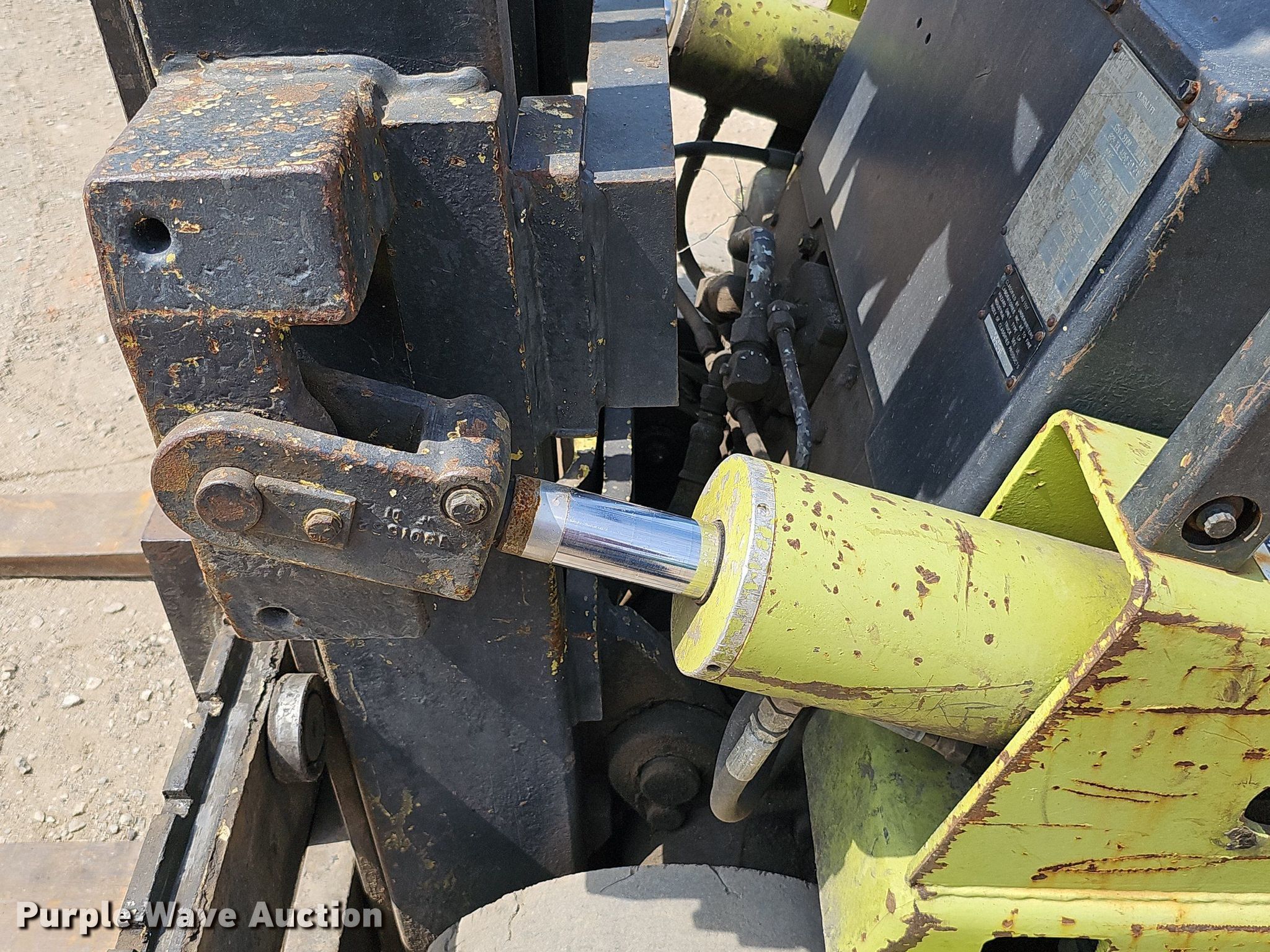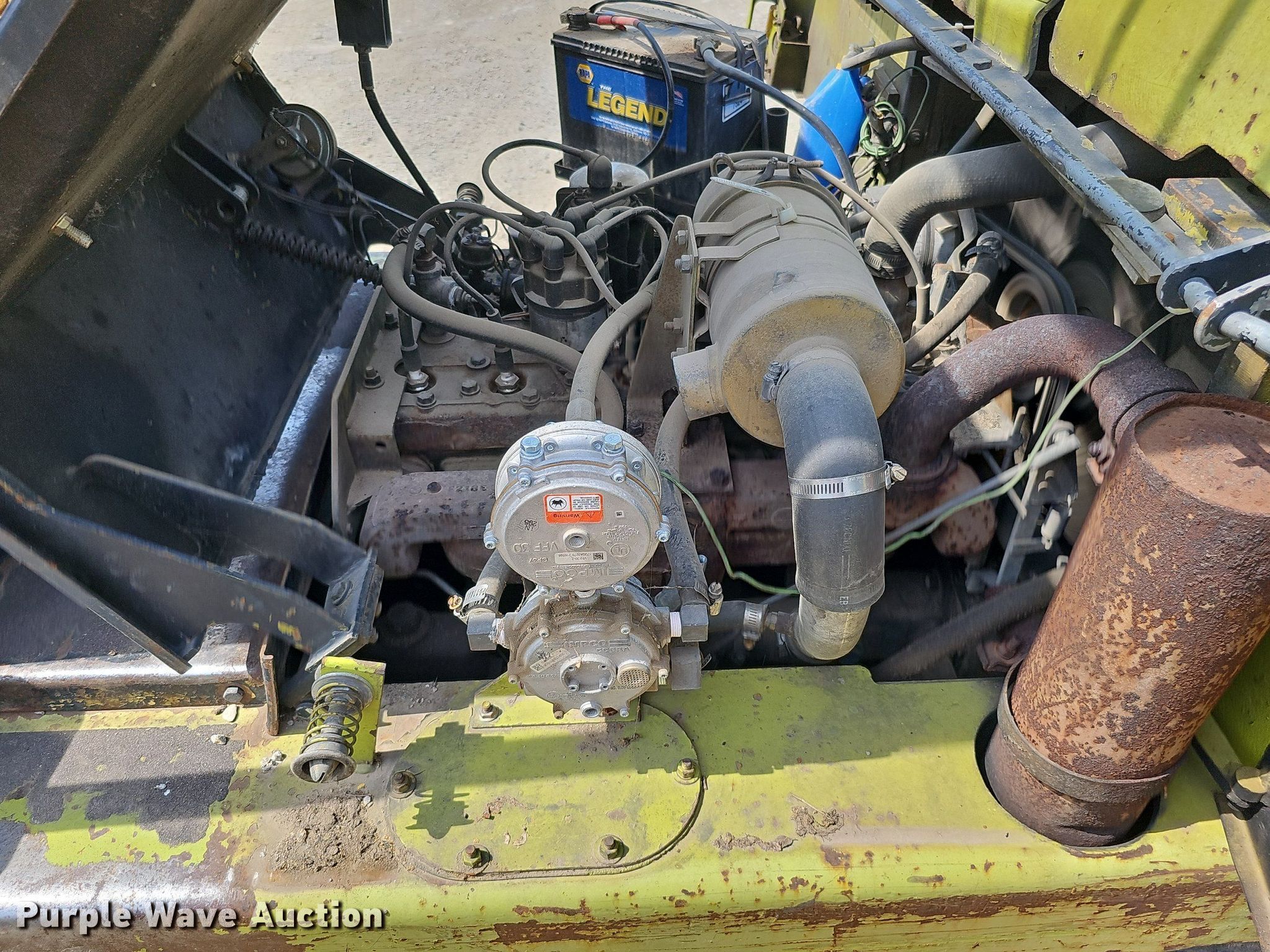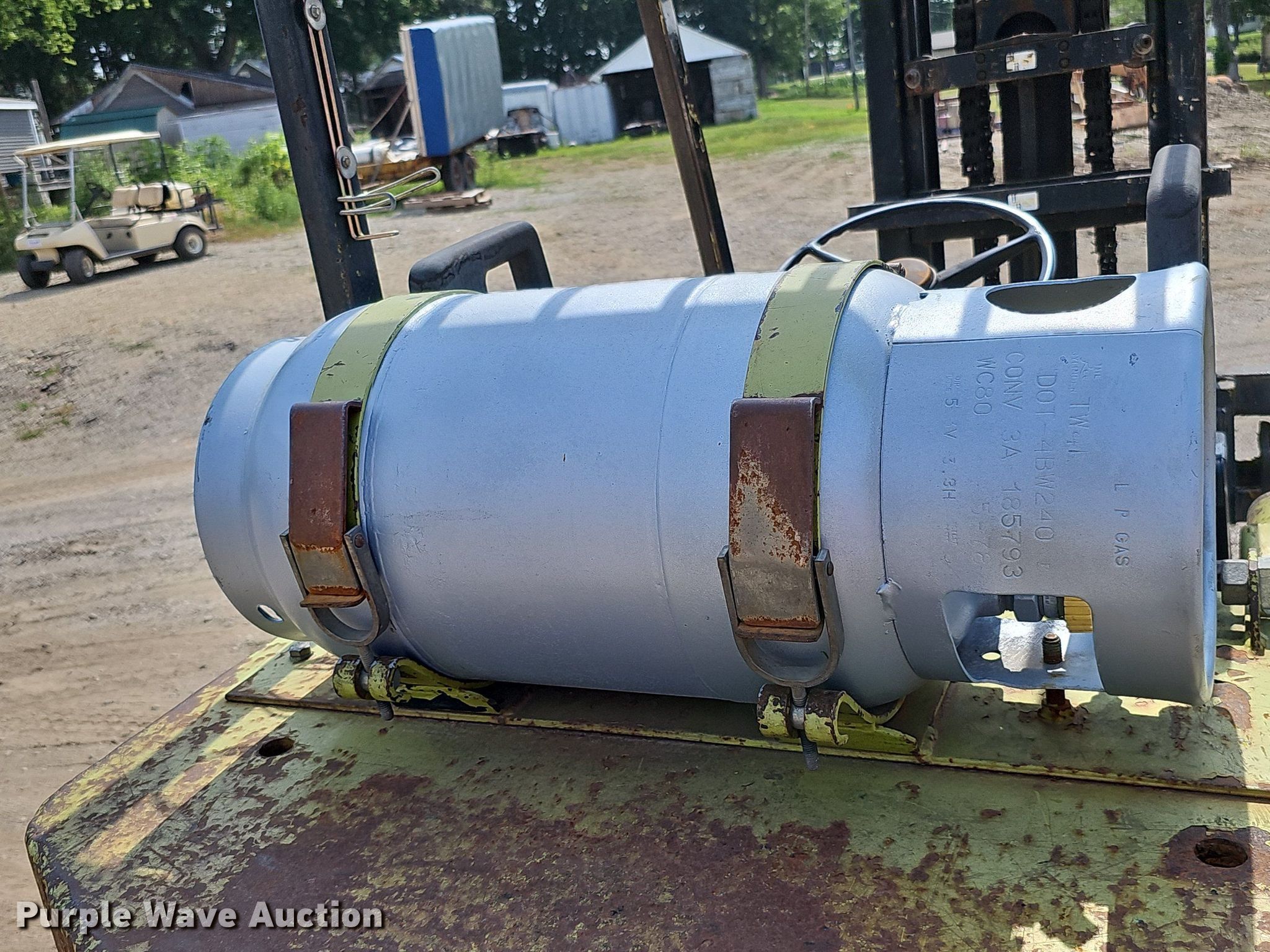 Clark C500-S100 forklift. Hours: 3,872 on meter, Serial: 6857444501079. Engine Cylinders: 6, Fuel type: LPG LP bottle: Included. Transmission Powershift. Operators station Canopy. Features Maximum lift capacity: 10,000 lbs, Maximum lift height: 114", Mast stages: 2, Mast tilt, Fork length: 47". Tires Front: 21x6x15, Rear: 17x6x12.125, Solid. 107 East Virginia Street. Highland, KS 66035