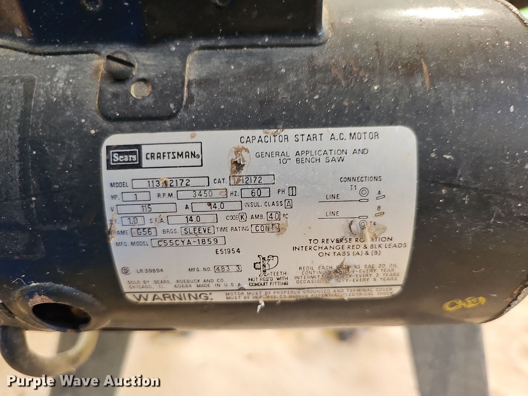 Purple Wave is selling a used Tools in Nebraska. This item is a Craftsman 113.298033 table saw with the following: Serial: 3272.P2027