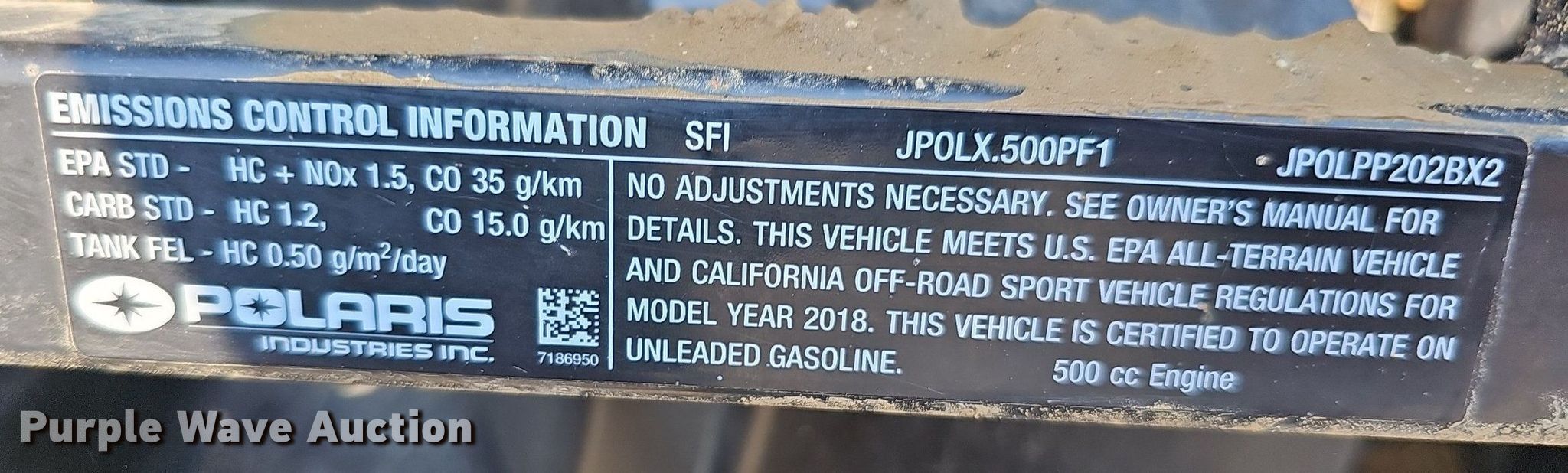 2018 Polaris Ranger 500 utility vehicle | SOLD! July 19 Vehicles and Equipment Auction