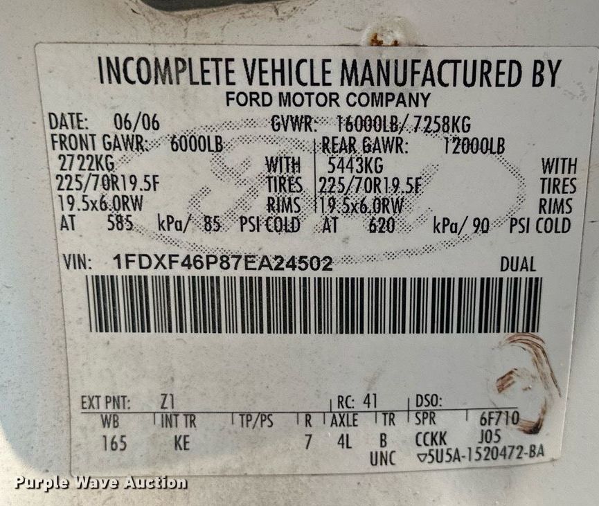 Purple Wave is selling a used Flat Bed Truck in Kansas. This item is a 2007 Ford F450 Super Duty flatbed truck with the following: Miles: 82,553 on odometer, VIN: 1FDXF46P87EA24502