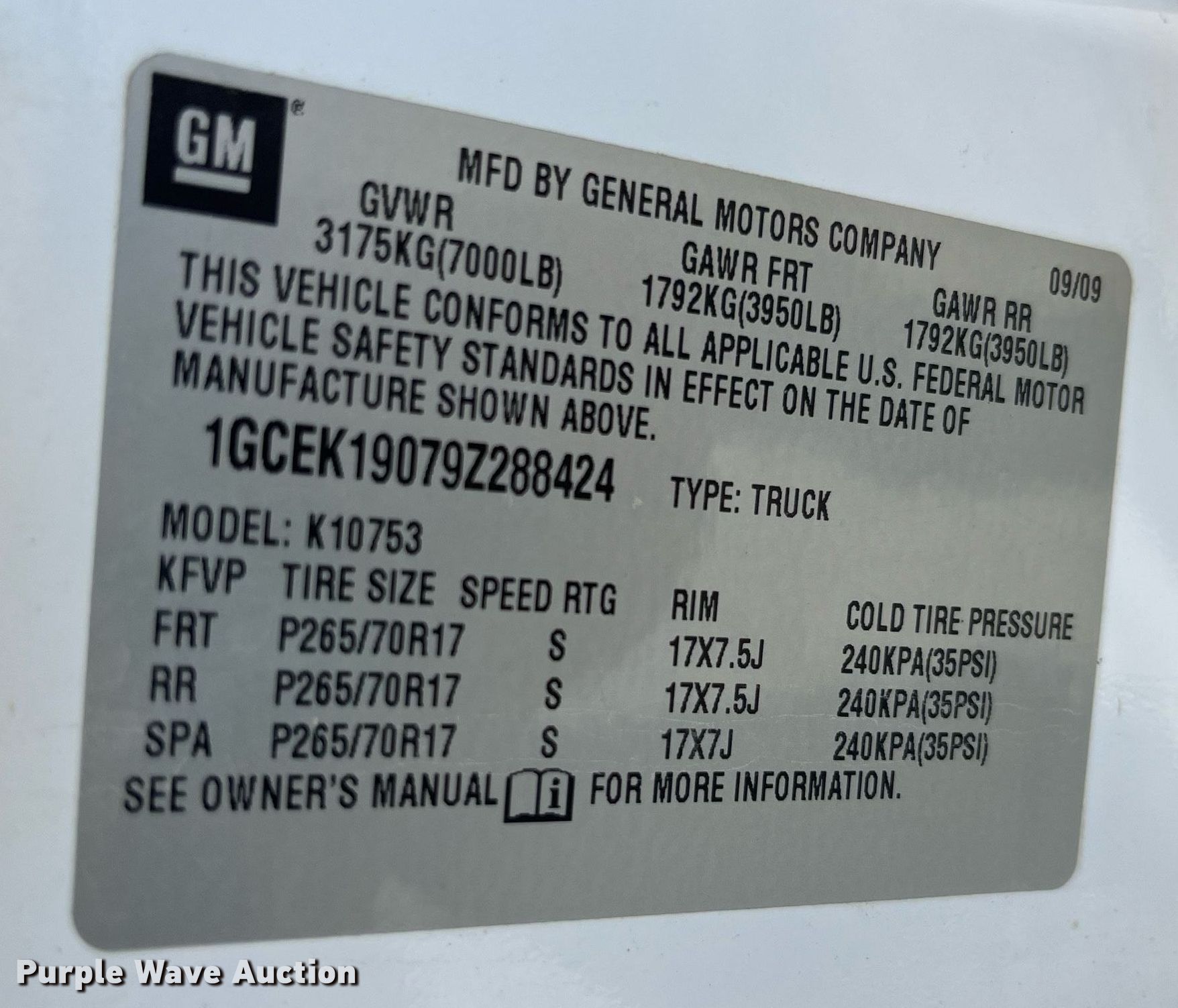 - VIN: 1GCEK19079Z288424
