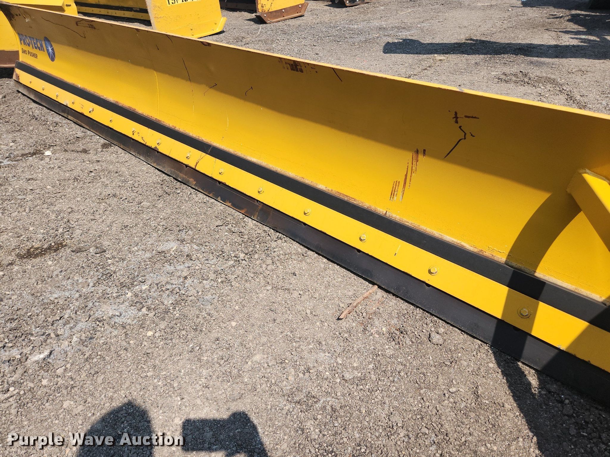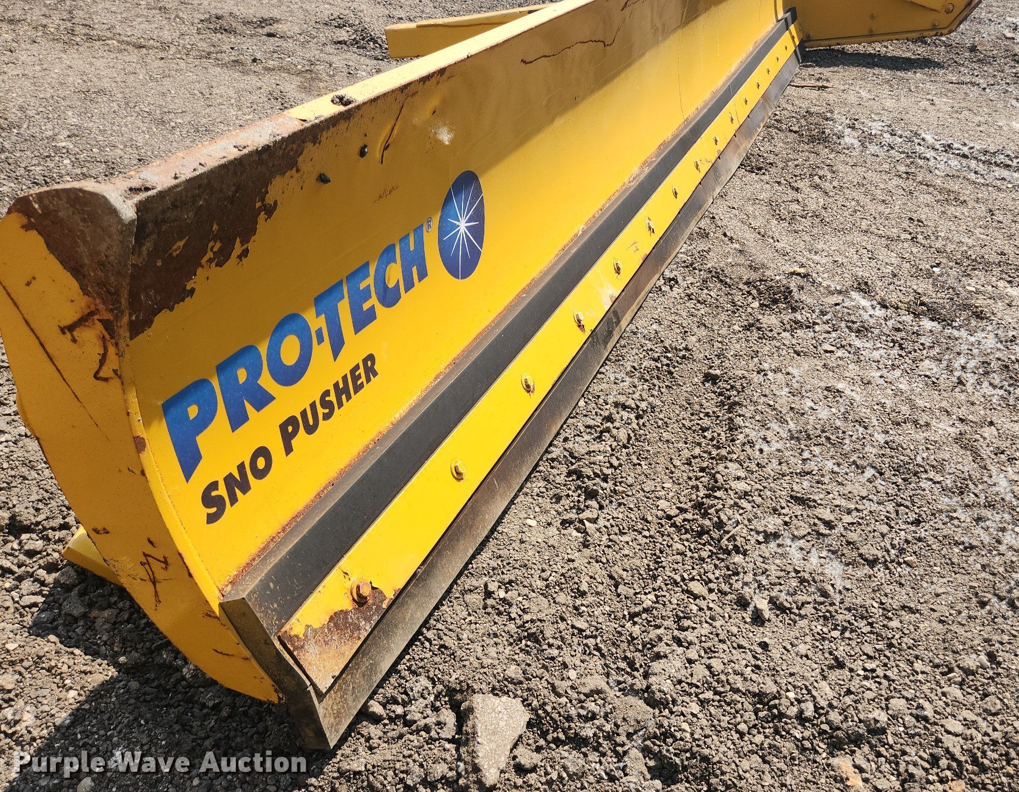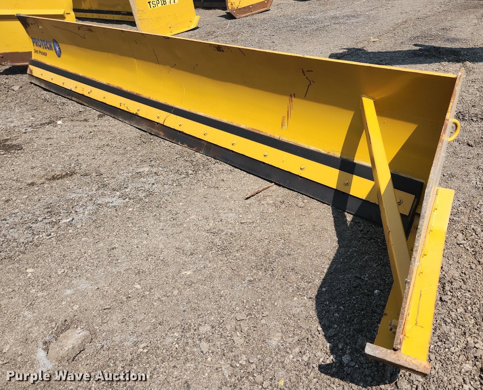 Pro-Tech 18' W snow pusher. Unit #: TSP-93. Pursuant to Illinois law, Purple Wave will not be collecting sales taxes on any of the purchases made in this business liquidation auction. Snow Management Equipment Auction - Open inspection July 12 and 18. 31W377 Spaulding Road. Elgin, IL 60120