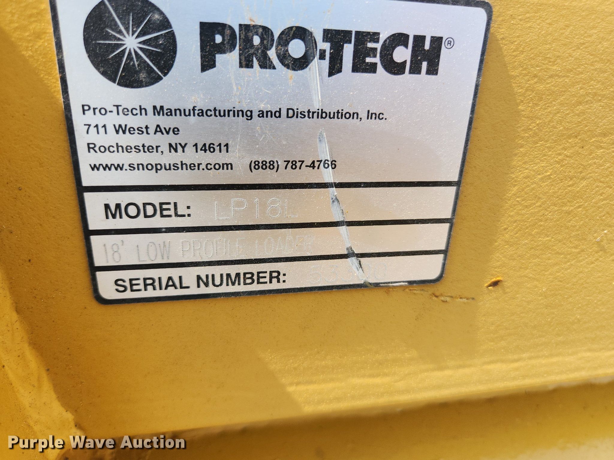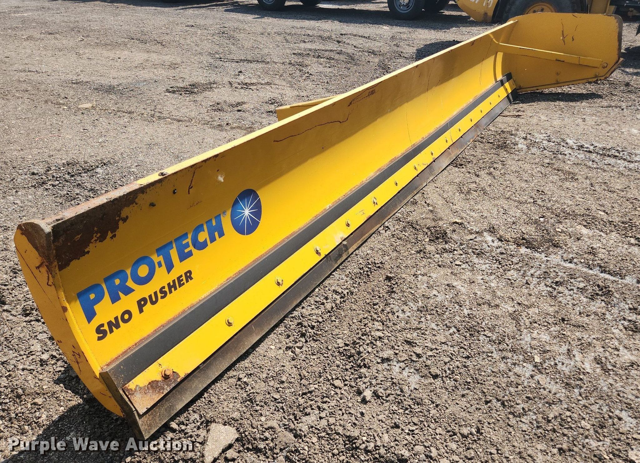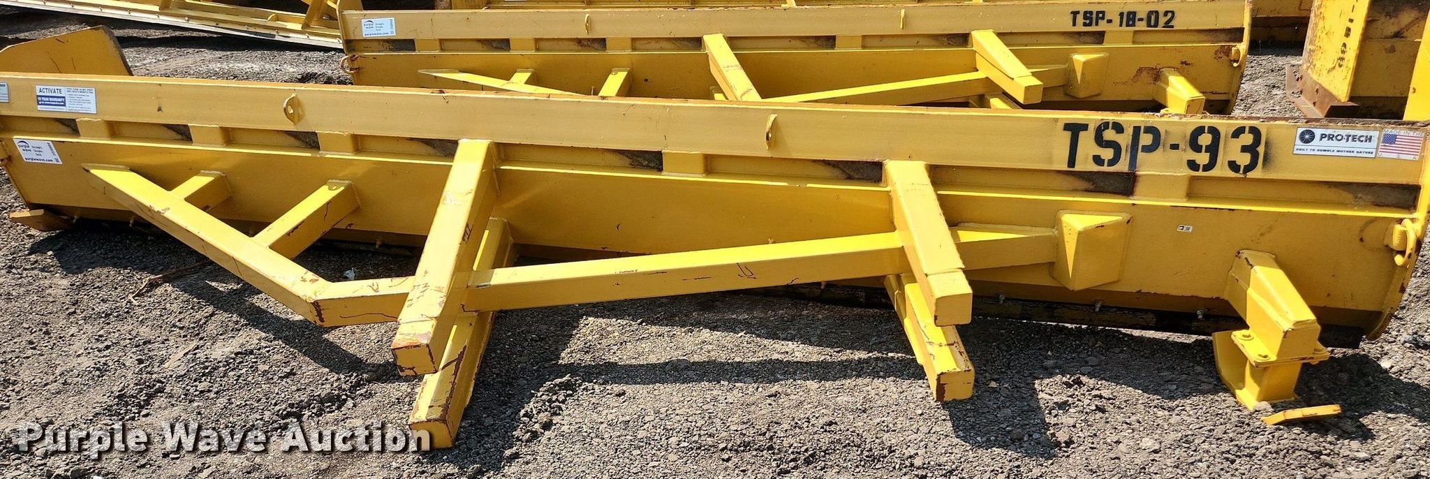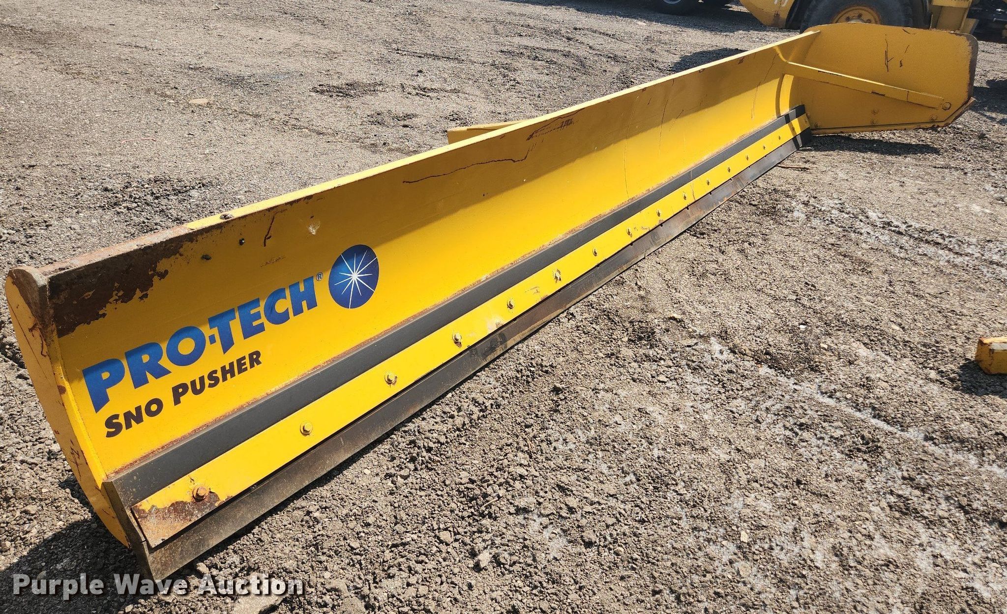 Pro-Tech 18' W snow pusher. Unit #: TSP-93. Pursuant to Illinois law, Purple Wave will not be collecting sales taxes on any of the purchases made in this business liquidation auction. Snow Management Equipment Auction - Open inspection July 12 and 18. 31W377 Spaulding Road. Elgin, IL 60120