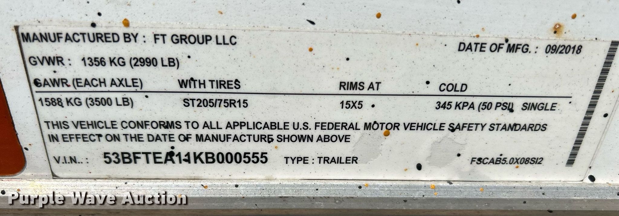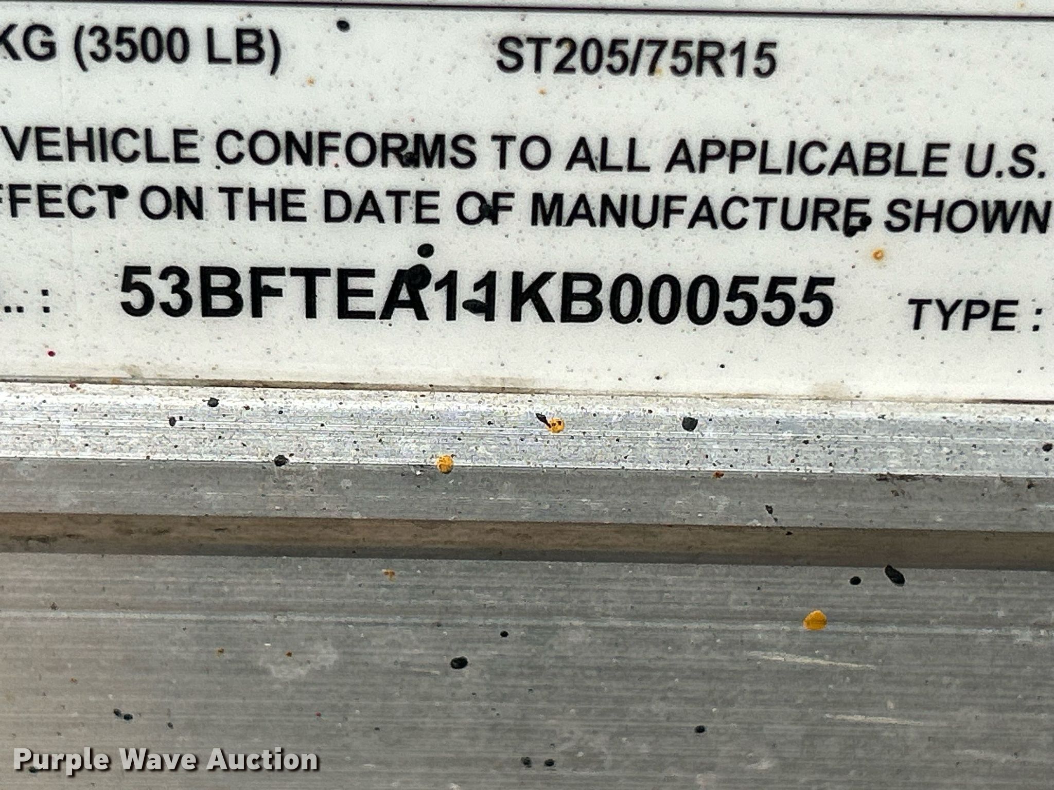 Purple Wave is selling a used Enclosed Cargo Trailer in Illinois. This item is a 2019 Formula Trailers enclosed cargo trailer with the following: VIN: 53BFTEA11KB000555, Unit #: ET-004