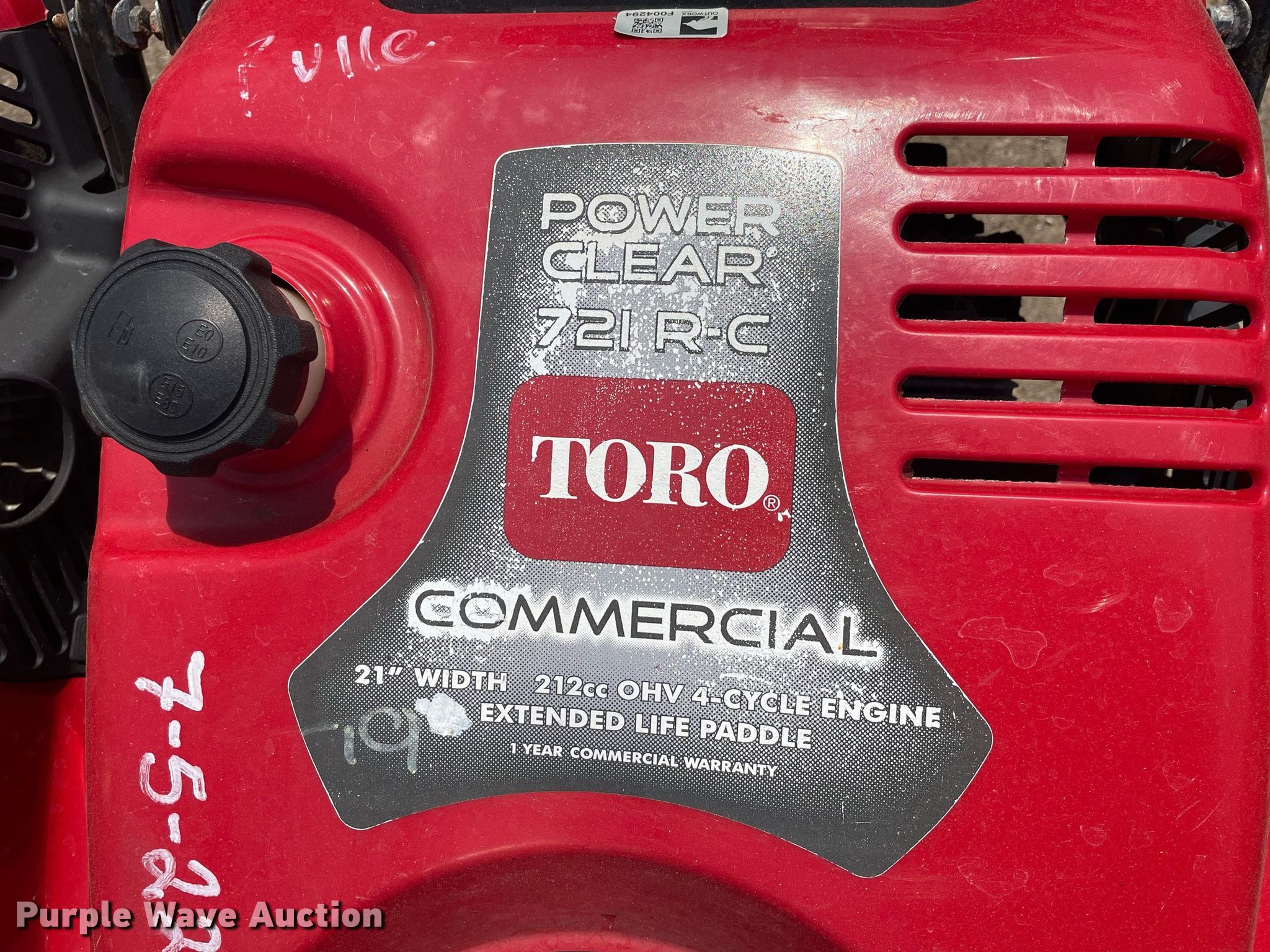 (4) Toro Power Clear snow blowers. Single cylinder gas engine, 21"W, Single stage, Recoil start. Pursuant to Illinois law, Purple Wave will not be collecting sales taxes on any of the purchases made in this business liquidation auction. Snow Management Equipment Auction - Open inspection July 12 and 18. 31W377 Spaulding Road. Elgin, IL 60120