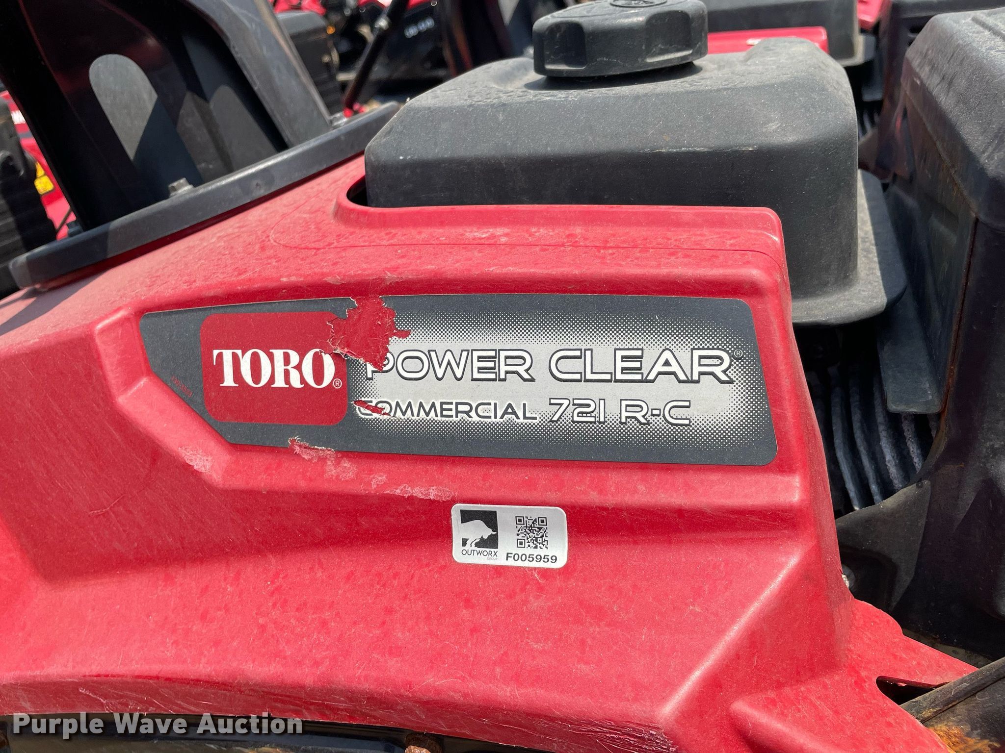 (4) Toro Power Clear snow blowers. Single cylinder gas engine, 21"W, Single stage, Recoil start. Pursuant to Illinois law, Purple Wave will not be collecting sales taxes on any of the purchases made in this business liquidation auction. Snow Management Equipment Auction - Open inspection July 12 and 18. 31W377 Spaulding Road. Elgin, IL 60120