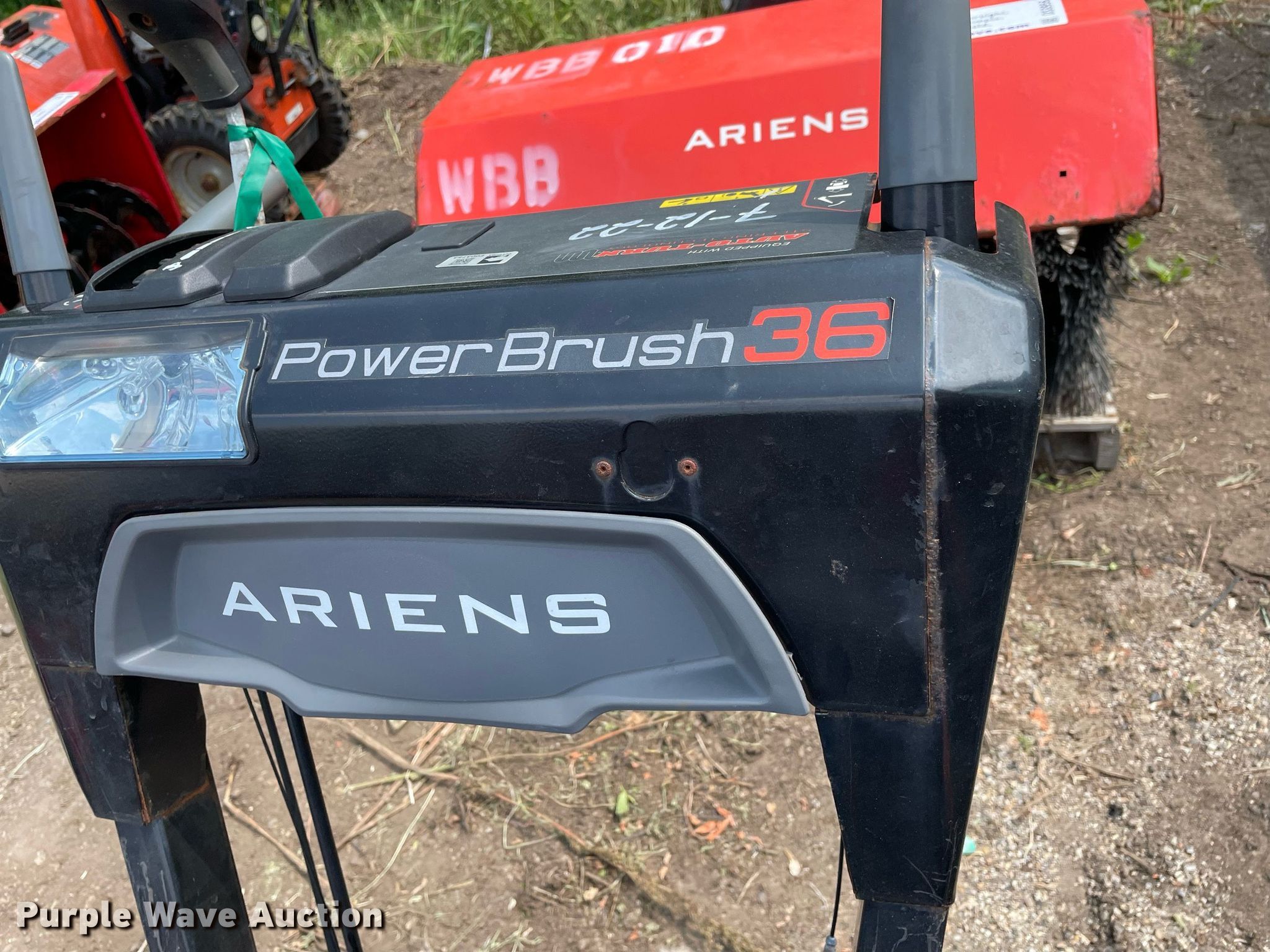 2017 Ariens Power Brush 36 broom. Serial: 002371, Width: 36". Engine Cylinders: 1, Fuel type: Gas, HP: 27. Pursuant to Illinois law, Purple Wave will not be collecting sales taxes on any of the purchases made in this business liquidation auction. Snow Management Equipment Auction - Open inspection July 12 and 18. 31W377 Spaulding Road. Elgin, IL 60120