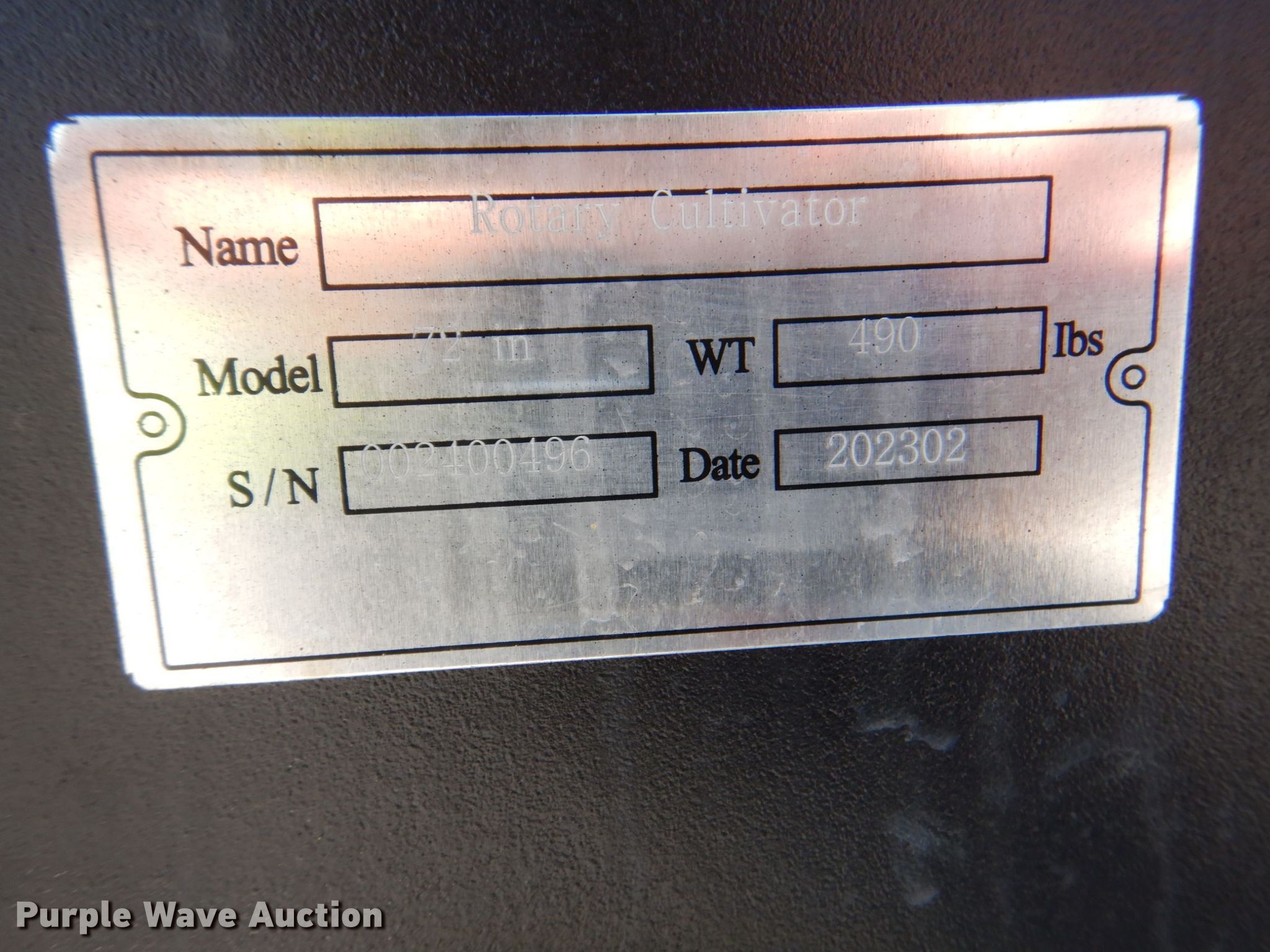 Purple Wave is selling a used Skid Steer Attach. in Nebraska. This item is a 2023 Skid steer tiller with the following: Serial: 002400496, Width: 72", Cutting edge: Weld-on