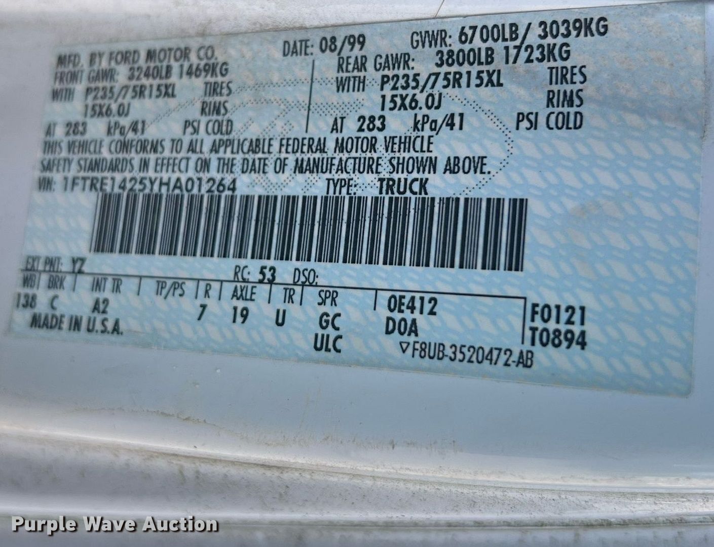 Purple Wave is selling a used 1/2 Ton Pickup or Van in Missouri. This item is a 2000 Ford E150 van with the following: Miles: 120,093 on odometer, VIN: 1FTRE1425YHA01264