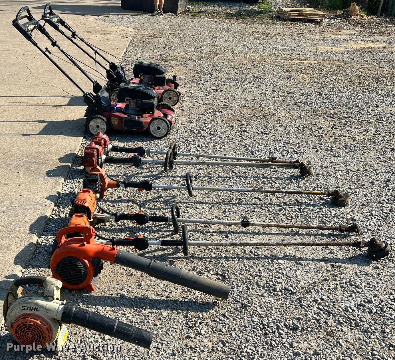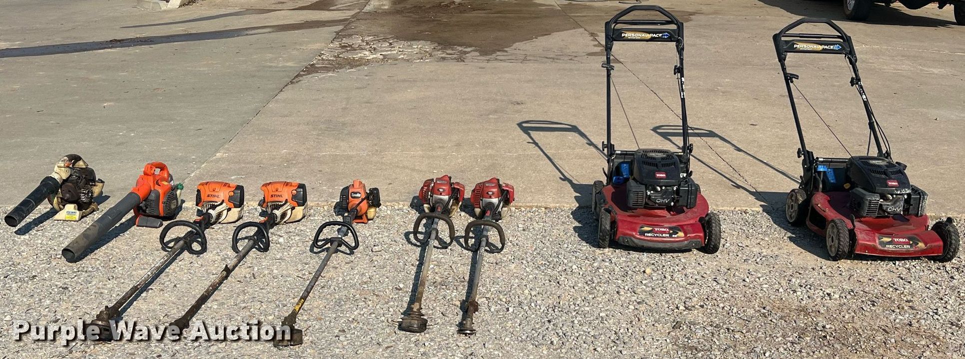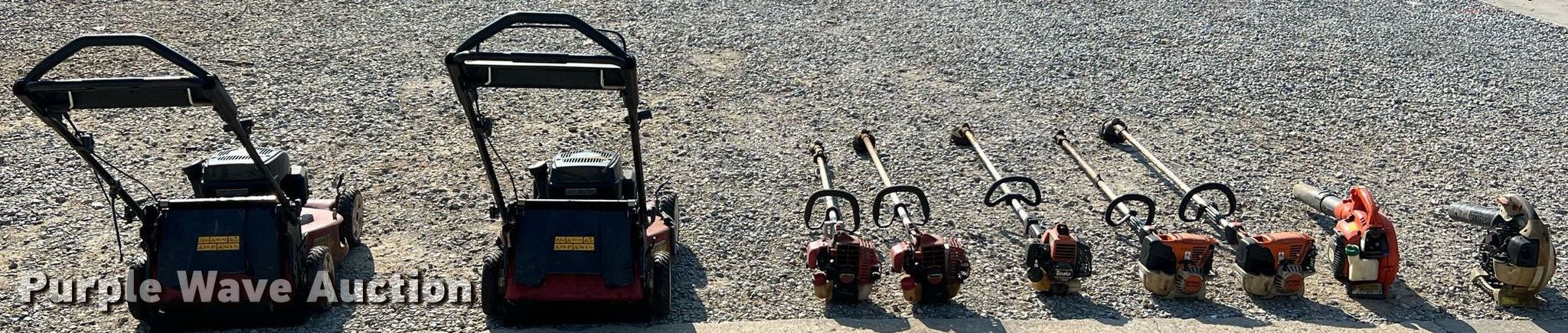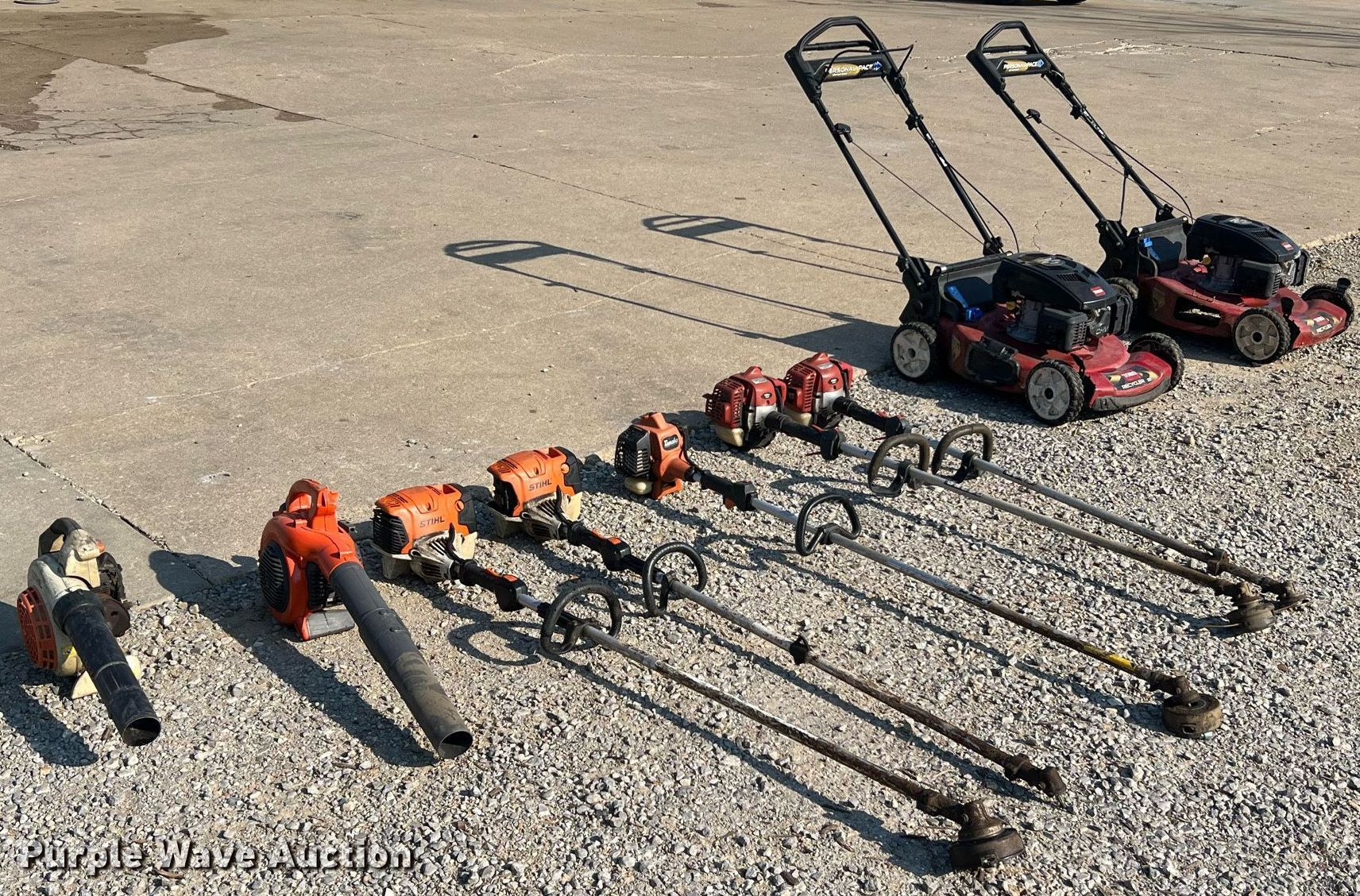 Purple Wave is selling a used Lawn and Garden in Missouri. This item is a Lawn equipment with the following: (2) push mowers, (5) string trimmers, (2) leaf blowers