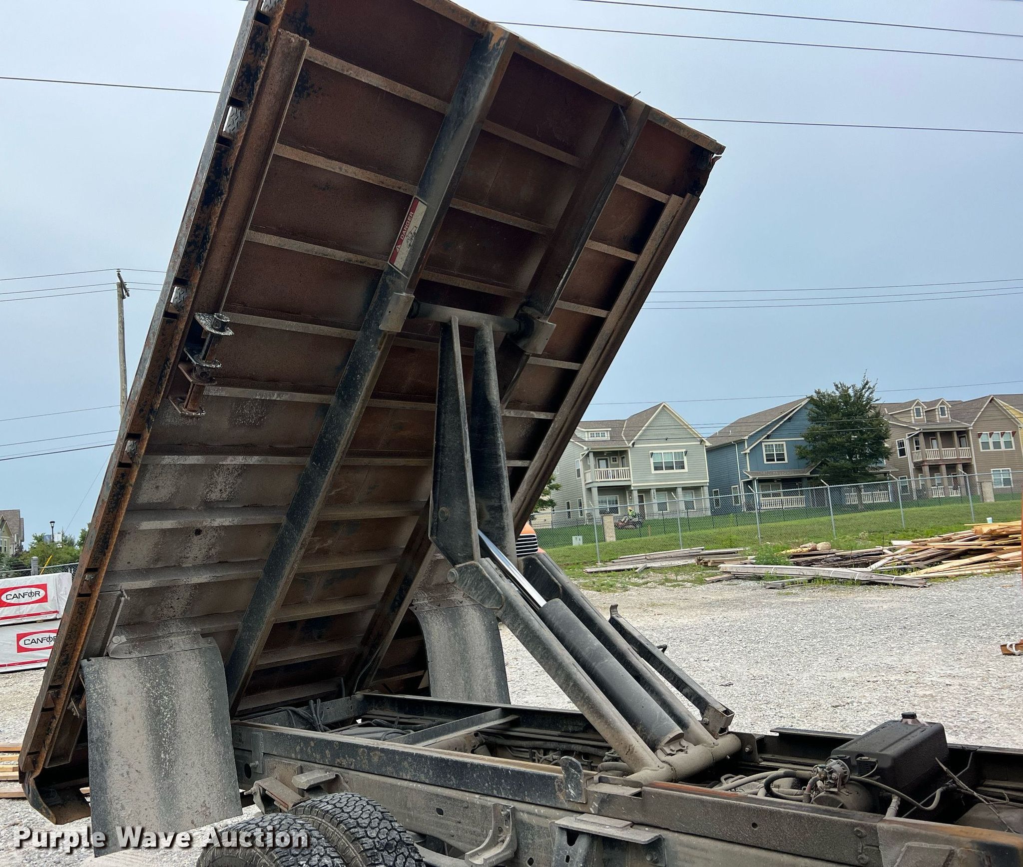 2011 GMC Sierra 3500HD dump flatbed pickup truck. Miles: 310,894 on odometer, VIN: 1GD312CG9BF240593. Engine Displacement: 6.0L V8 OHV, Cylinders: 8, Fuel type: Gas. Transmission Automatic. Interior AC, Heat, Cruise control. Features Dump flatbed American, 11' 11" L x 98" W, Ram: Single. Tires Size: LT225/80R17. Notes Dash warning indicator: Check engine. Missouri title. La Crosse Lumber Company. Columbia, MO 65201