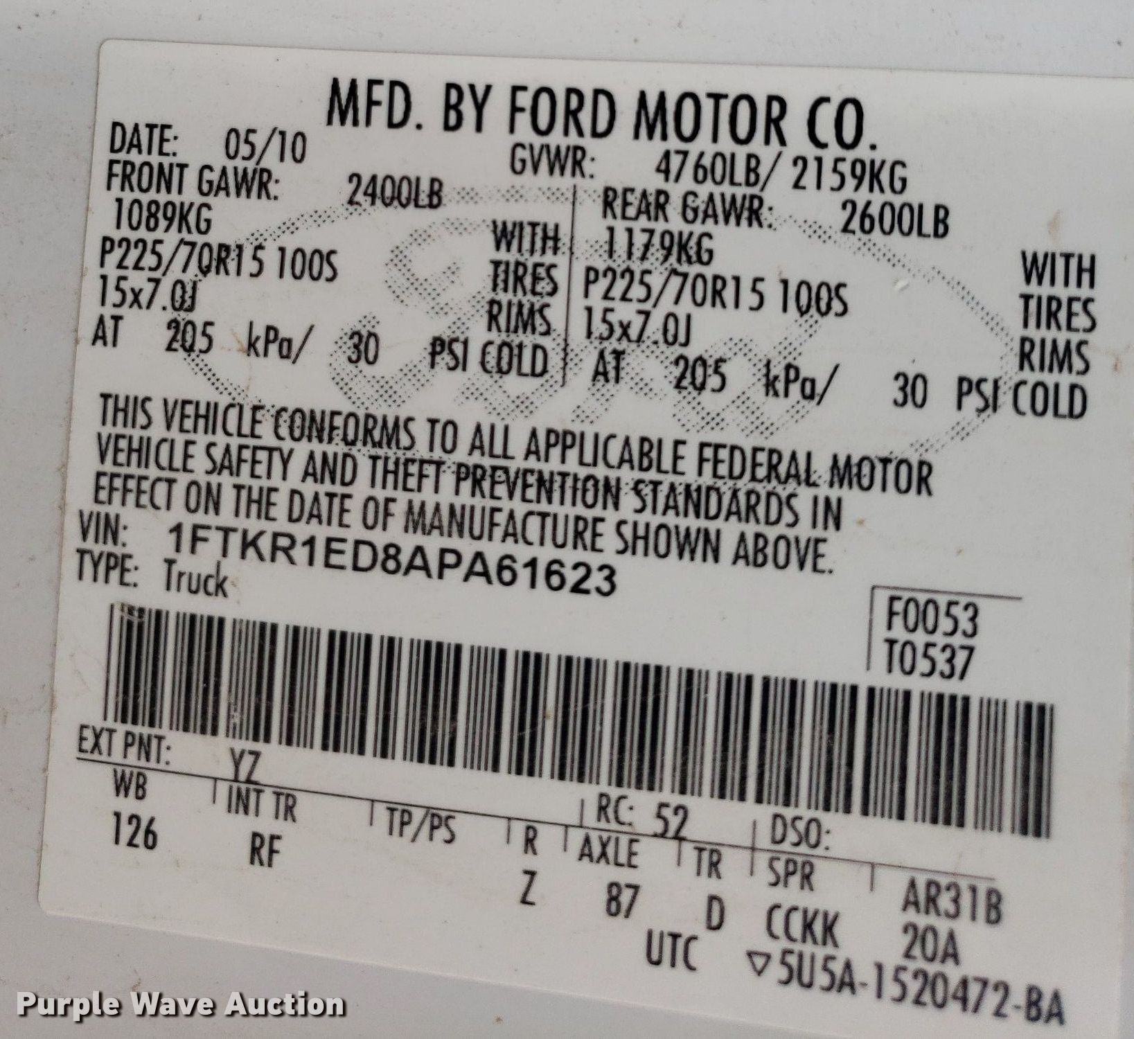 Purple Wave is selling a used Compact Pickup or Van in Kansas. This item is a 2010 Ford Ranger SuperCab pickup truck with the following: Miles: 91,997 on odometer, VIN: 1FTKR1ED8APA61623