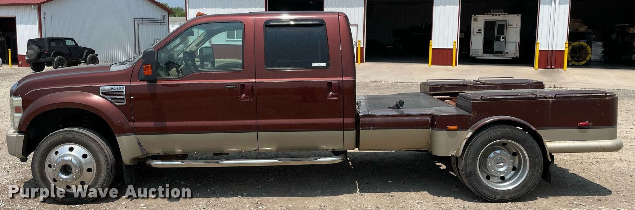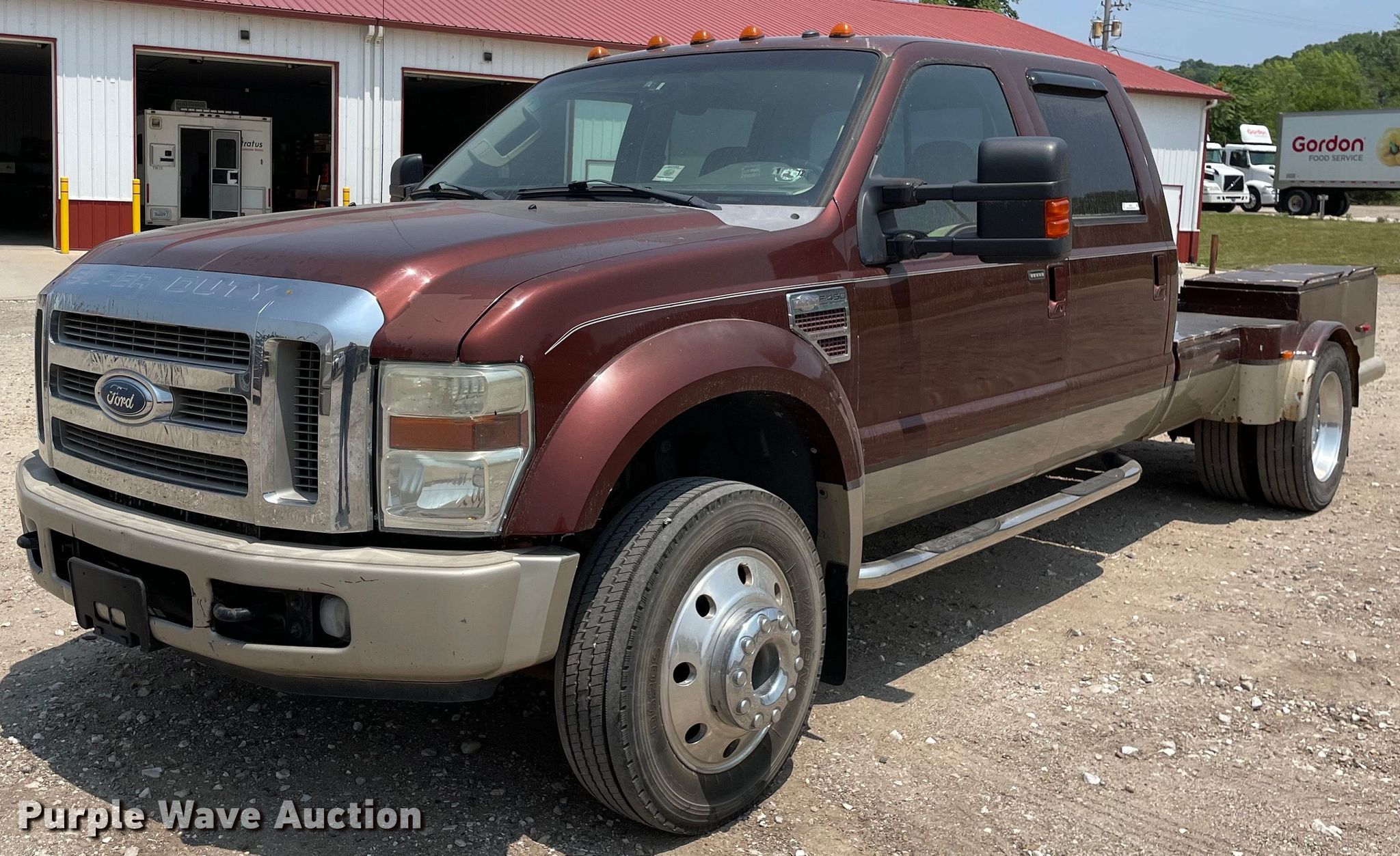 Take a look at this used 2008 Ford F450 Super Duty Lariat Crew Cab flatbed truck being sold on July 19th, 2023 in the SOLD! July 19 Vehicles and Equipment Auction made by Ford. Take a look at all of the item information below or take a look at similar auctions for Trucks.