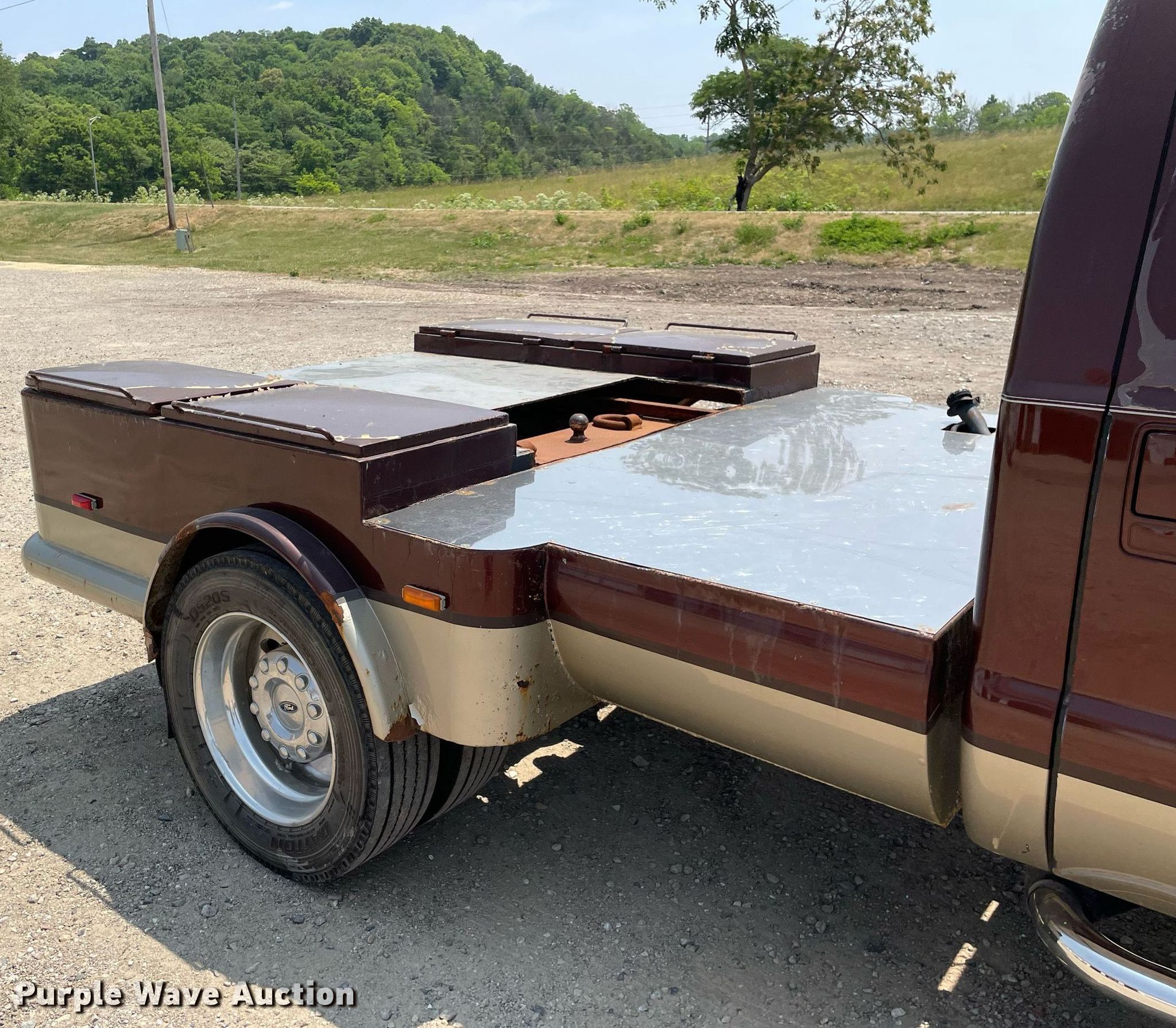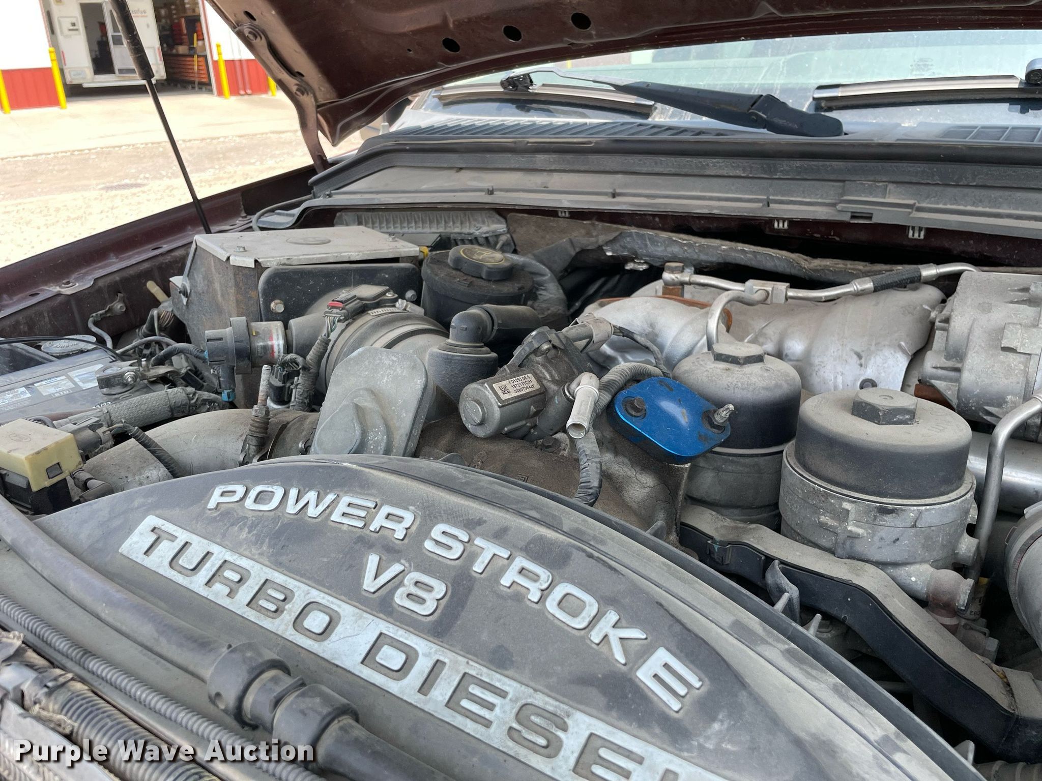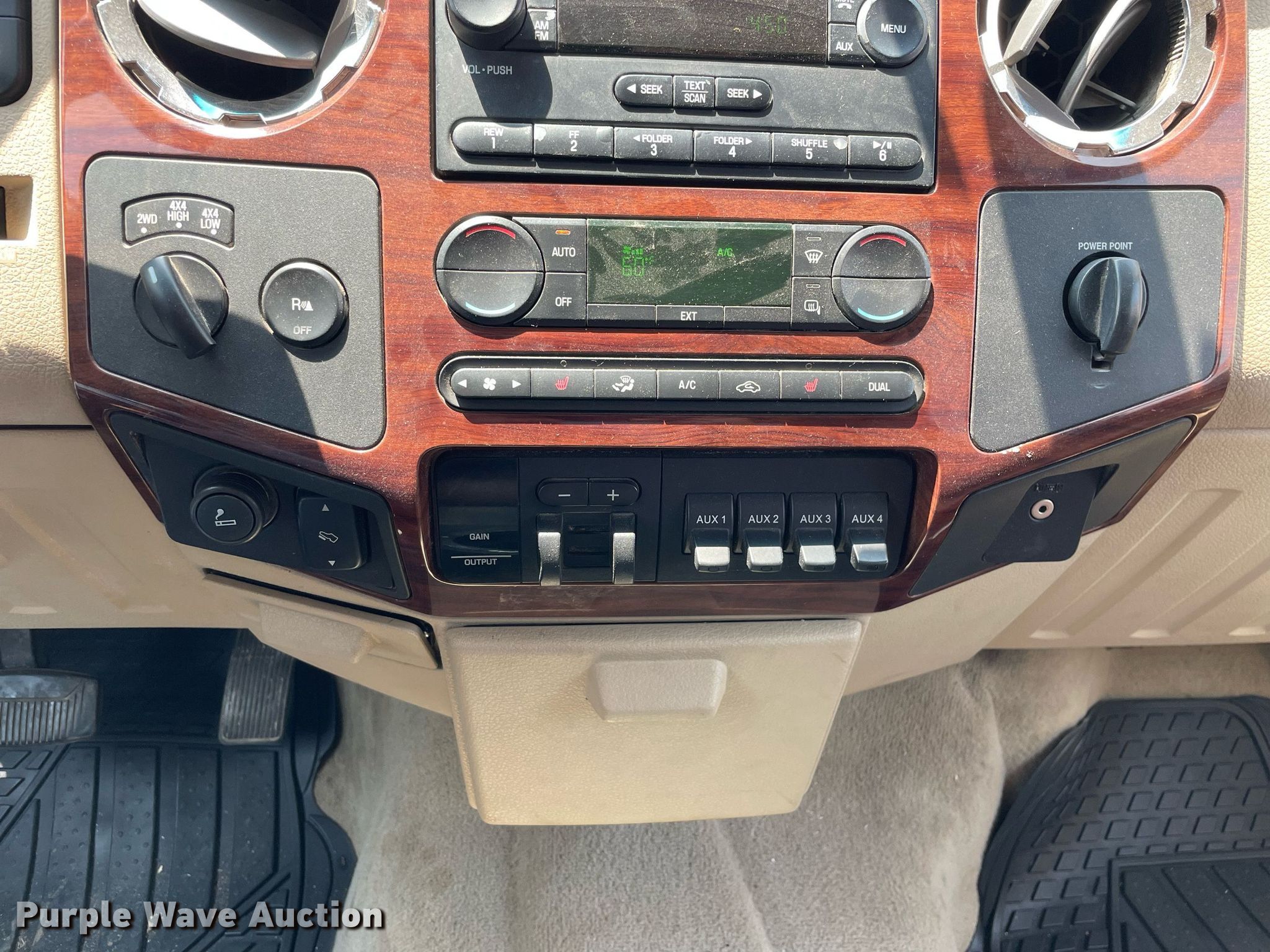 2008 Ford F450 Super Duty Lariat Crew Cab flatbed truck. Miles: 86,812 on odometer, VIN: 1FTXW43R98EA97194, Unit #: 38. Engine Displacement: 6.4L, Cylinders: 8, Fuel type: Diesel. Transmission Automatic. Chassis Four wheel drive, Axles: Single, Suspension: Spring, Brakes: Hydraulic. Interior AC, Heat, Power windows, Power locks, Cruise control, Auxiliary controls, Brake controller. Features Bed 8' 10" L, Hitch: Gooseneck. Tires Size: 225/70R19.5. Notes Dash warning indicator: Check engine. Illinois rebuilt title. Title distribution may be delayed up to 14 days from verification of funds. 4319 North Main Street Access Road 8. East Peoria, IL 61611