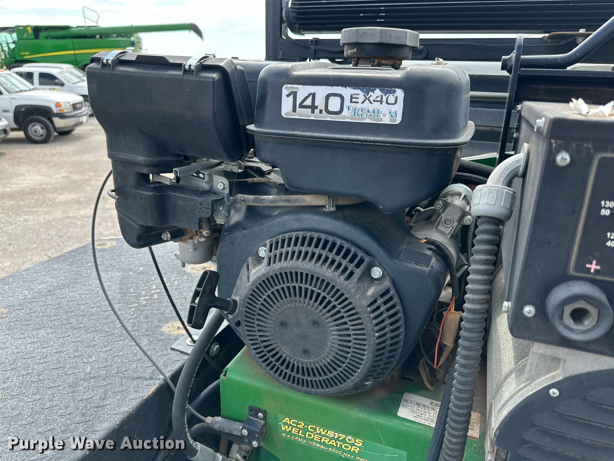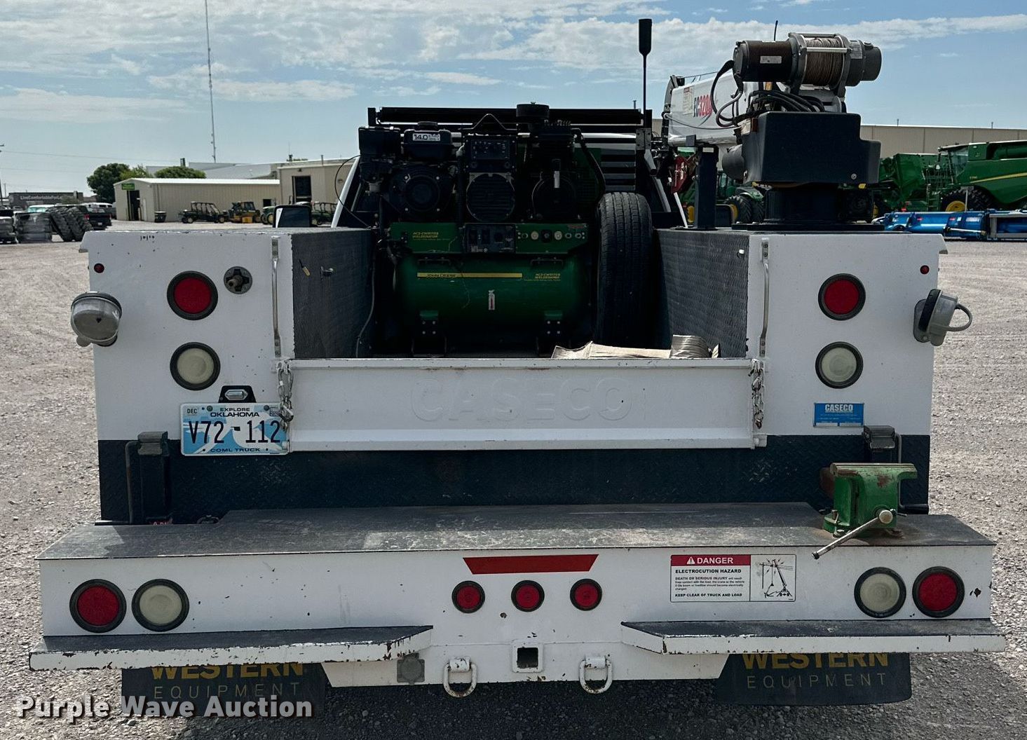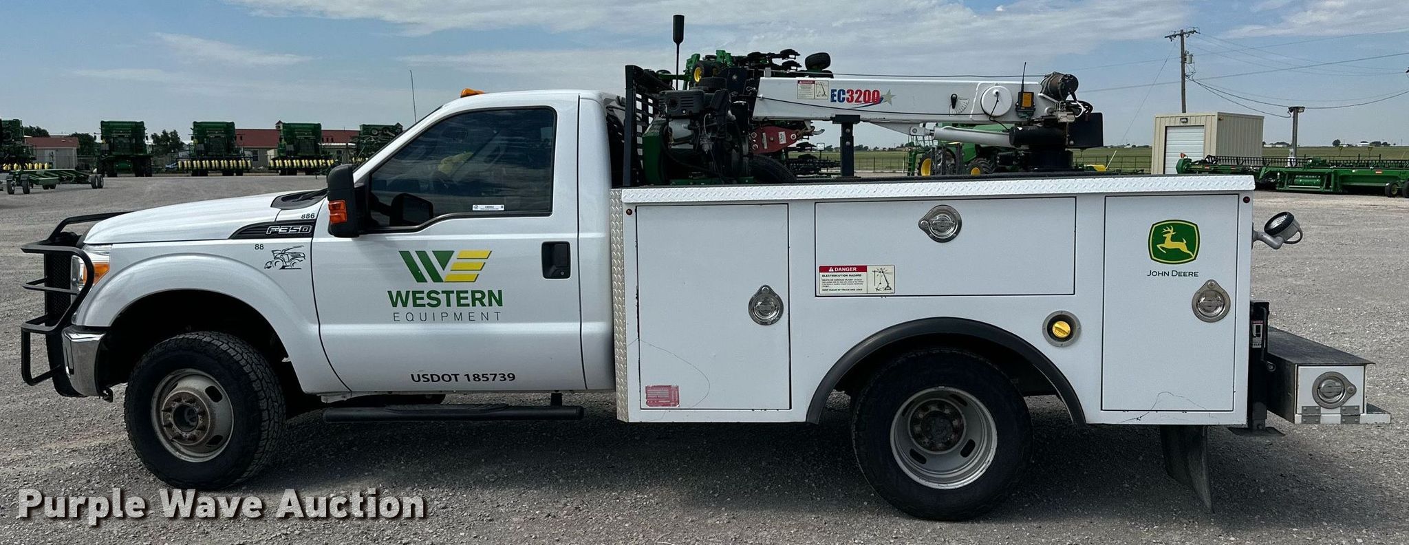 2014 Ford F350 Super Duty utility bed pickup truck. Miles: 156,045 on odometer, VIN: 1FDRF3H61EEA47527. Engine Displacement: 6.2L V8 OHV, Cylinders: 8, Fuel type: Gas. Transmission Automatic, Four wheel drive. Interior AC, Heat, Heated mirrors, Power windows, Power locks, Cruise control. Features Utility bed Caseco MM14212A, 9' L x 96" W, Welder/generator John Deere AC2-CW517OS, Fuel type: Gas, 240V outlets: 1, 120V outlets: 4, Watts: 5,000, Welder type: Stick (AC/DC), Air compressor John Deere AC2-CW517OS, Subaru EX40, Crane Stellar EC3200. Tires Size: 245/75R17. Notes Bed contents included. Oklahoma title. Western Lease LLC. 10800 Interstate 27. Amarillo, TX 79119