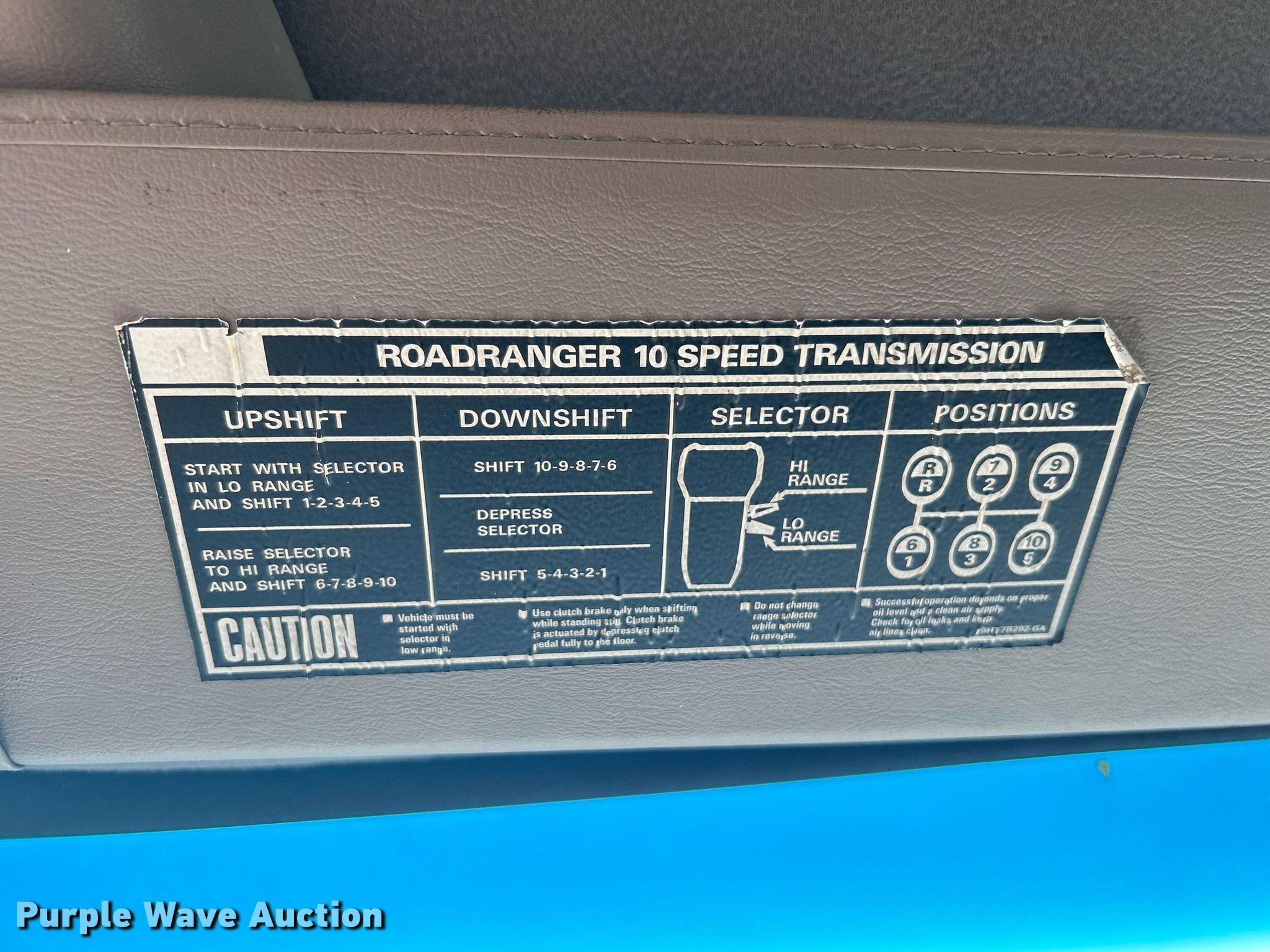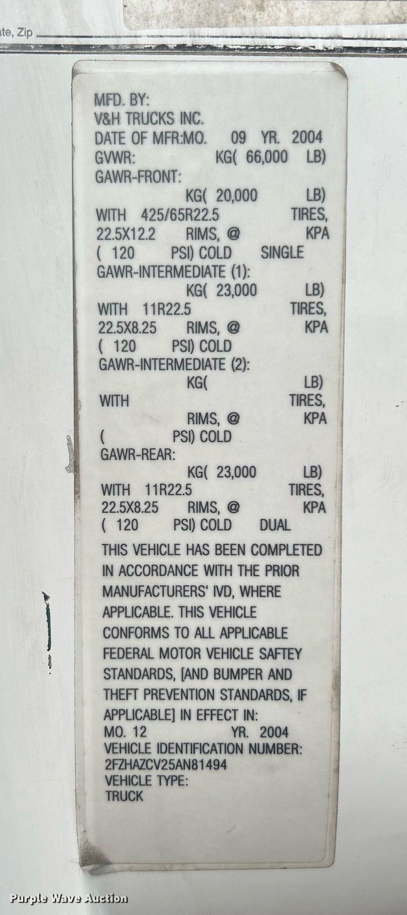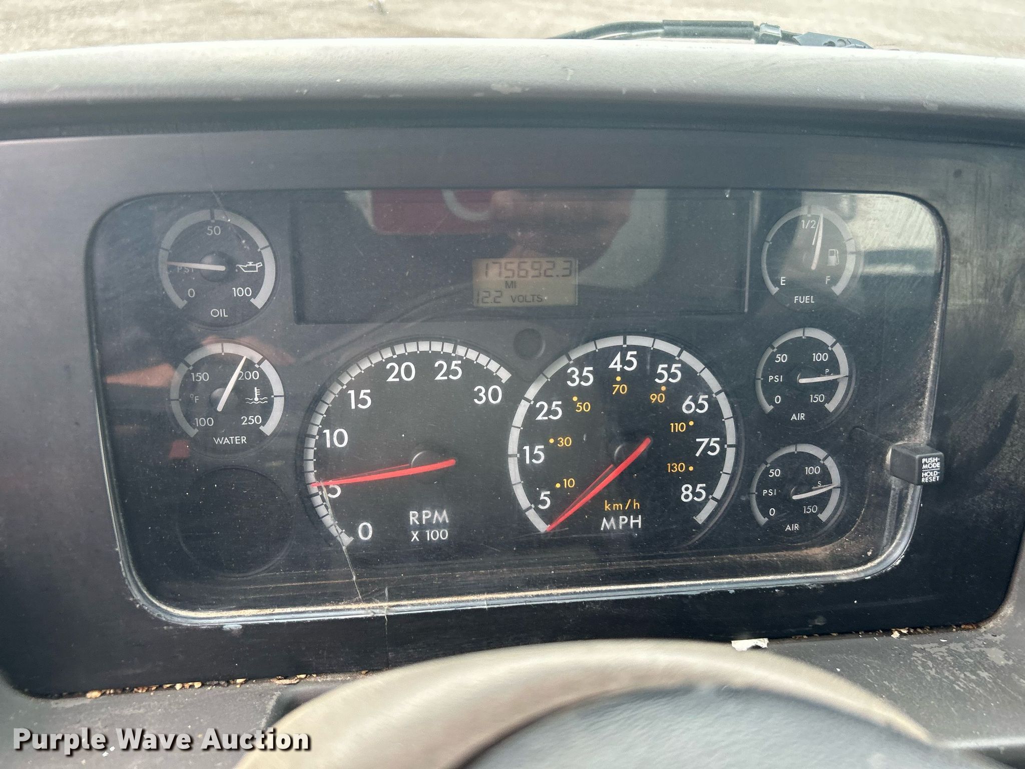 2005 Sterling LT crane truck. Miles: 175,692 on odometer, VIN: 2FZHAZCV25AN81494. Engine Mercedes Benz OM460LA, Serial: 4MBX12, Displacement: 12.8L, Cylinders: 6, Fuel type: Diesel, HP: 450, Engine brake. Transmission Eaton Fuller Roadranger, Manual, Speed: 10. Chassis Axles: Tandem, Suspension: Spring, Brakes: Air, GVWR: 66,000 lbs FAWR: 20,000 lbs, IAWR: 23,000 lbs, RAWR: 23,000 lbs. Interior AC, Heat, Cruise control. Features Flatbed 24' 9" L x 96" W, Crane IMT 16000 Series III, Boom Telescopic, Maximum boom length: 54' Sections: 3, Maximum lift capacity: 5,825 lbs, Boom controls Ground, Lift chart. Tires Front: 425/65R22.5, Rear: 295/75R22.5. Notes Windshield chipped or cracked. Oklahoma title. Title distribution may be delayed up to 14 days from verification of funds. 15107 North 137th East Avenue. Collinsville, OK 74021