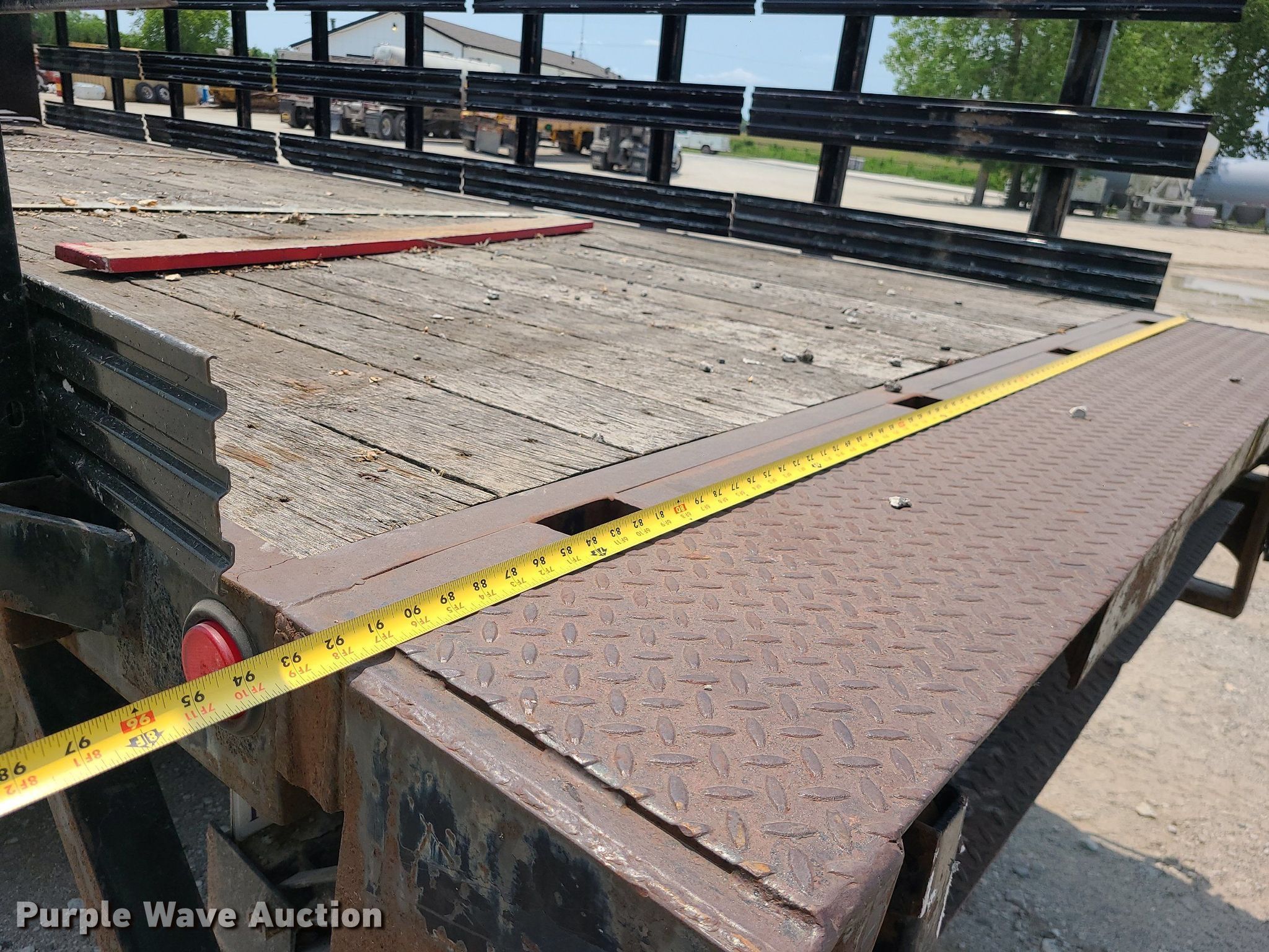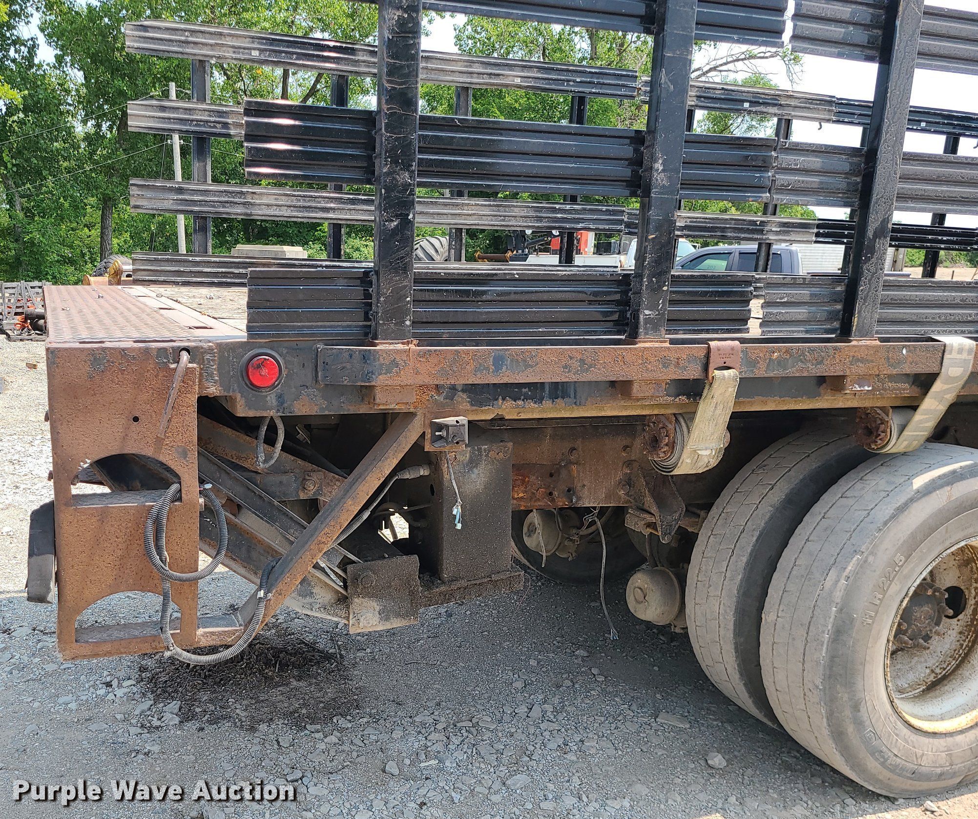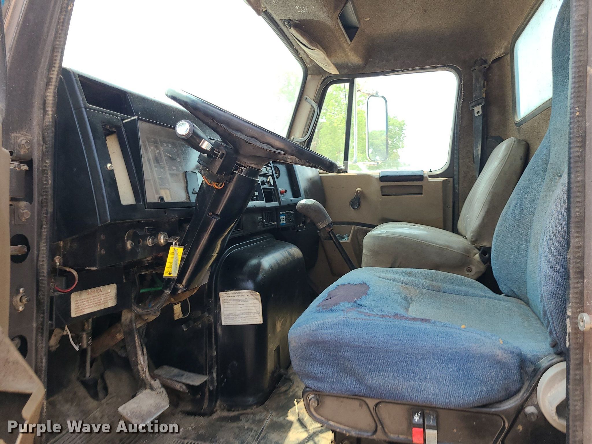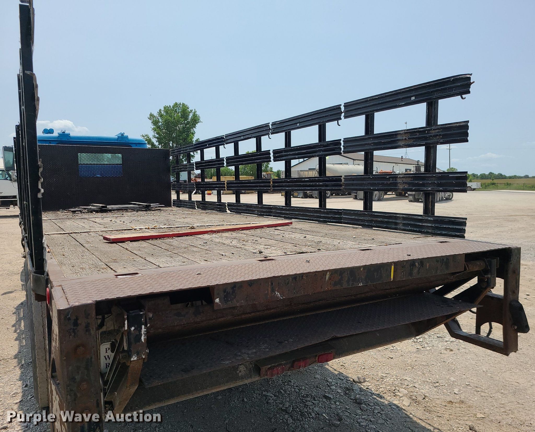 1993 International 8200 flatbed truck. Miles: 720,000 on odometer, VIN: 1HSHGGMB7PH581177. Engine Cummins N14, Displacement: 14.0L, Cylinders: 6, Fuel type: Diesel. Transmission Rockwell, Manual, Speed: 10. Chassis Axles: Tandem, Suspension: Spring, Brakes: Air. Interior Heat. Features Flatbed 21' L x 96" W, Removable sides, End gate lift Maxon, Capacity: 2,500 lbs. Tires Front: 315/80R22.5, Rear: 11R22.5. Notes Dash warning indicator: Check engine. Missouri title. Title distribution may be delayed up to 14 days from verification of funds. Midwest Heavy Construction. 17001 S State Route 291. Pleasant Hill, MO 64080