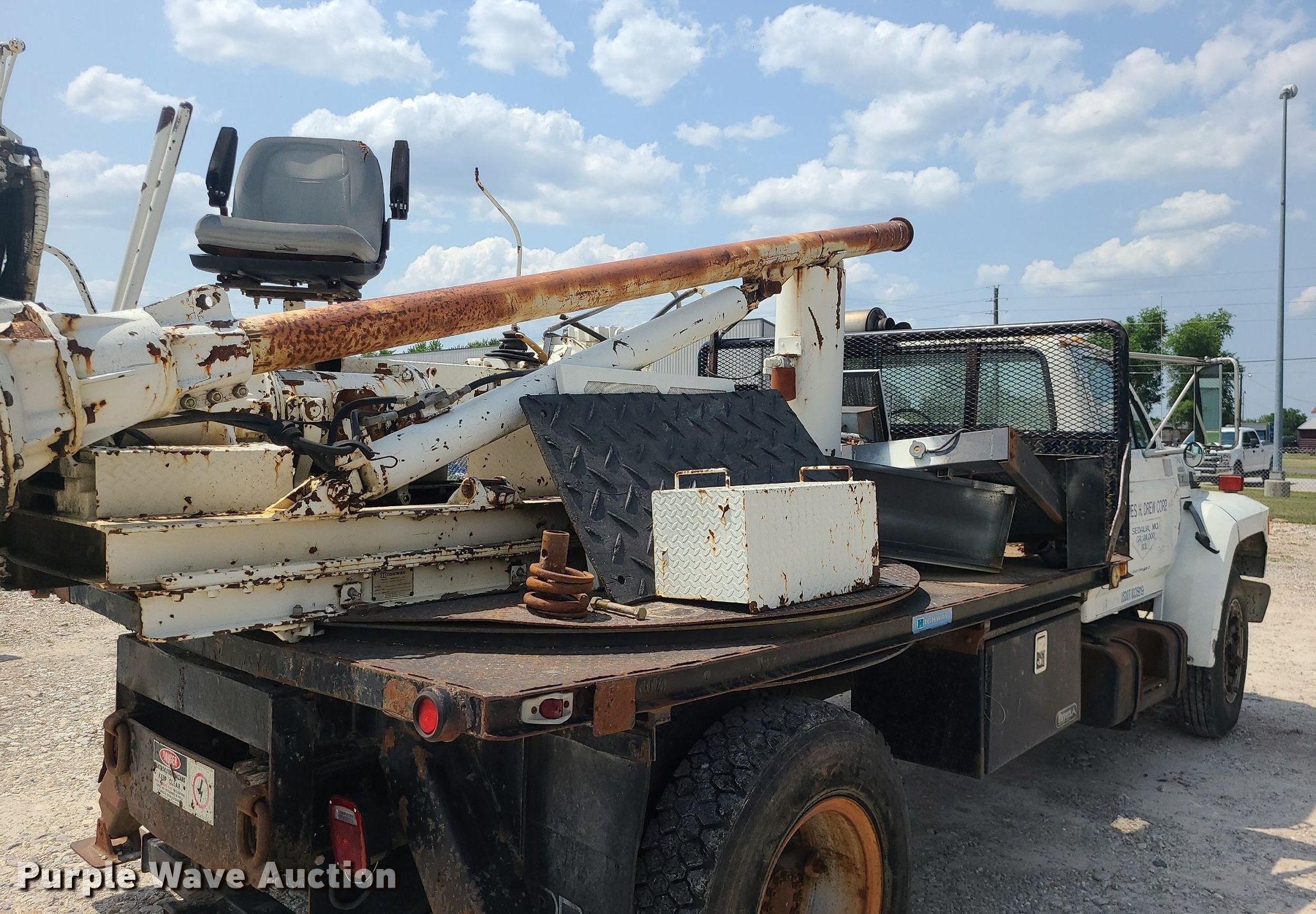 1992 Ford F700 pressure digger truck. Miles: 182,845 on odometer, VIN: 1FDNK74P3NVA11354. Engine Displacement: 6.6L, Cylinders: 6, Fuel type: Diesel. Transmission Manual, Speed: 5, plus 2. Chassis Axles: Single, Suspension: Spring, Brakes: Hydraulic. Interior Heat. Features Bed Highway, 11' L x 96" W. Tires Size: 9R20. Notes Dead battery, Brakes issues, weak , Non-operational pressure digger, engine missing. Missouri title. James H. Drew Corp.. 1578 E Boonville St. Sedalia, MO 65301
