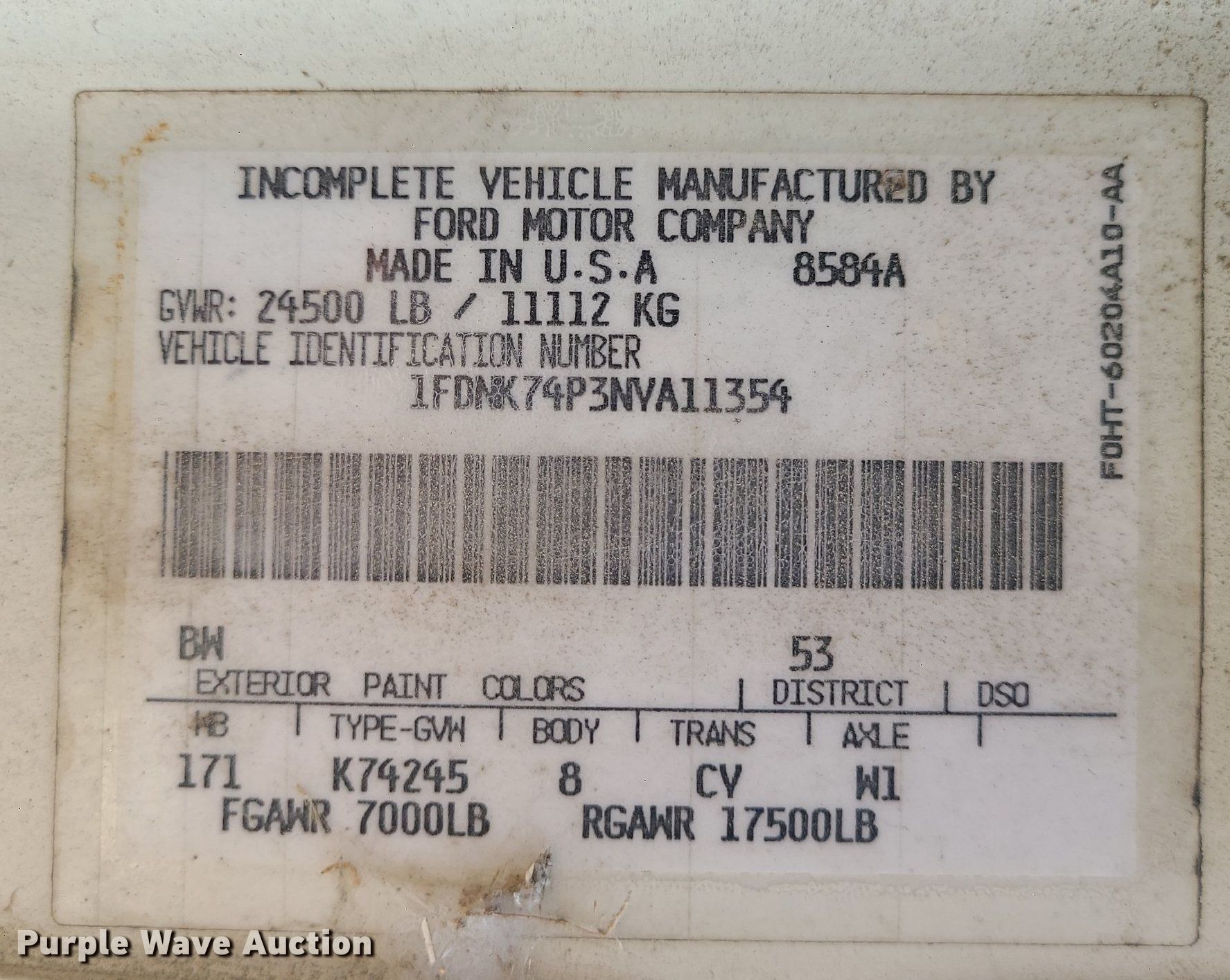 - VIN: 1FDNK74P3NVA11354