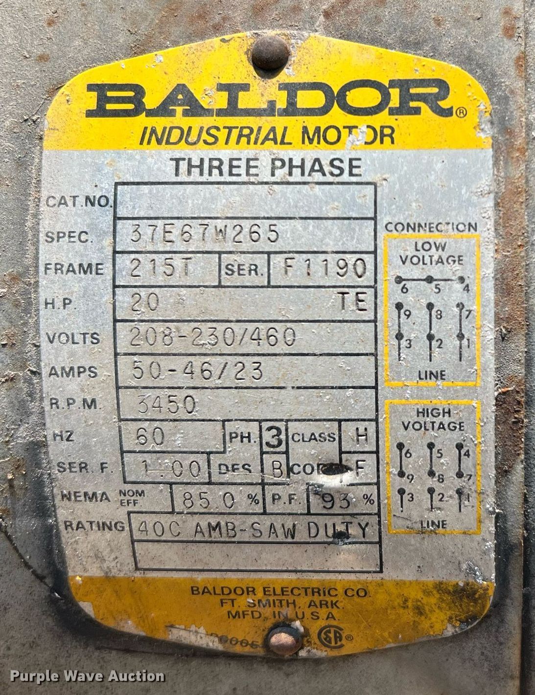 Purple Wave is selling a used Machine Shop Tools and Equip. in Texas. This item is a Everett Industries 20DM22 cut off saw with the following: Serial: 0-8396, Baldor, Serial: 0-8396, Volts: 208-230/460, Phase: Three, Blade capacity: 24"