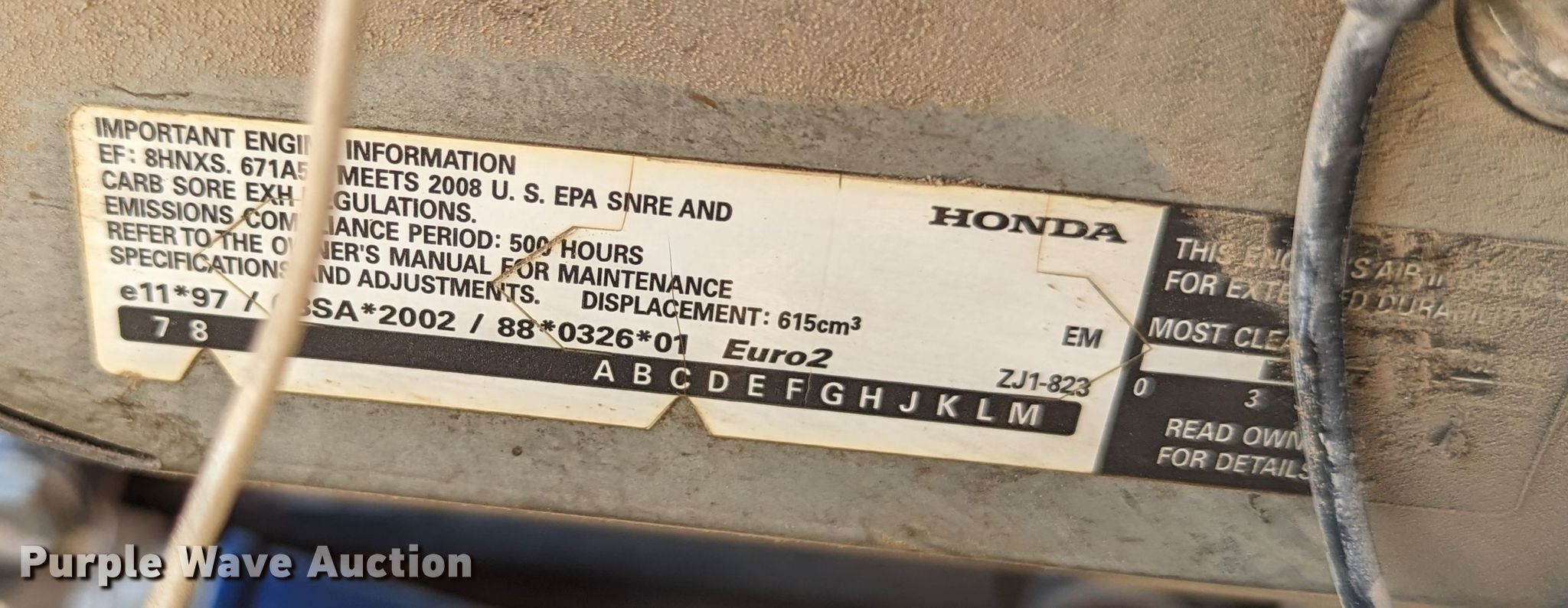 2008 Husqvarna FS520 concrete saw. Hours: 3 on meter, Serial: 1436. Engine Honda GX620, Displacement: 615cc, Cylinders: 2, Fuel type: Gas. Features Blade diameter: 18", Self-propelled. Top Quality Doors. 2320 Beverly Hills Street. Norman, OK 73072