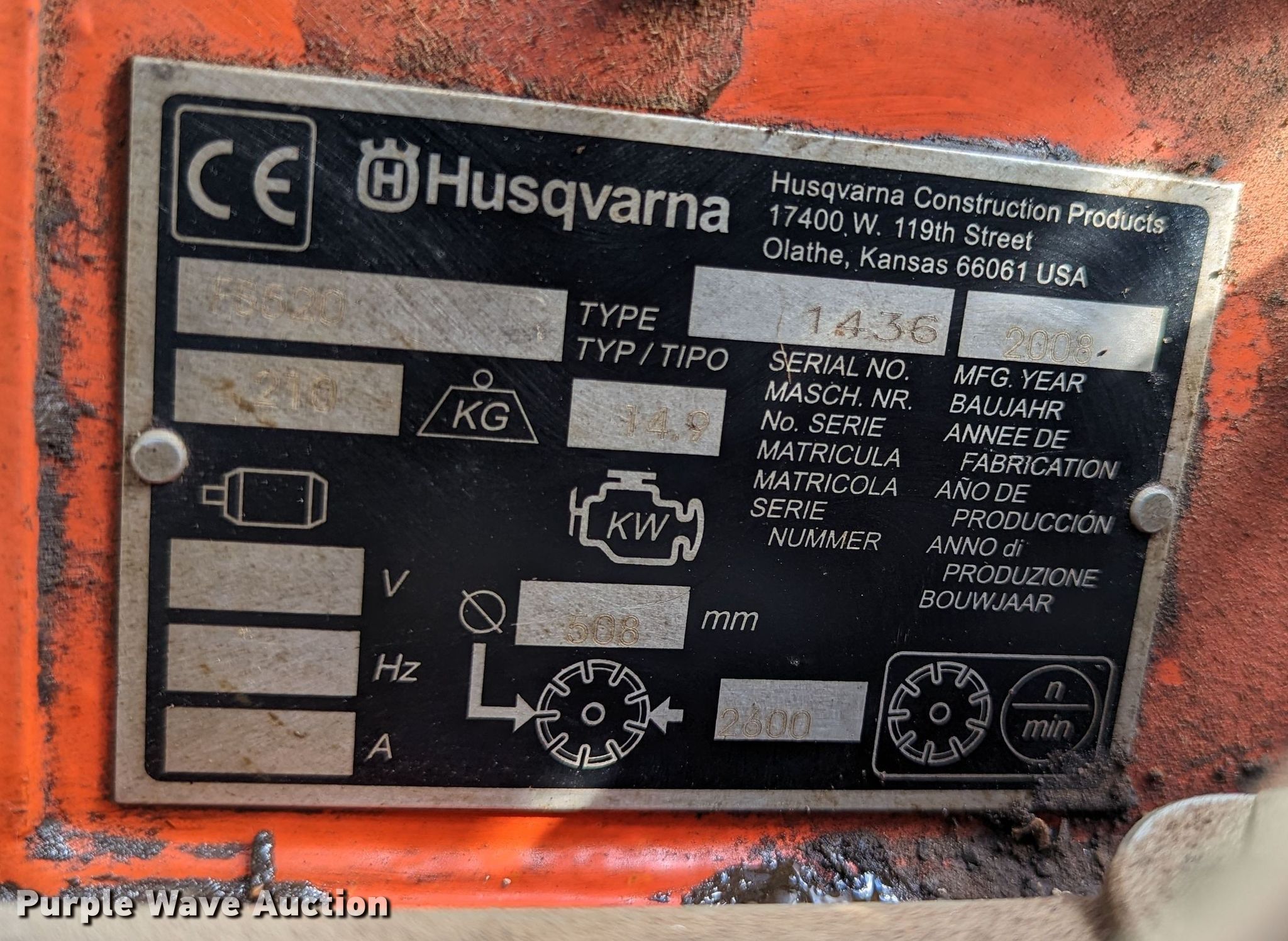 Purple Wave is selling a used Concrete Equip. or Acces. in Oklahoma. This item is a 2008 Husqvarna FS520 concrete saw with the following: Hours: 3 on meter, Serial: 1436