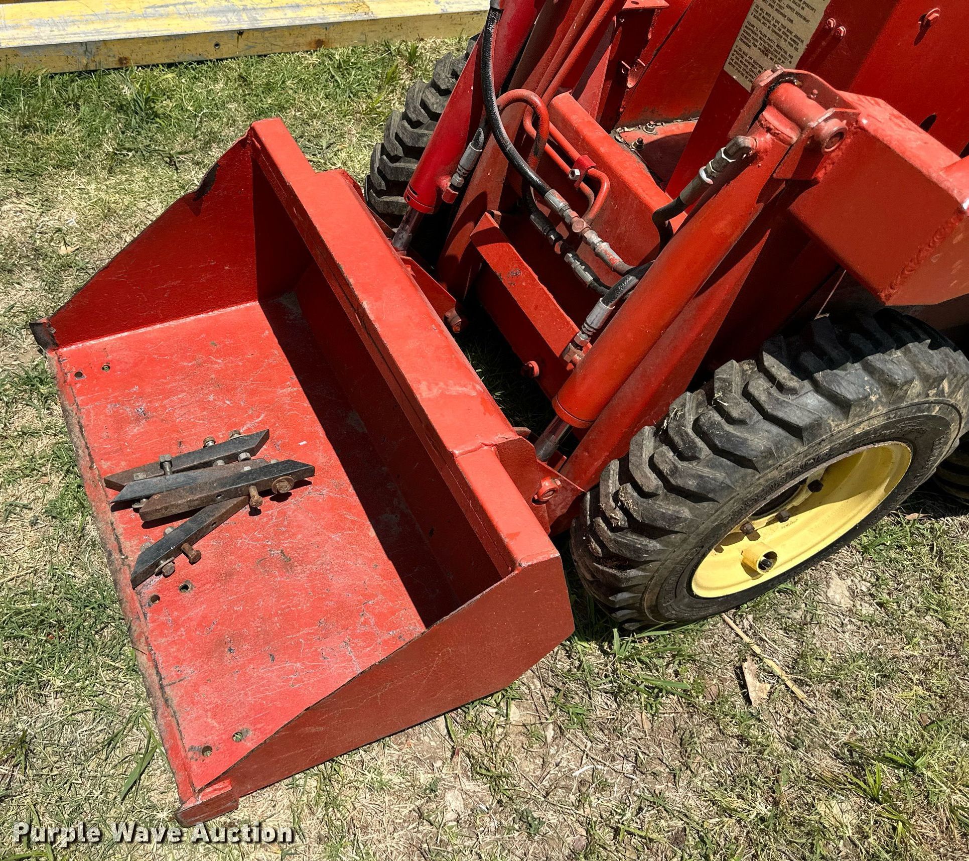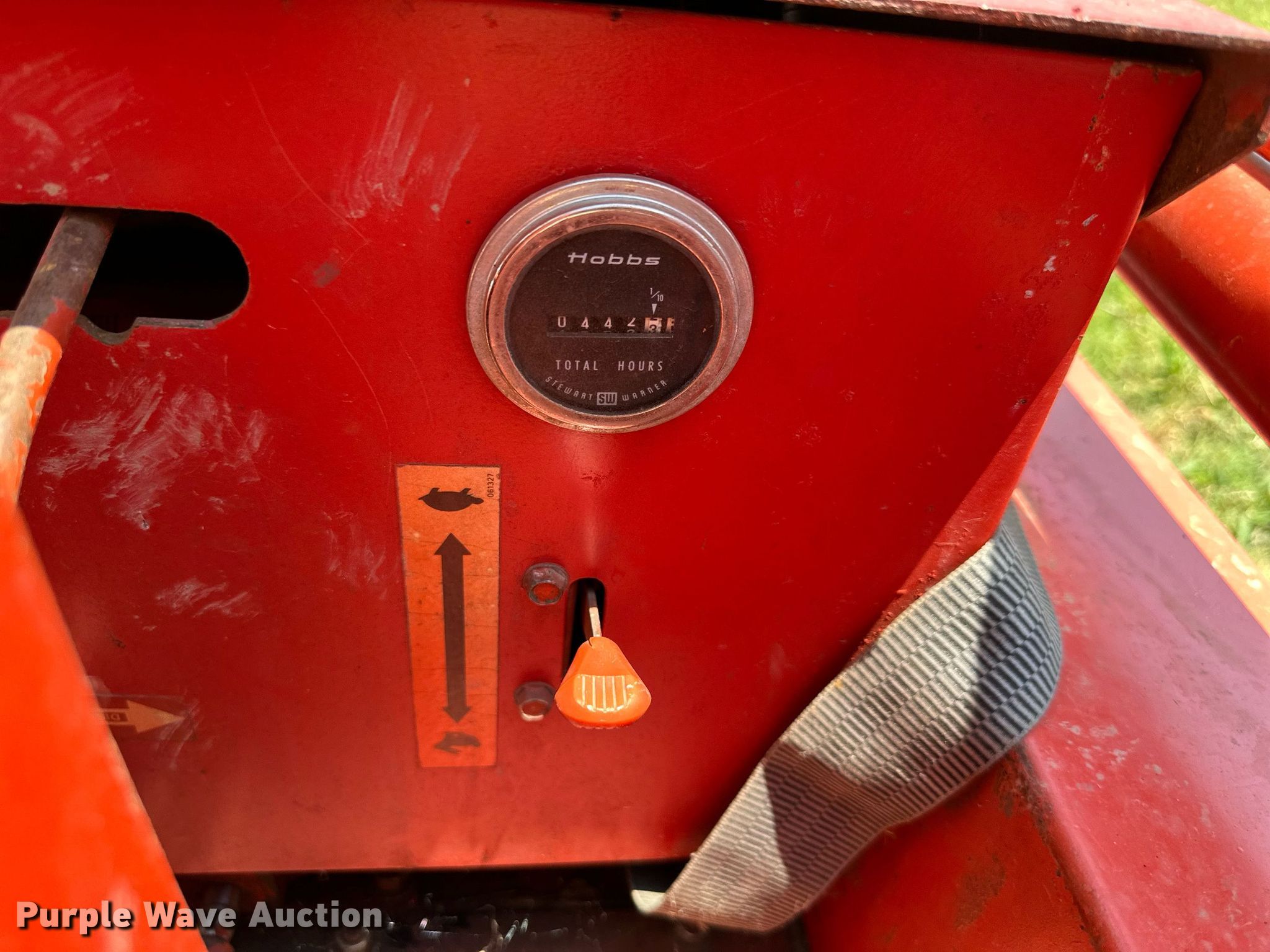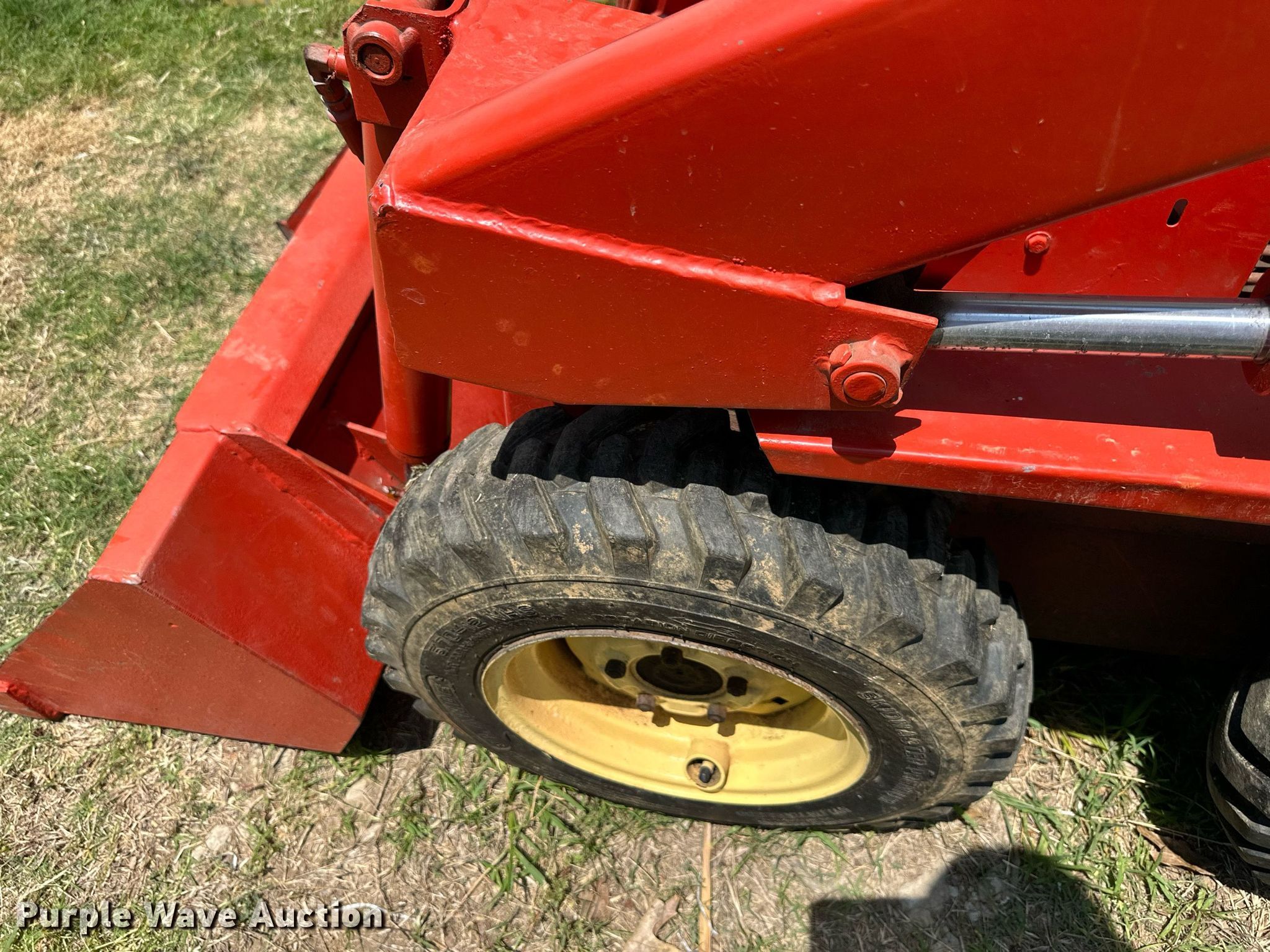 Gehl HL360 skid steer loader. Hours: 442 on meter, Serial: 2064. Engine Onan Performer 20, Cylinders: 2, Fuel type: Gas. Transmission Hydrostatic. Operators station Bucket control: Hand. Features Bucket Width: 36", Cutting edge: Weld-on, Teeth: Bolt-on. Tires Size: 7.50-12. Atchison, KS 66002