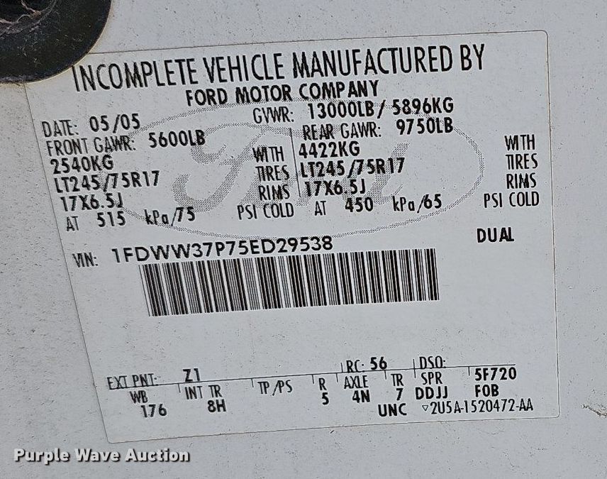 Purple Wave is selling a used 3/4 or 1 Ton Pickup or Van in Missouri. This item is a 2005 Ford F350 Super Duty Crew Cab flatbed pickup truck with the following: Miles: Unknown, VIN: 1FDWW37P75ED29538