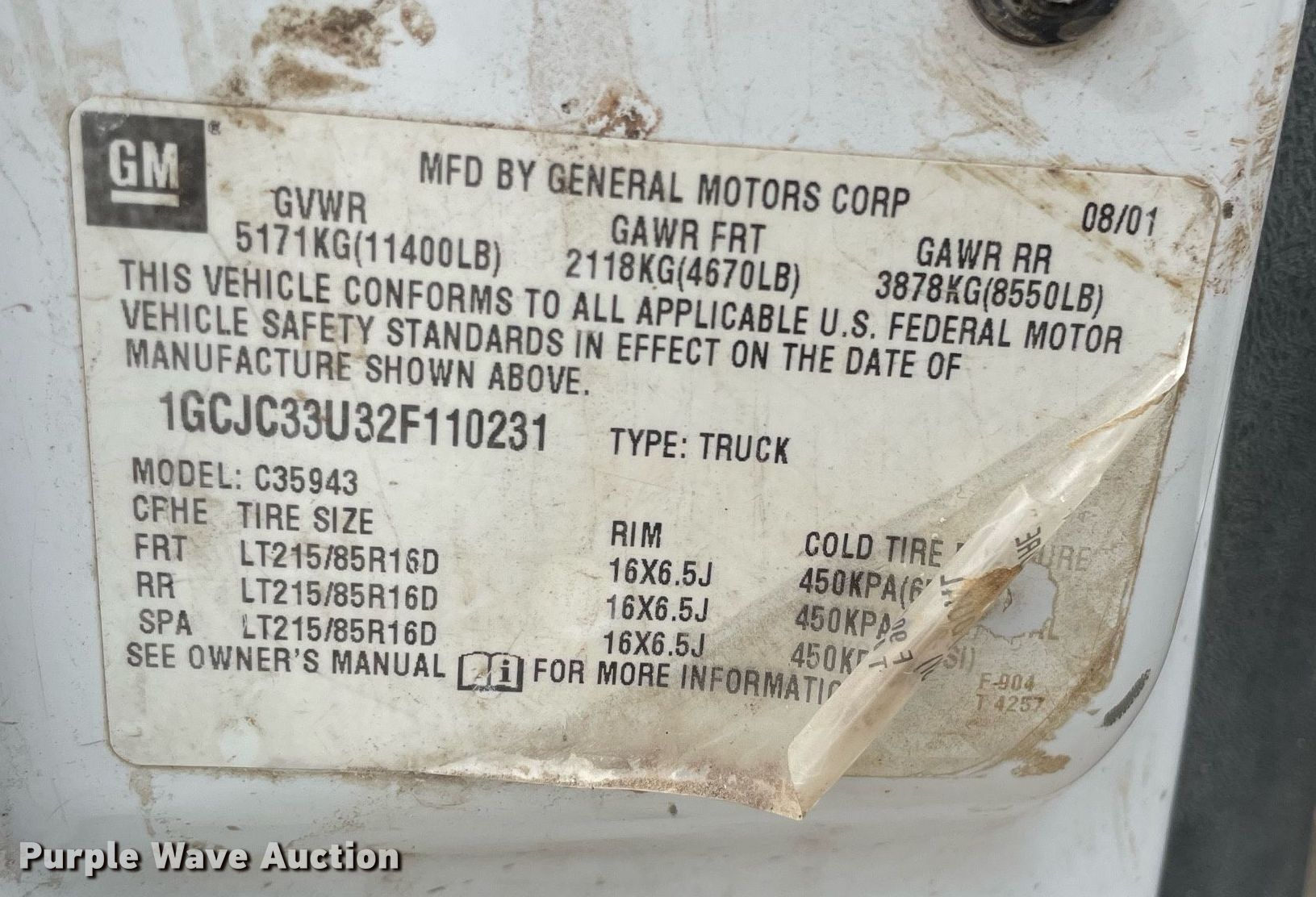 - VIN: 1GCJC33U32F110231