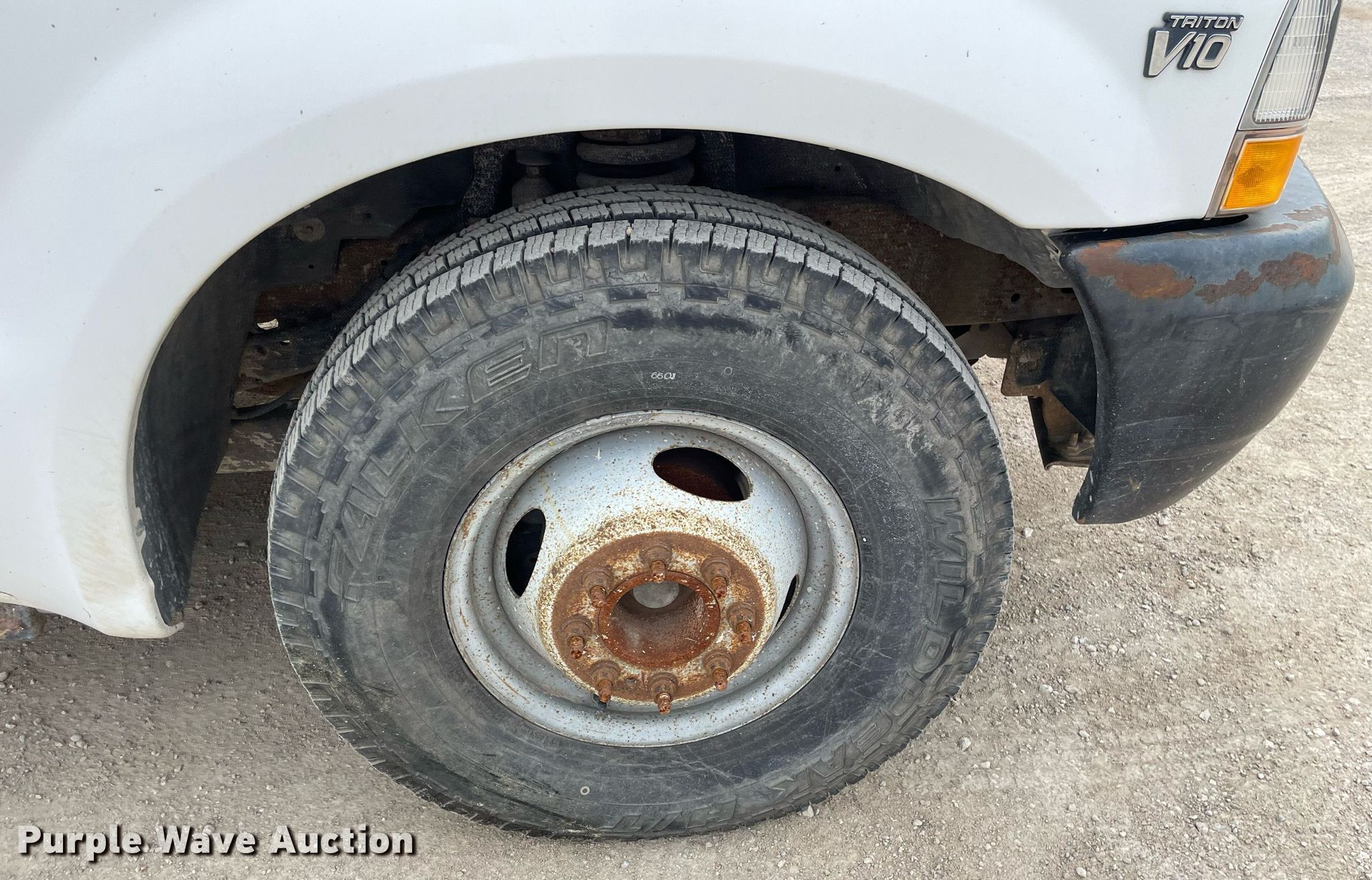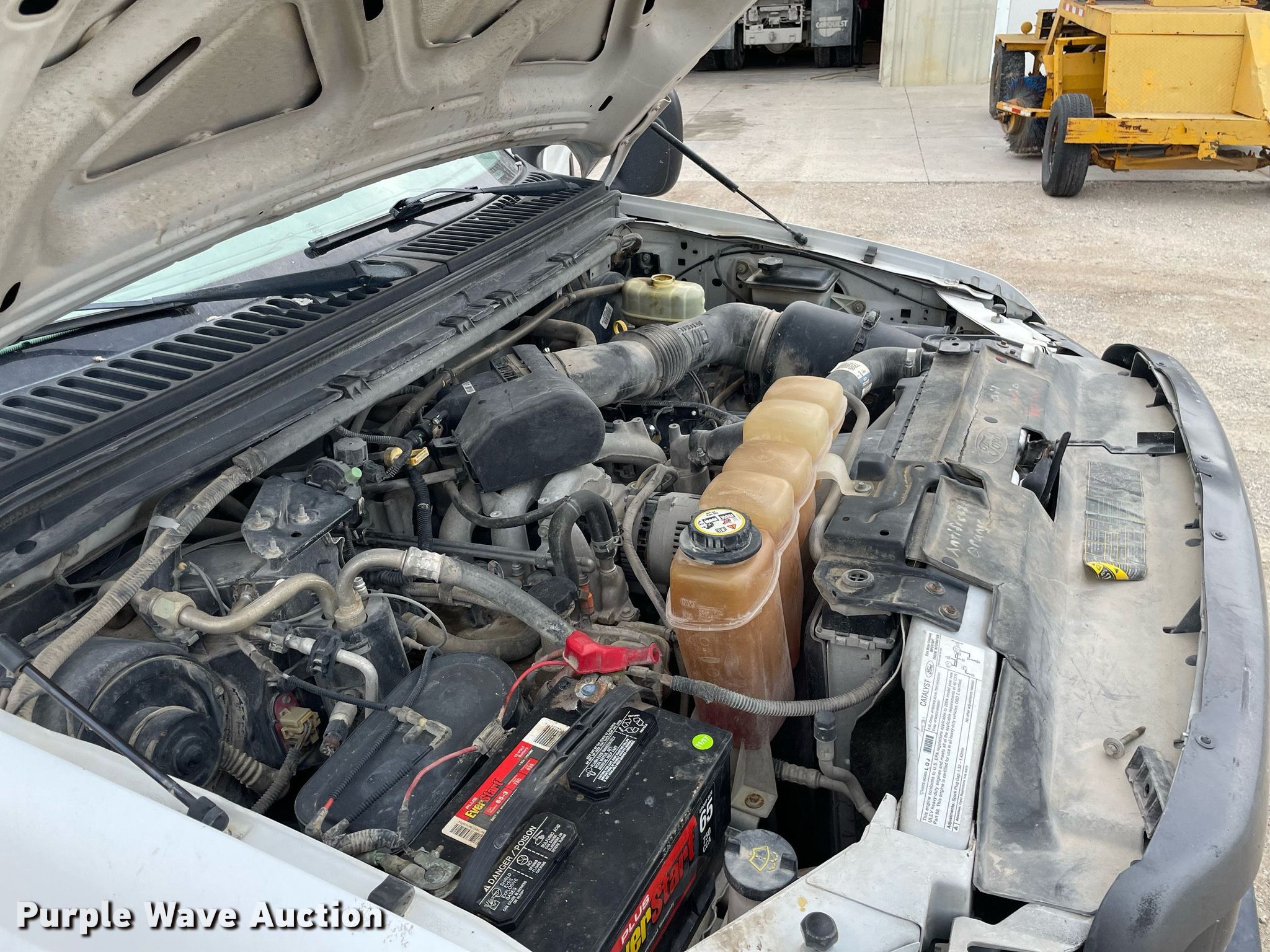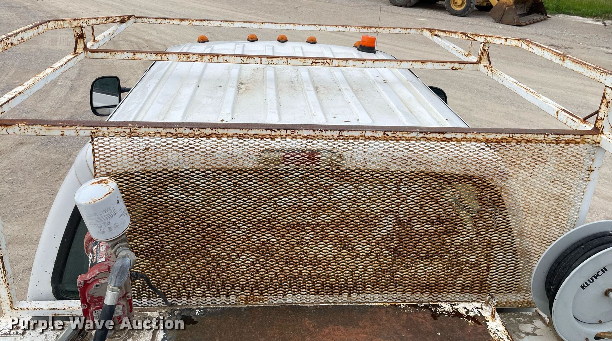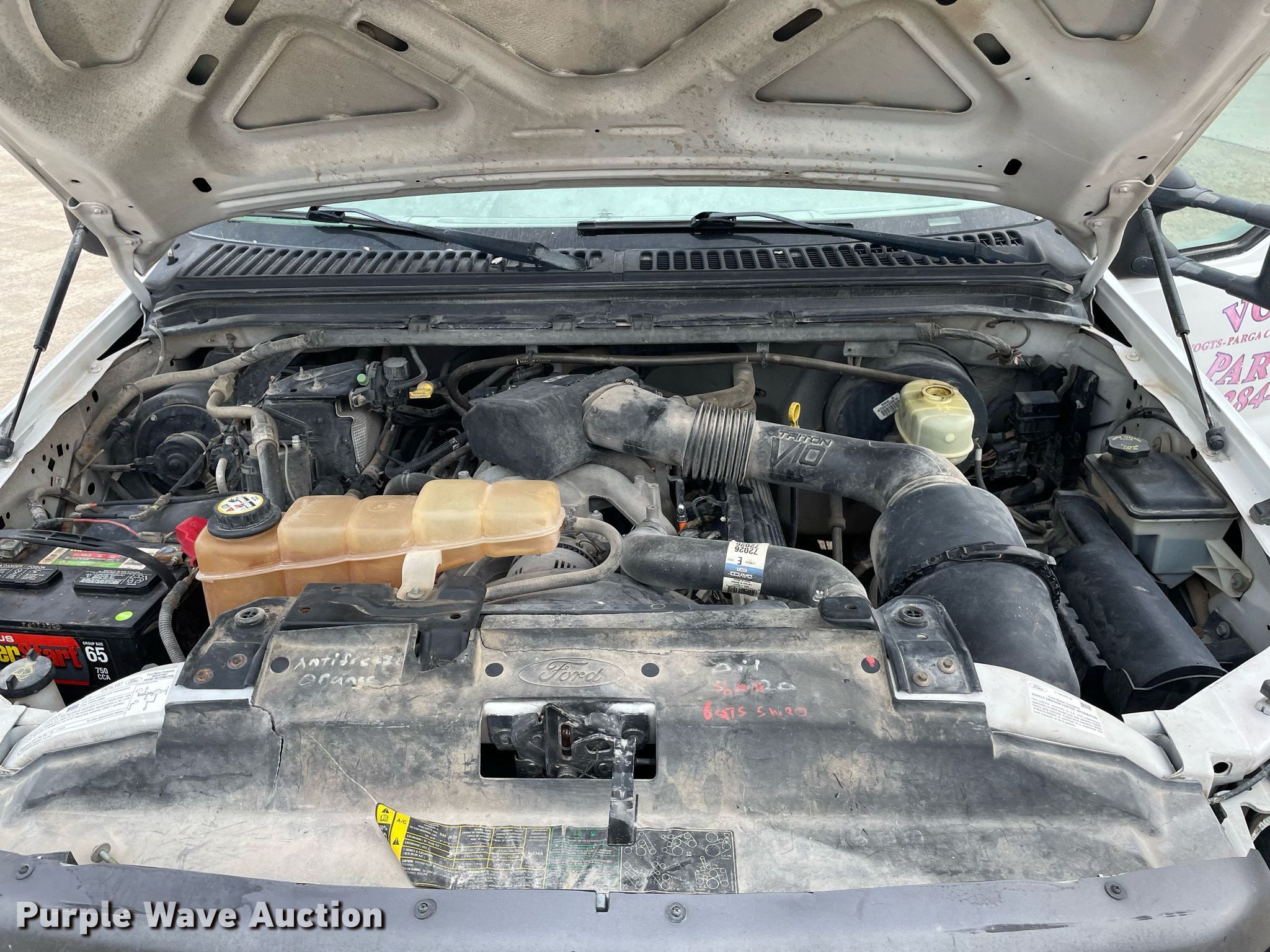 2004 Ford F350 Super Duty Crew Cab utility bed pickup truck. Miles: 206,273 on odometer, VIN: 1FTWW32S54ED17726, Unit #: 211. Engine Displacement: 6.8L V10 SOHC, Cylinders: 10, Fuel type: Gas. Transmission Automatic. Interior AC, Heat, Cruise control. Features Utility bed Knapheide, 8' 10" L x 96" W, Auxiliary fuel tank Fill Rite pump. Tires Size: 235/85R16. Notes Air compressor not included, will be removed prior to auction, Windshield chipped or cracked, Dead battery, Unknown operating condition of AC, Possible engine issues, runs rough. Kansas title. Vogts-Parga Construction LLC. Newton, KS 67114
