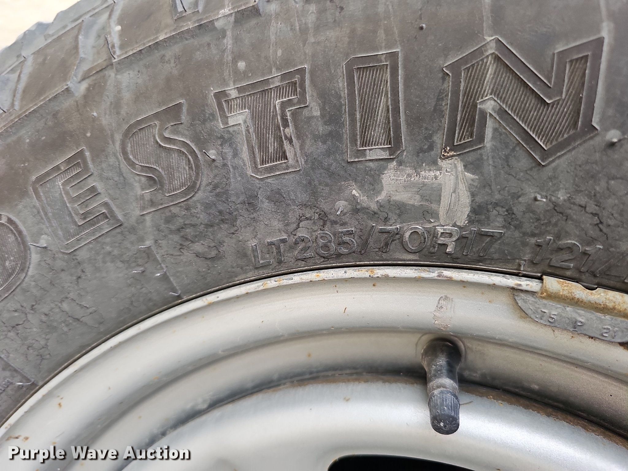 2014 Ford F250 Super Duty XL SuperCab pickup truck. Miles: 326,690 on odometer, VIN: 1FT7X2B6XEEA80439, Unit #: 1313. Engine Displacement: 6.2L V8 OHV, Cylinders: 8, Fuel type: Gas. Transmission Automatic, Four wheel drive. Interior AC, Heat, Heated mirrors, Power windows, Power locks, Cruise control. Features Eagle Lift end gate lift Model: 38x60, Serial: A40934. Tires Size: LT285/70R17. Notes Dash warning indicator: TPMS. Nebraska title. Title distribution may be delayed up to 14 days from verification of funds. Pomps Tire Service. 11403 South 153rd Street. Omaha, NE 68138