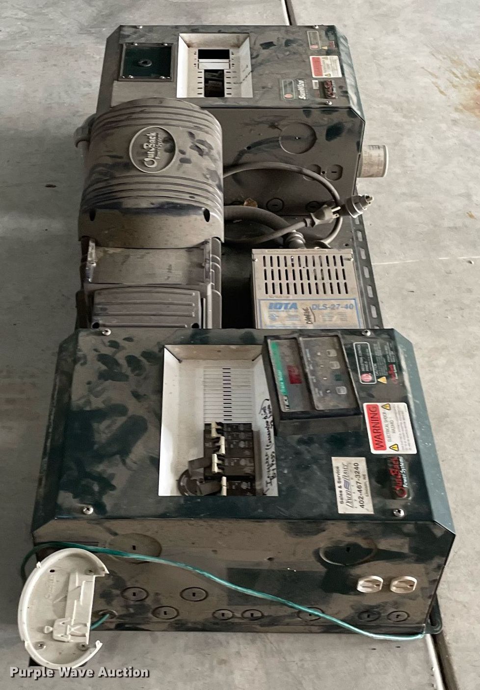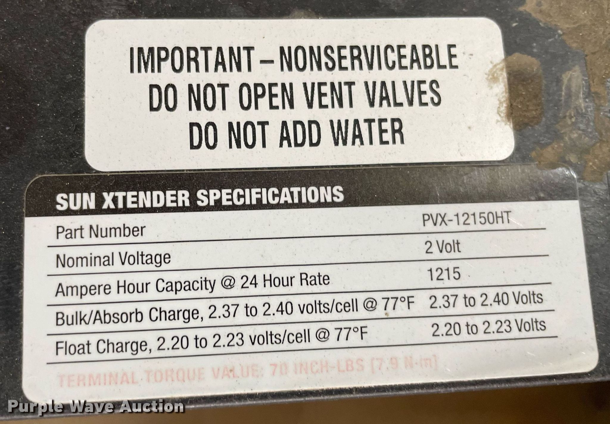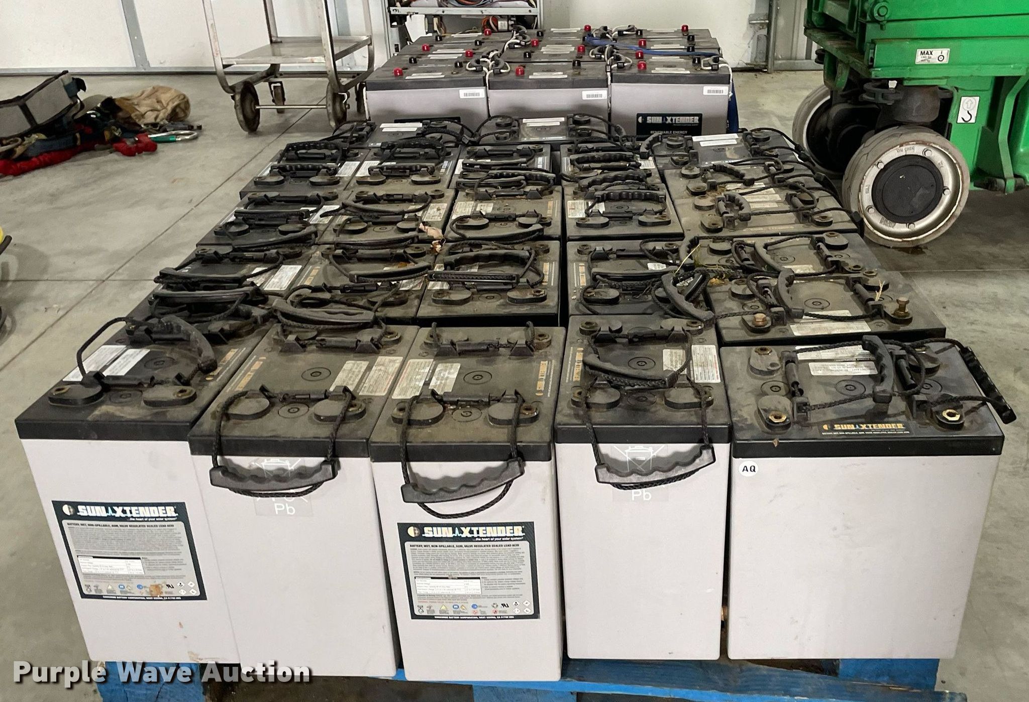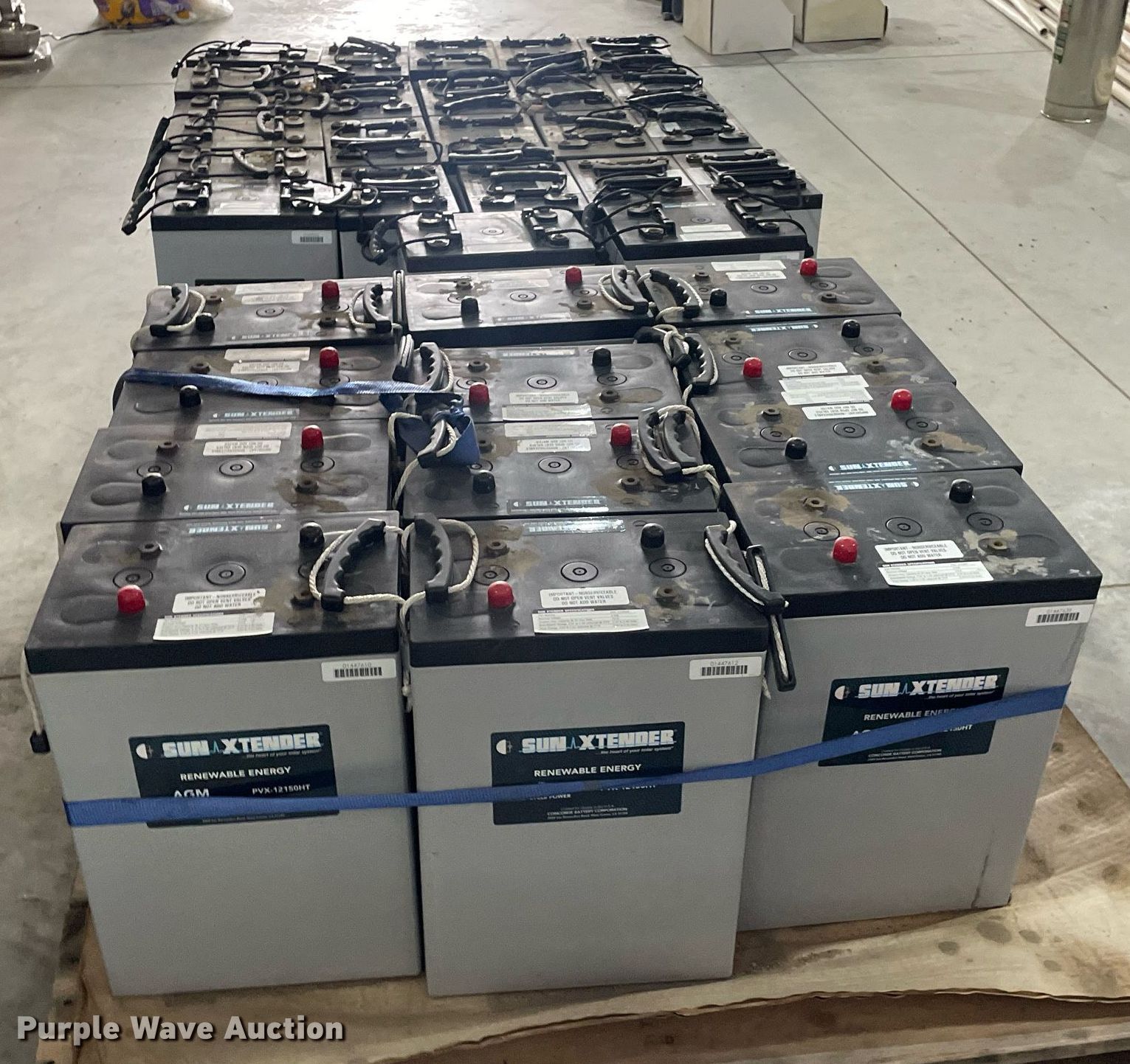 Purple Wave is selling a used Electronics in Kansas. This item is a Renewal energy equipment with the following: (24) Concord Sun Xtender PVX-9105T batteries, Volt: 2, Ampere 24 hour capacity: 915, (12) Concord Sun Xtender PVX-12150HT batteries, Volt: 2, Ampere 24 hour capacity: 1,215, Outback Power Systems control panel, Serial: 10049