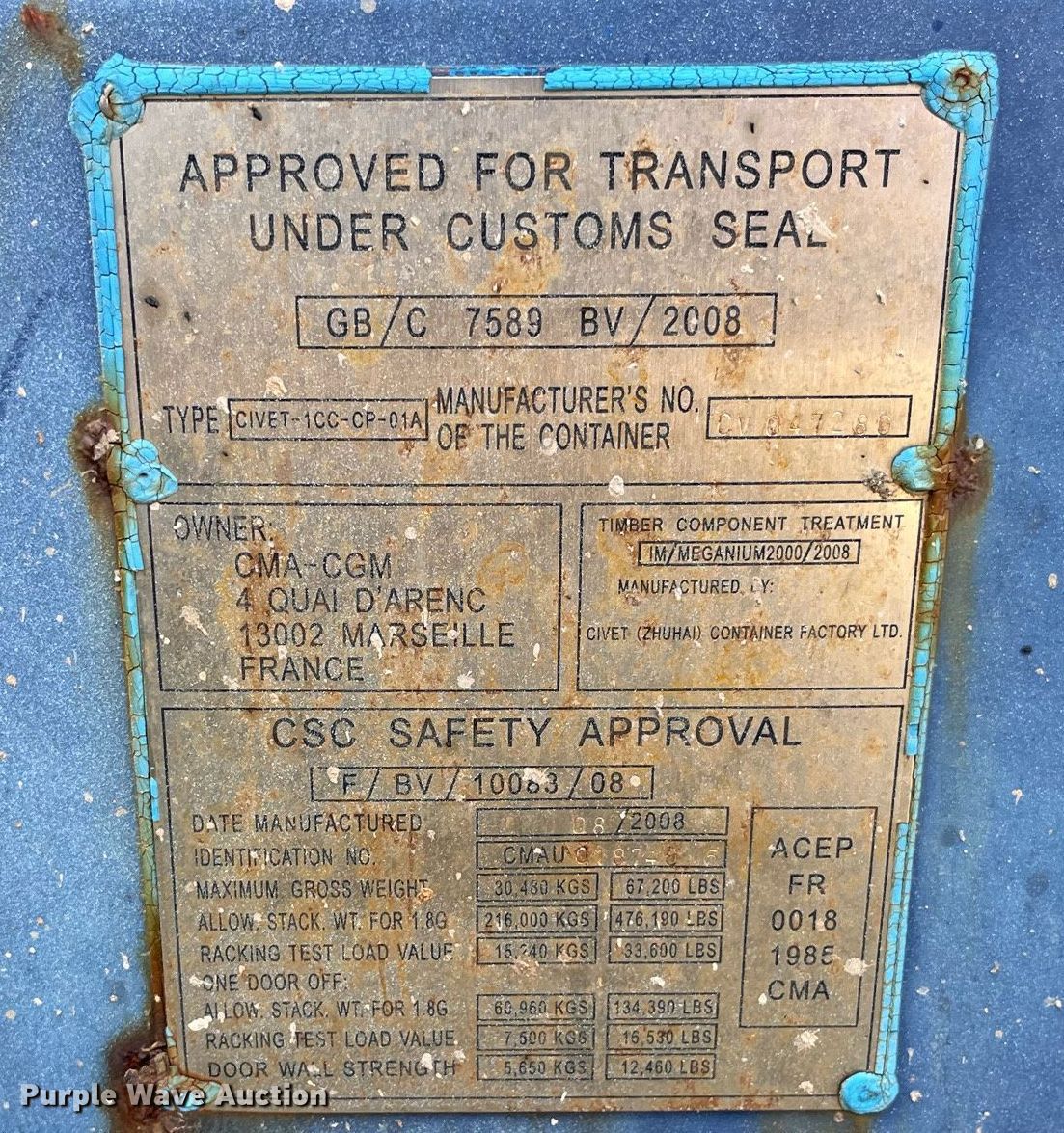 2008 Civet CIVET-1CC-CP-01A shipping container | SOLD! July 19 Vehicles and Equipment Auction
