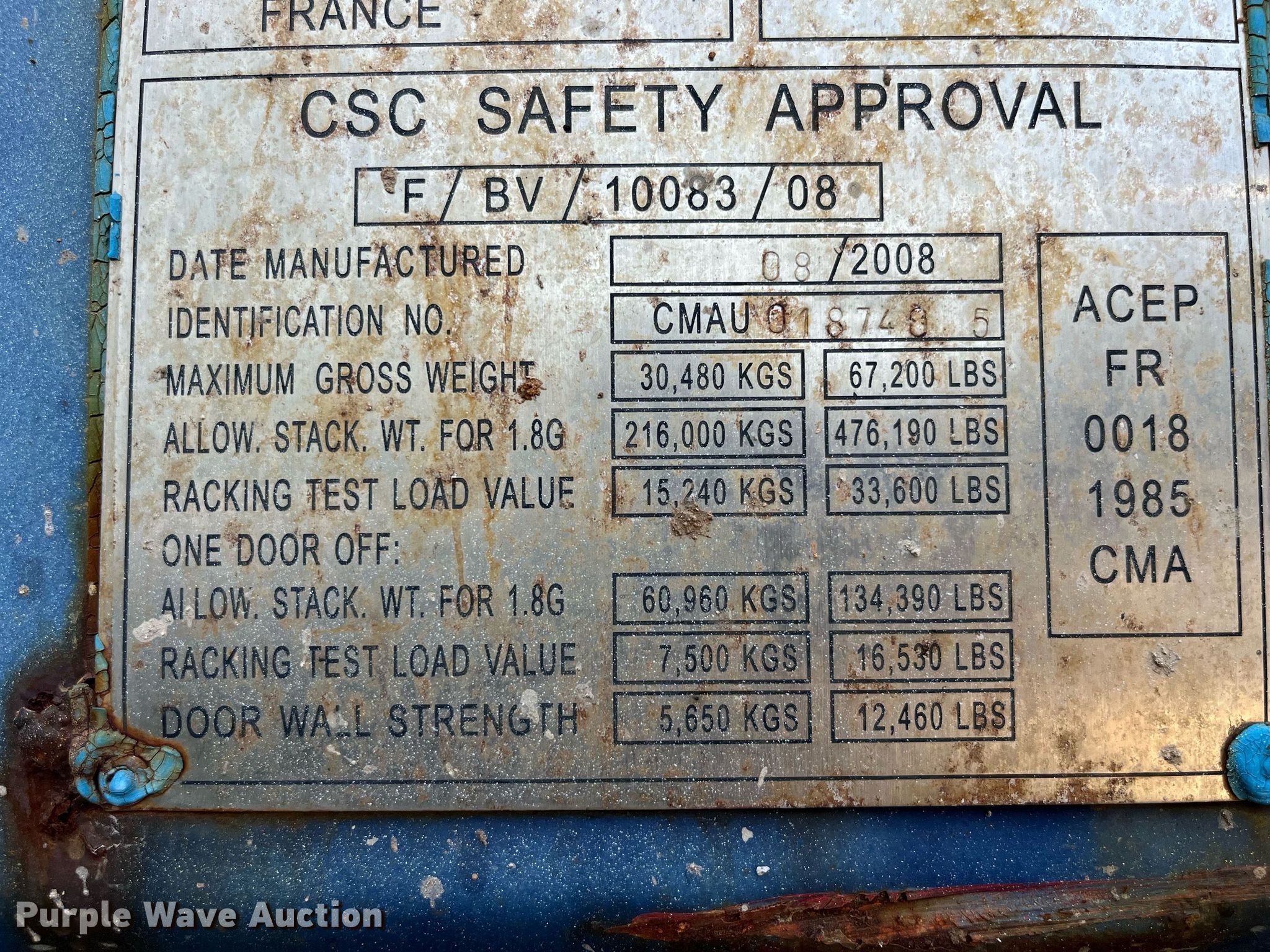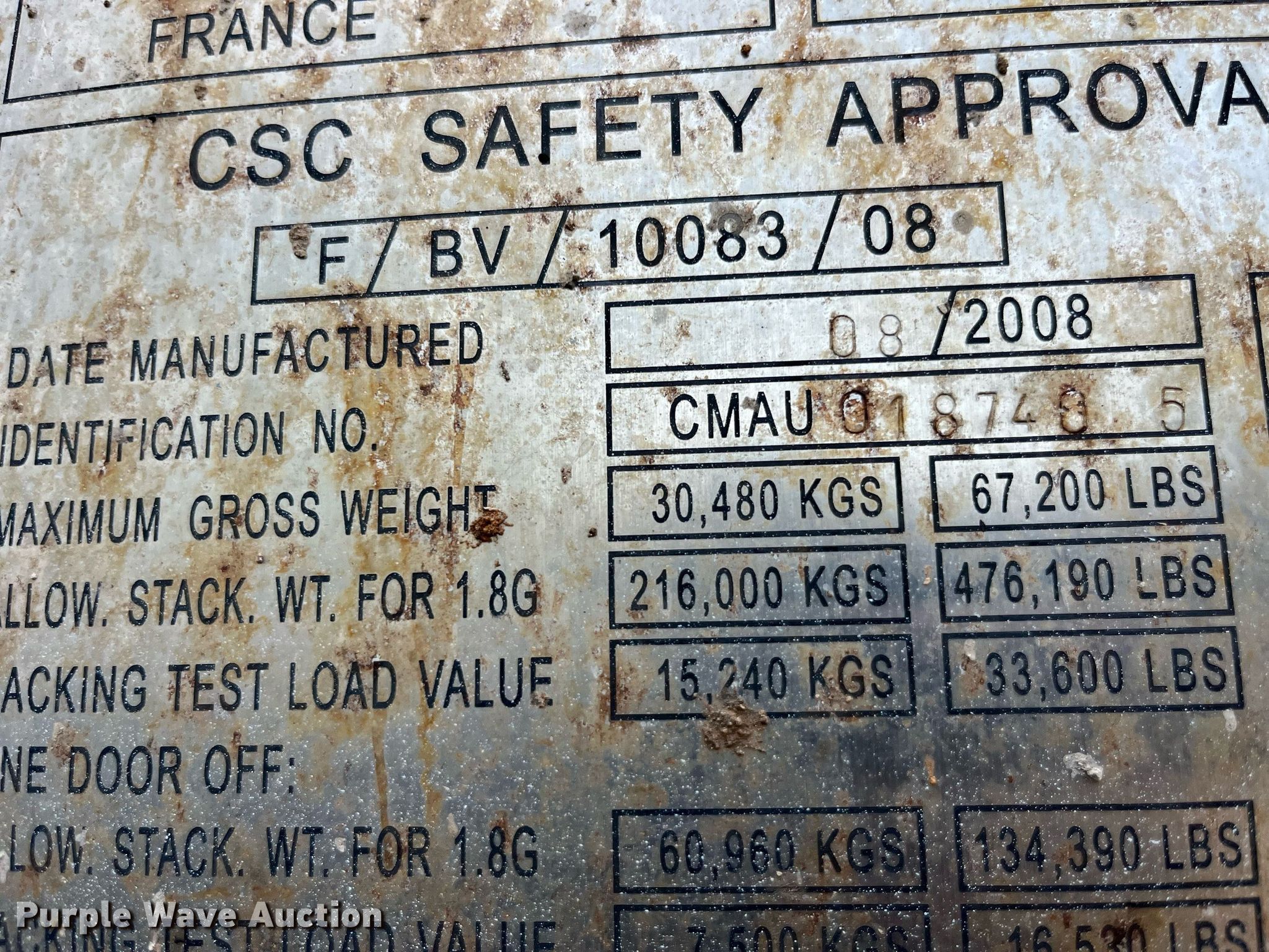 This 2008 Civet CIVET-1CC-CP-01A shipping container will sell to the highest bidder regardless of price.