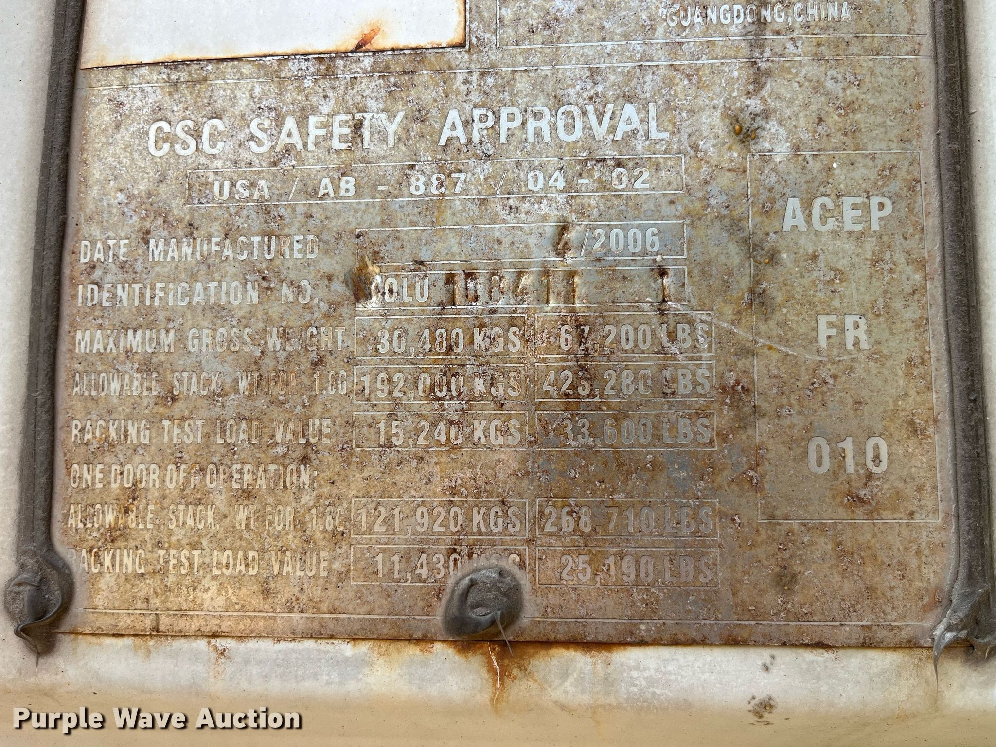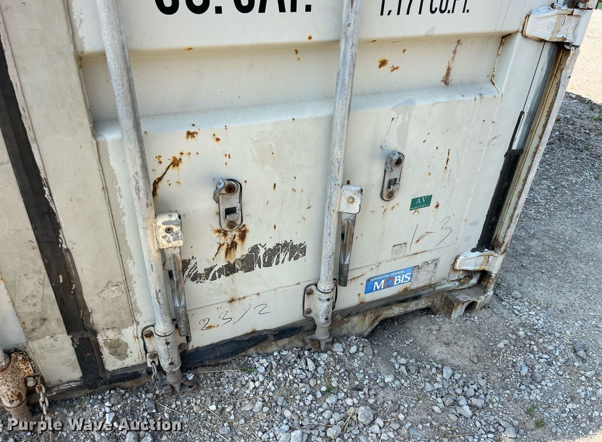 Purple Wave is selling a used Storage or Shipping Container in Illinois. This item is a 2006 Guangdong Hyundai Mobis Co HP-1CC-573 shipping container with the following: 19' 10" L x 95.5" W x 8' 6" H, Serial: OLU108411