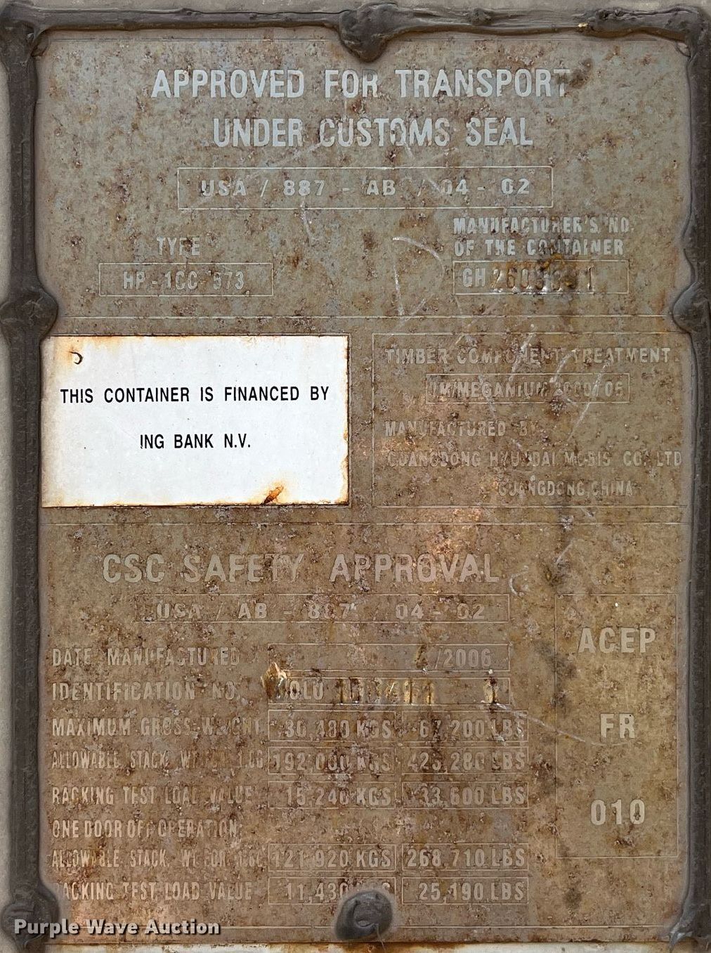 2006 Guangdong Hyundai Mobis Co HP-1CC-573 shipping container | SOLD! July 19 Vehicles and Equipment Auction