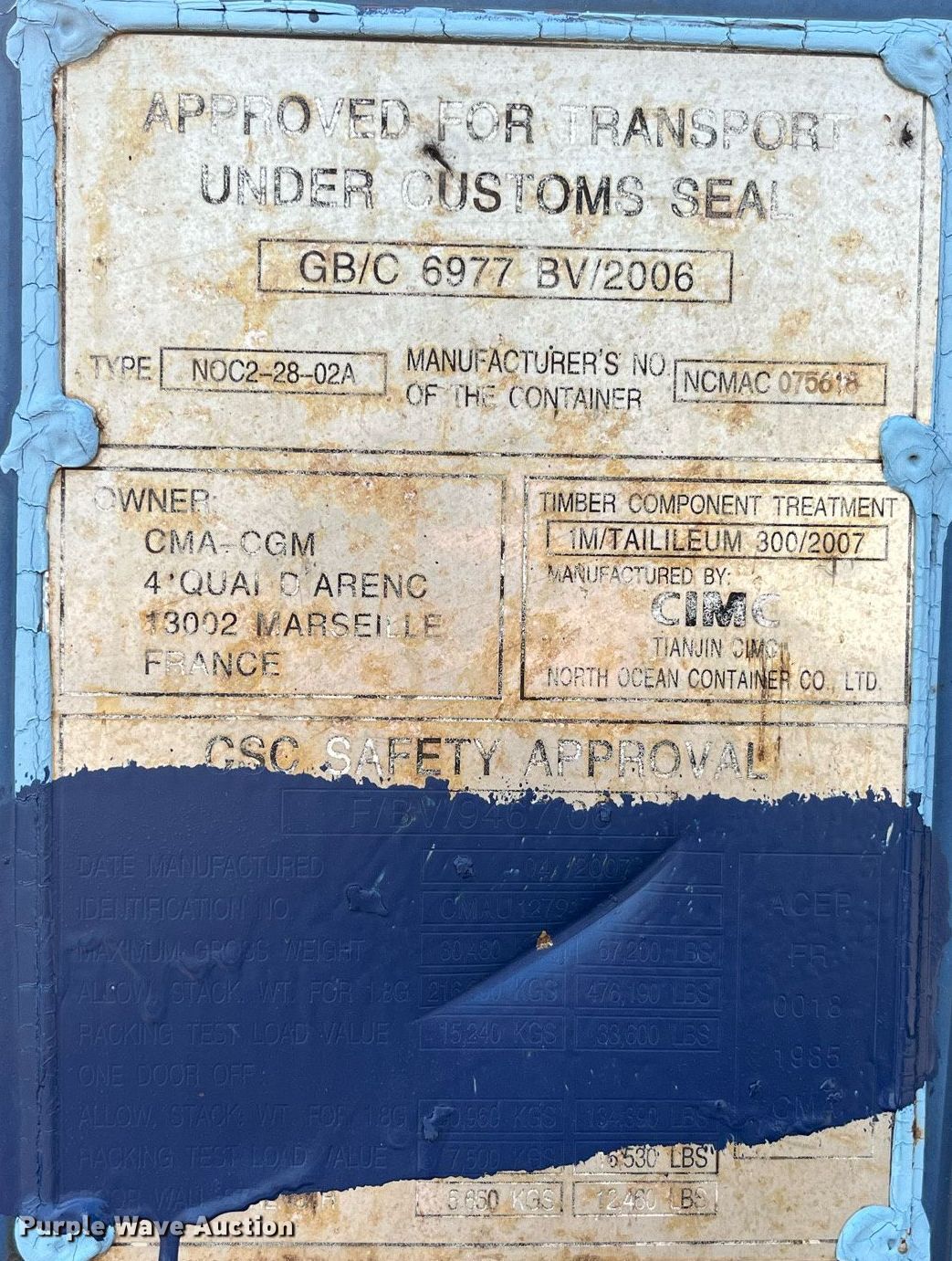 2007 CIMC NOC2-28-02A shipping container | SOLD! July 19 Vehicles and Equipment Auction