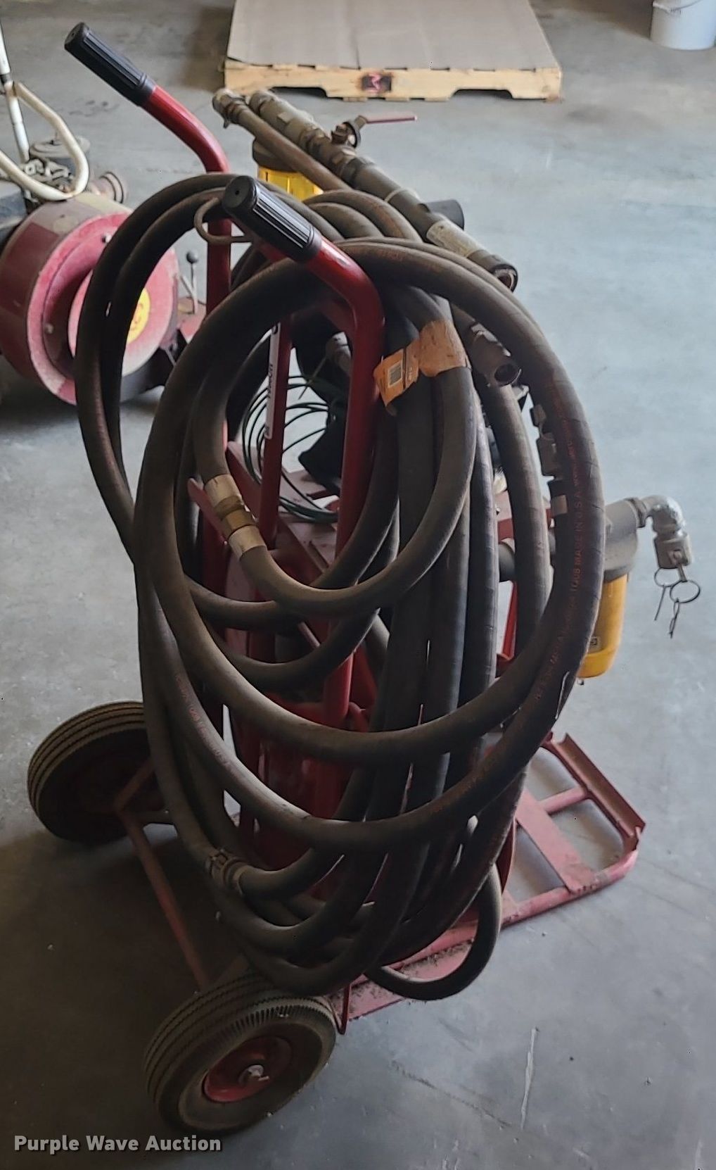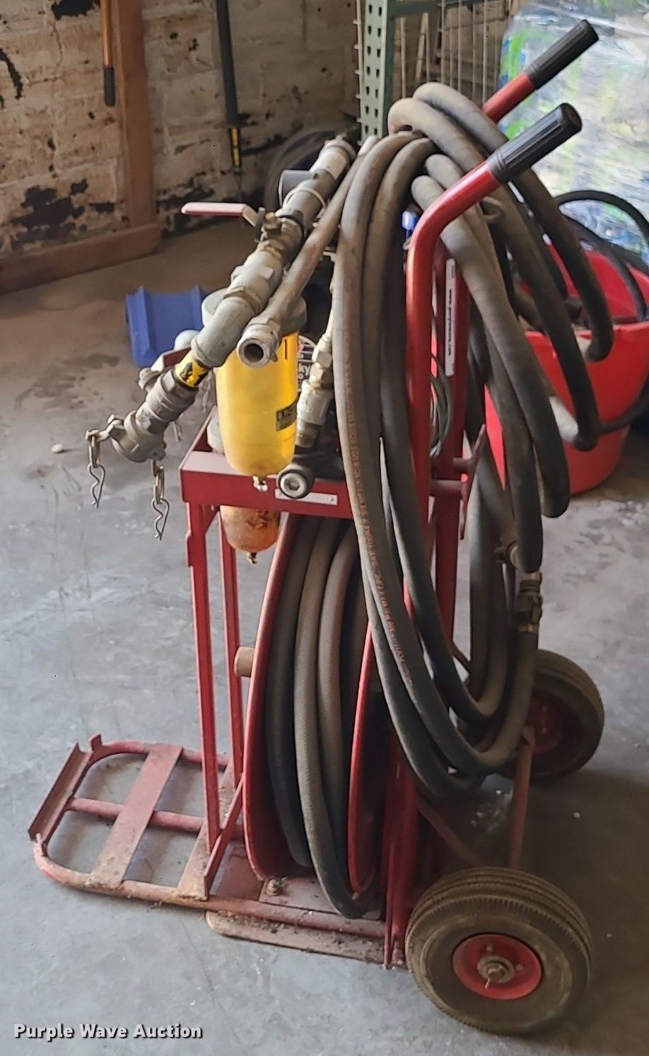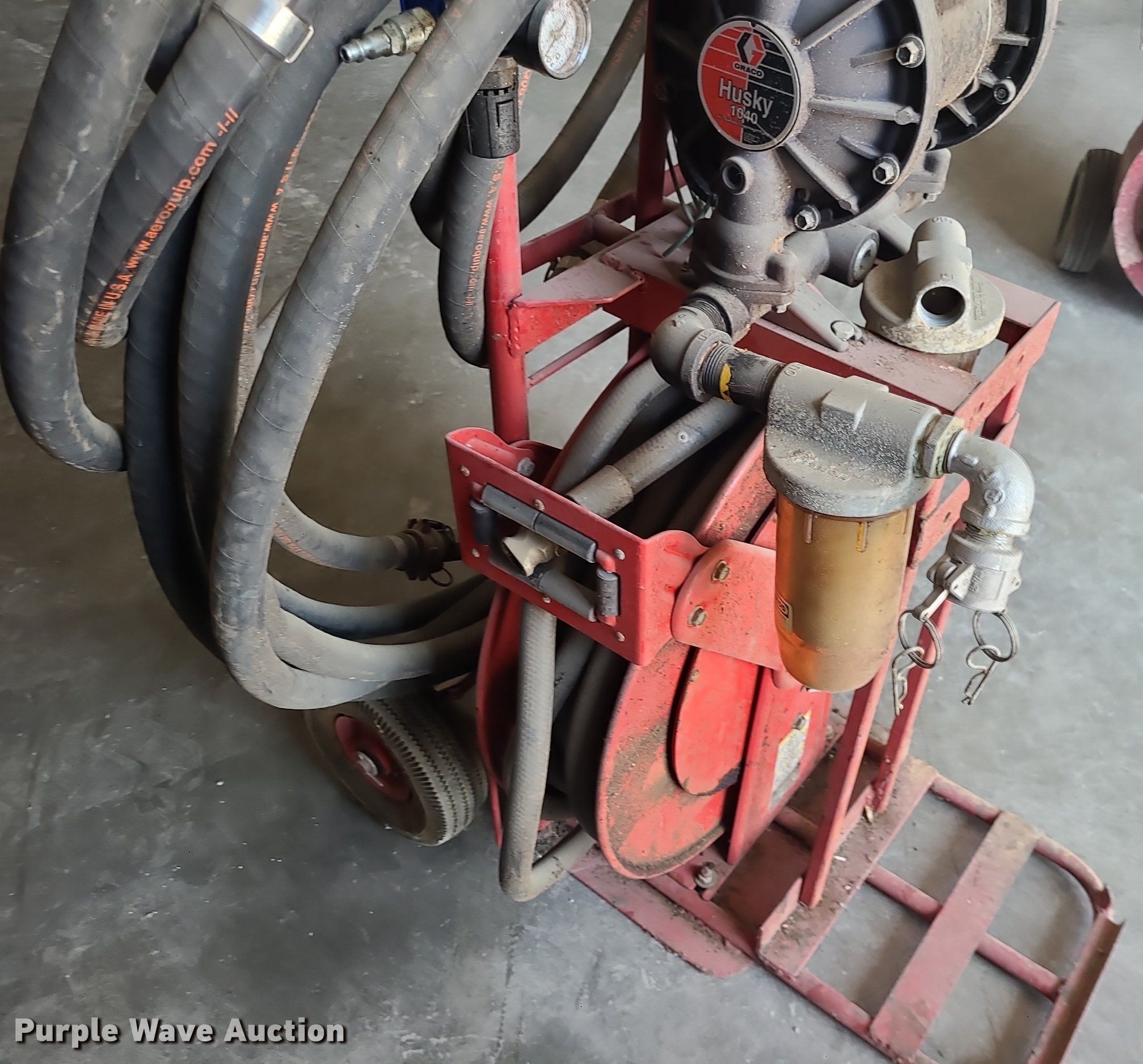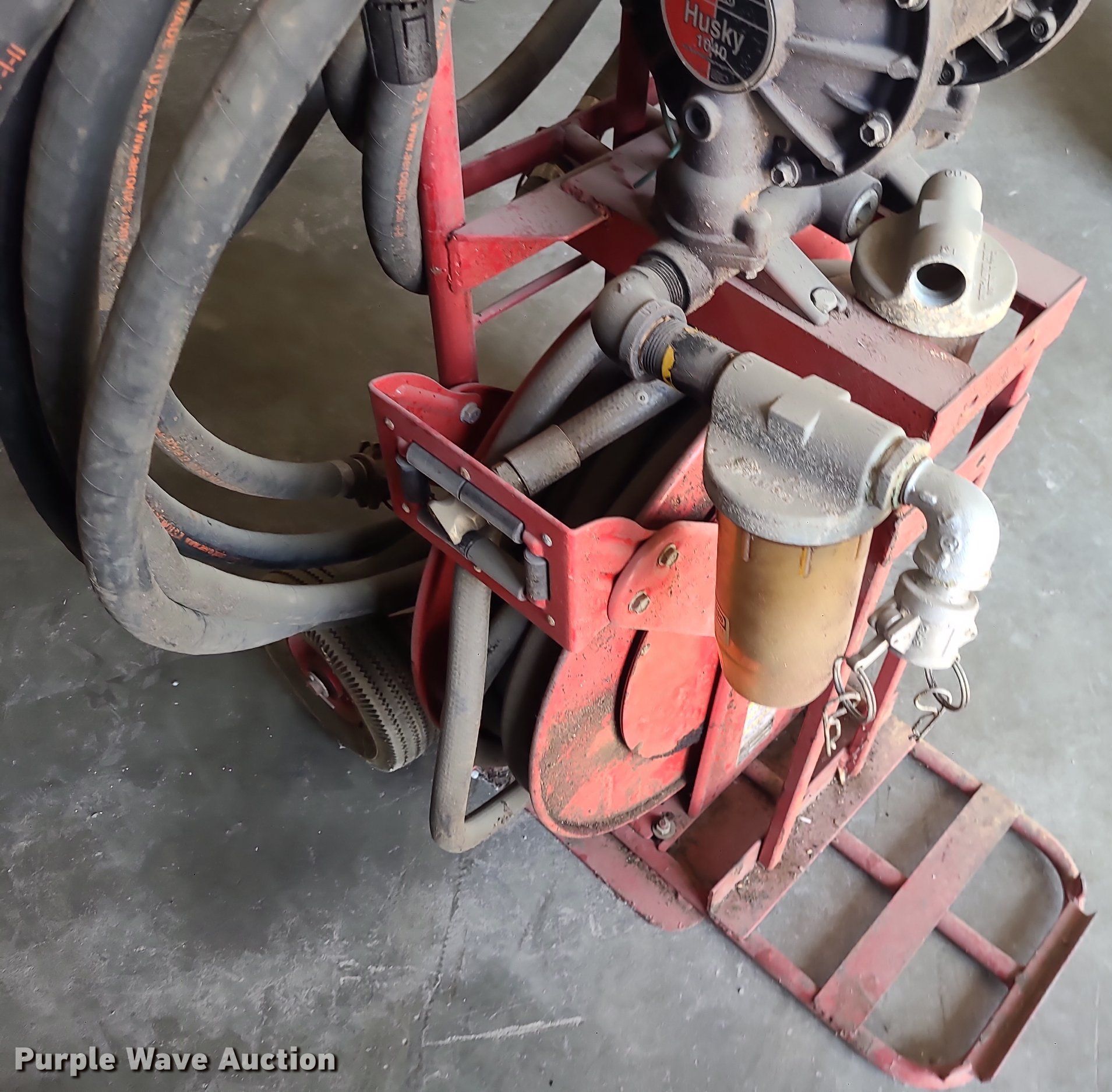 Purple Wave is selling a used Fuel and Lube in Missouri. This item is a Graco Husky 1040 pneumatic fuel pump with the following: 1" diameter hoses