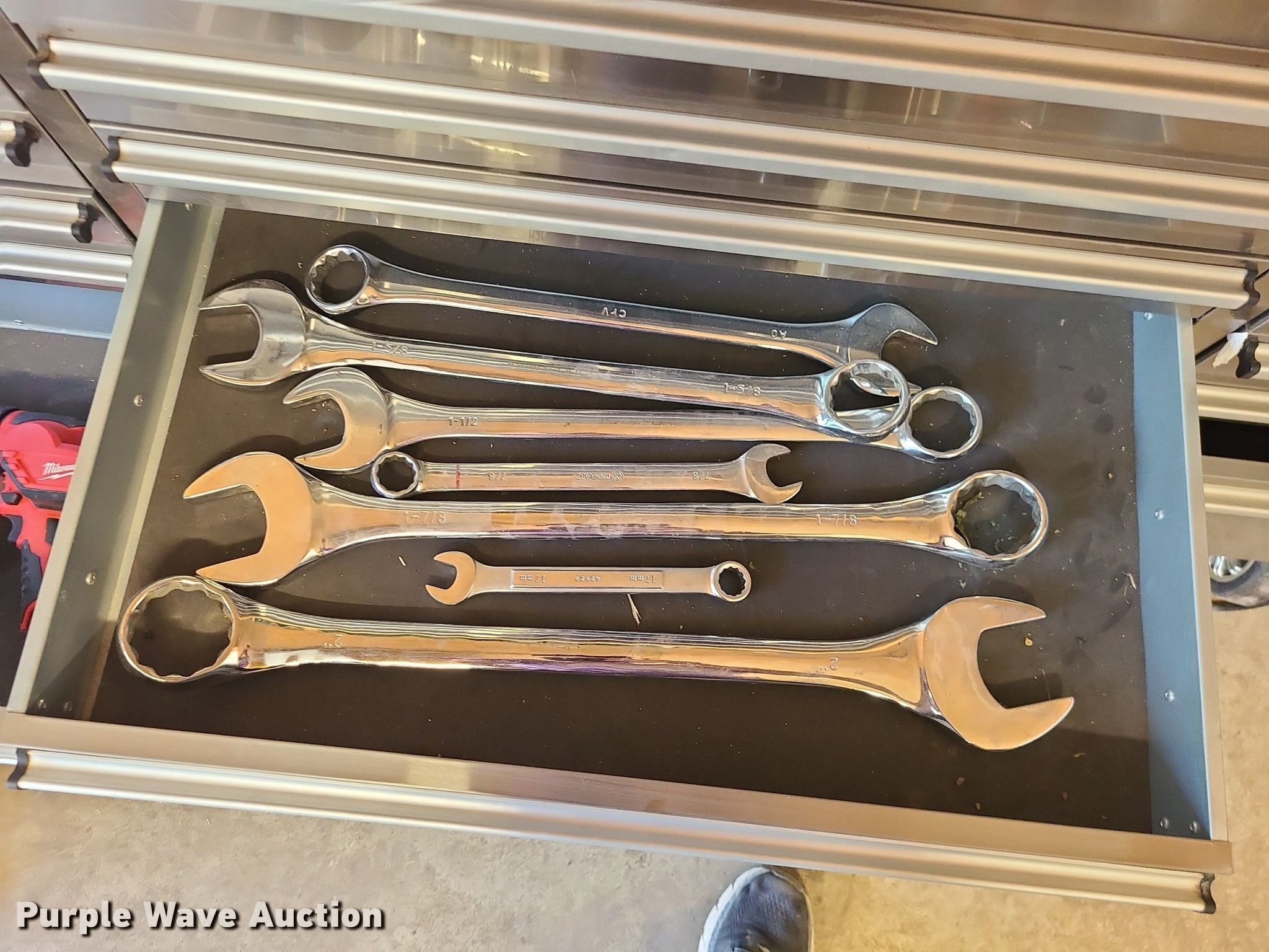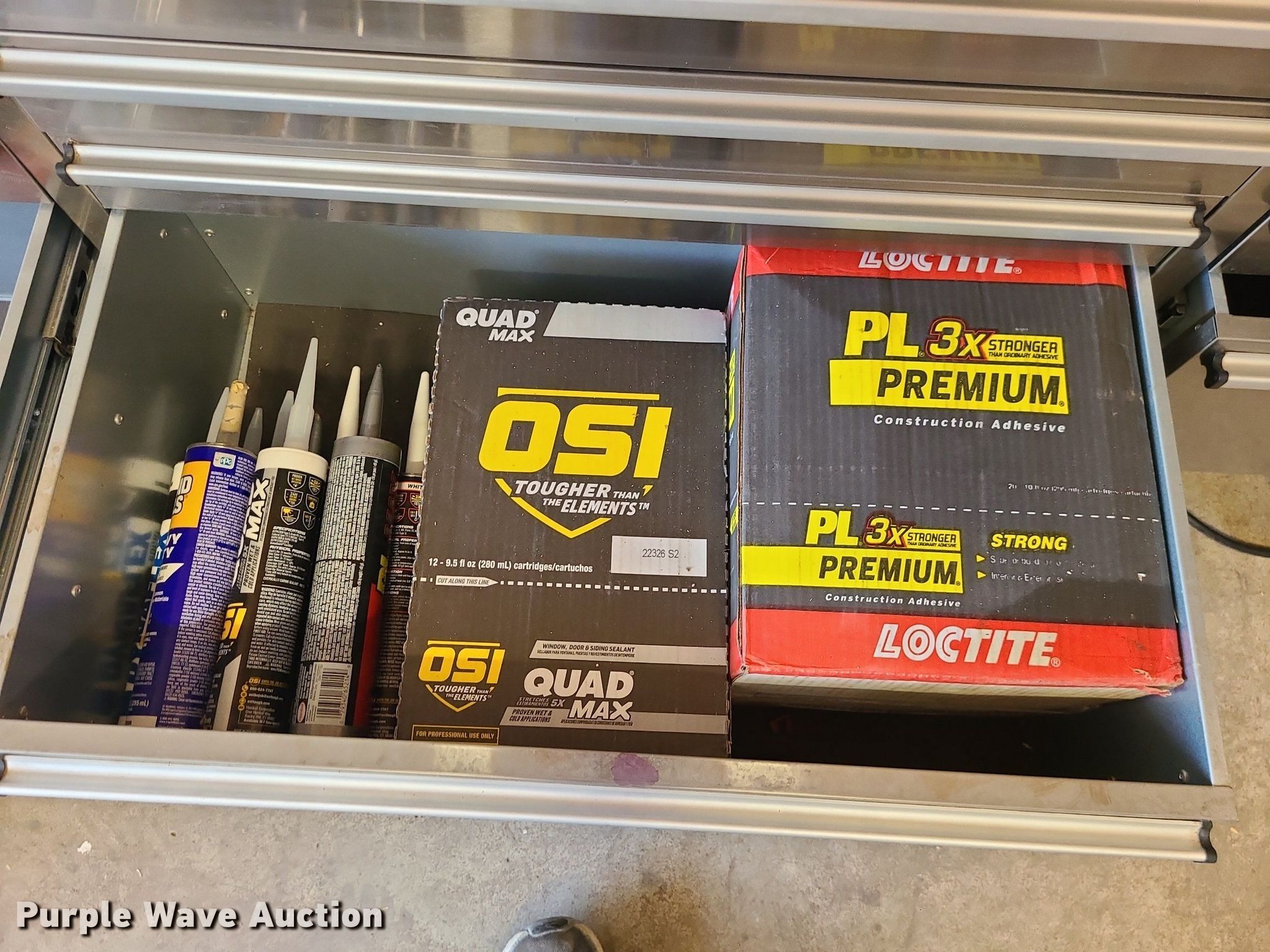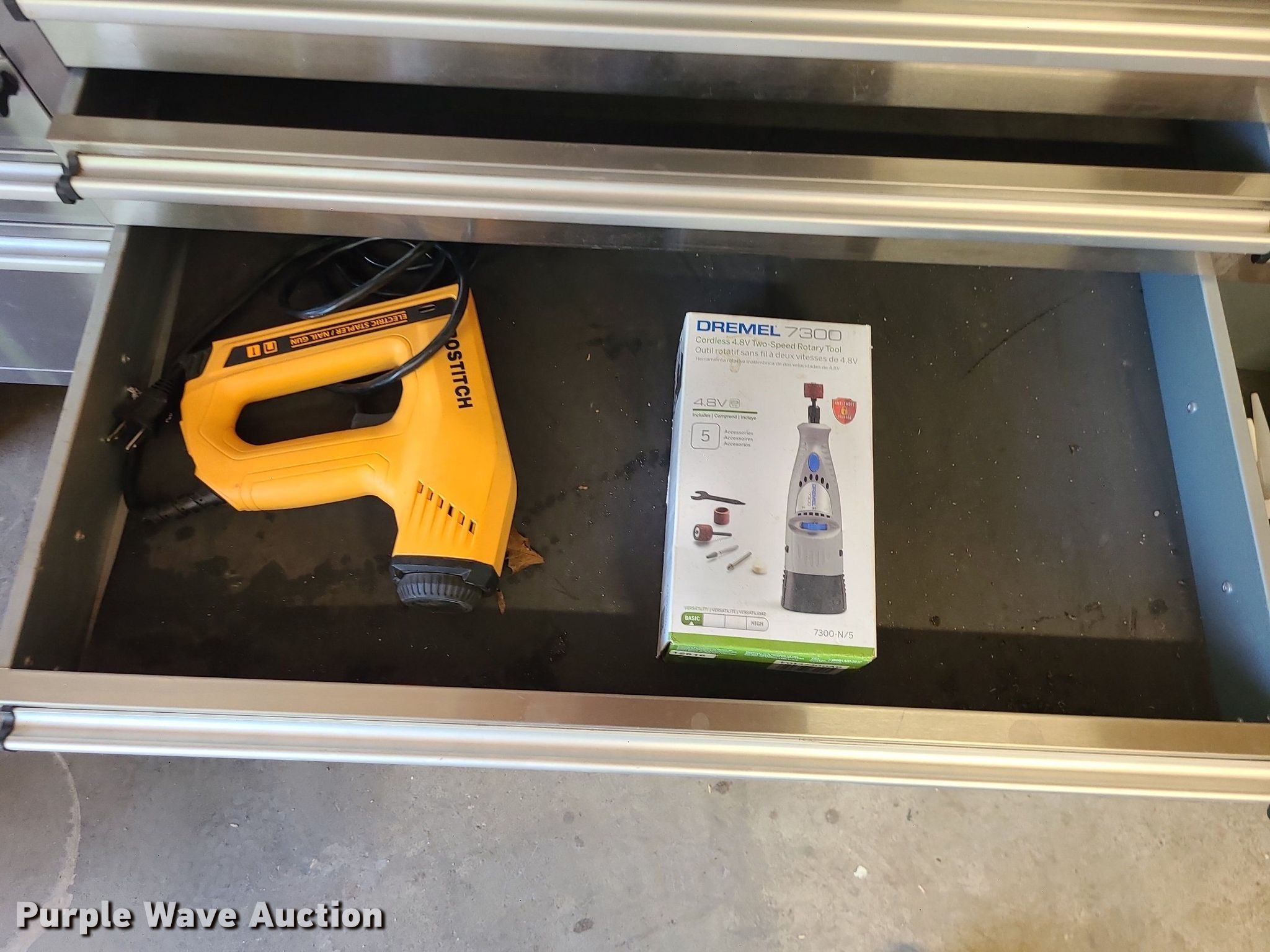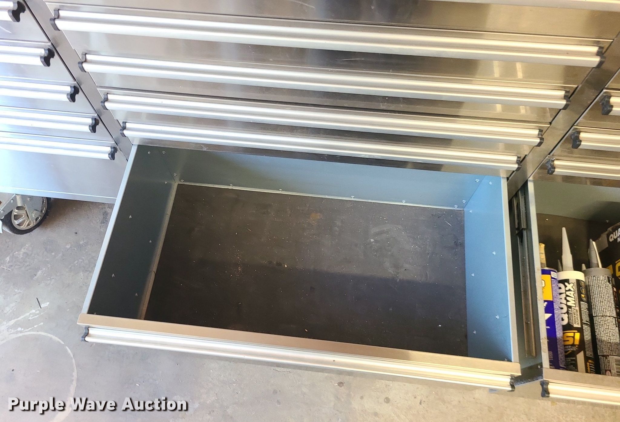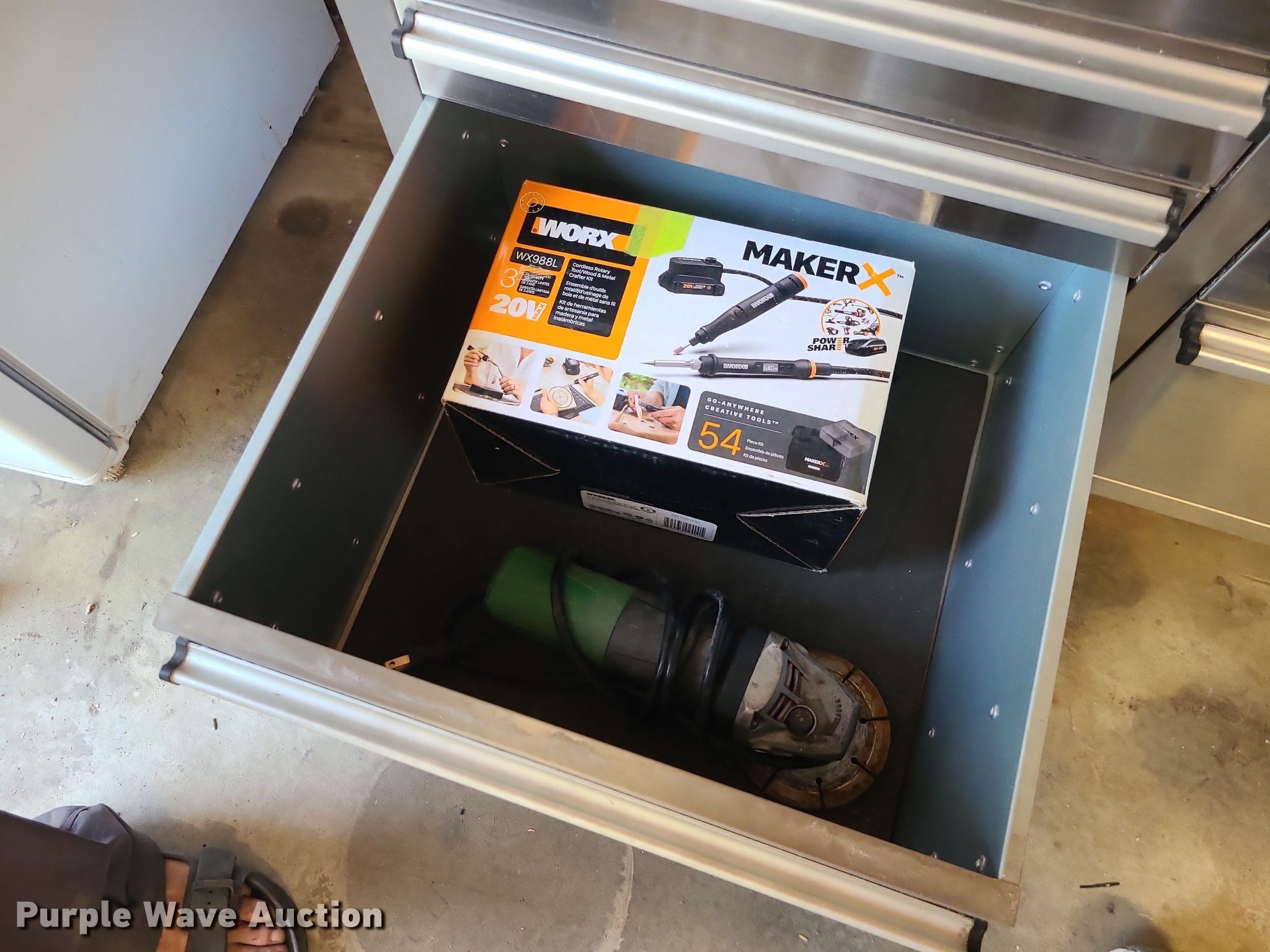 Purple Wave is selling a used Tools in Missouri. This item is a Siebel work bench with the following: 8' W x 37" H x 19" D, Wrenches, Sockets, Bits, Grinder, Porter Cable cordless tool kit, Keys