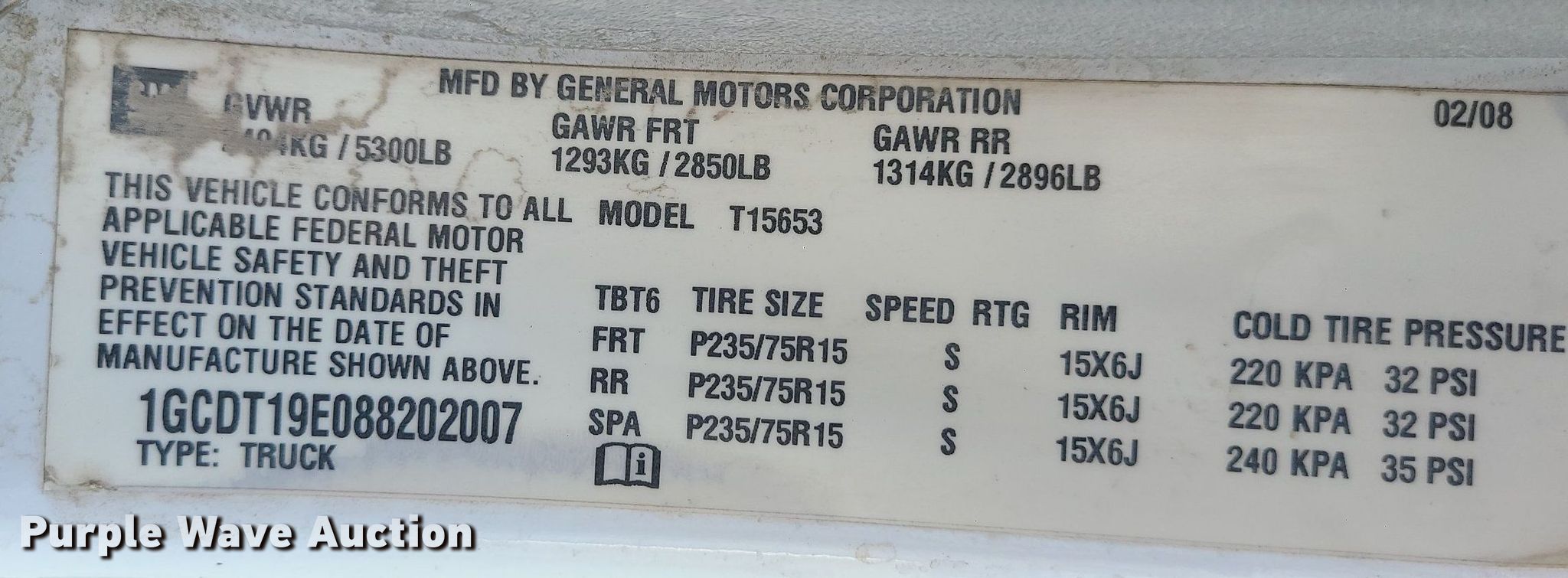 Purple Wave is selling a used Compact Pickup or Van in Missouri. This item is a 2008 Chevrolet Colorado Ext. Cab pickup truck with the following: Miles: 199,854 on odometer, VIN: 1GCDT19E088202007
