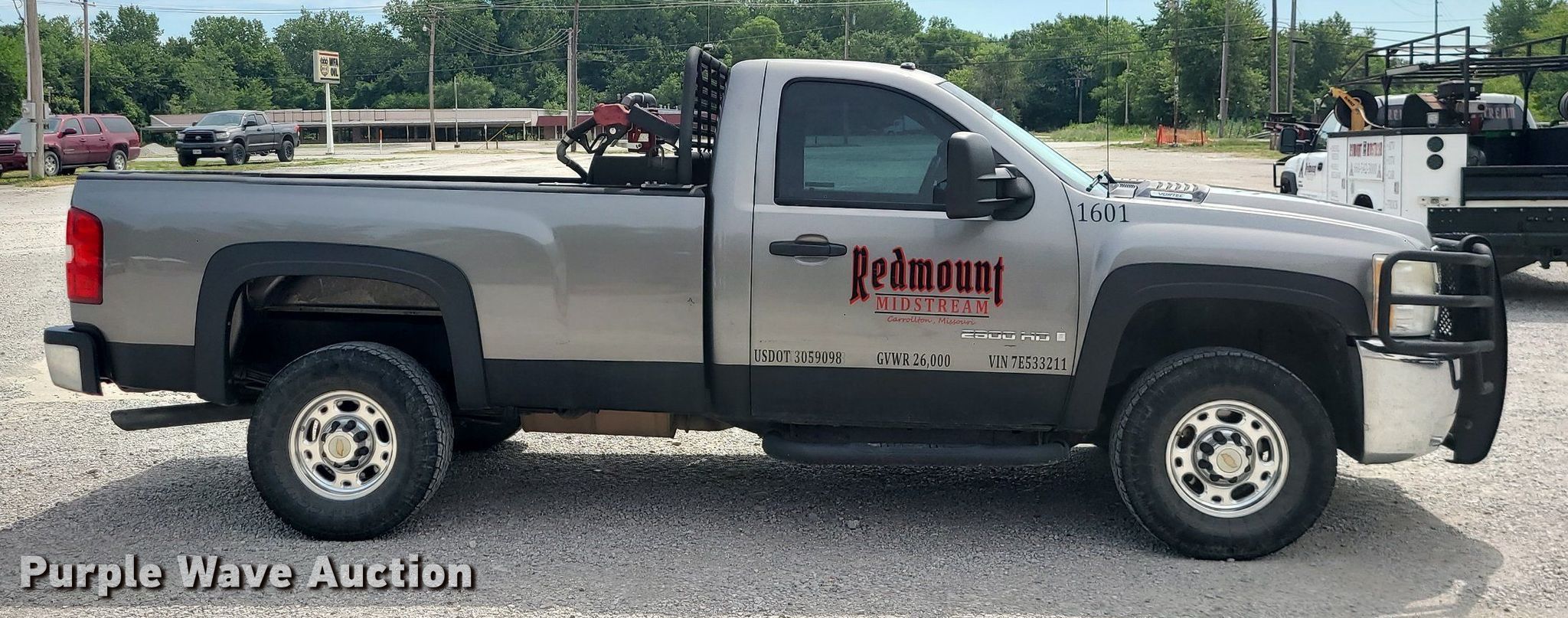 2007 Chevrolet Silverado 2500HD pickup truck. Miles: 194,995 on odometer, Miles or hours may vary, unit still in use, VIN: 1GCHK24K07E533211. Engine Displacement: 6.0L V8 OHV, Cylinders: 8, Fuel type: Gas. Transmission Automatic, Four wheel drive. Interior AC, Heat, Power windows, Power locks, Cruise control. Tires Size: 265/75R16. Notes Two way radio not included, Dash warning indicator: TPMS. Missouri title. Title distribution may be delayed up to 14 days from verification of funds. Redmount Midstream llc.. 912 South Main Street. Carrollton, MO 64633