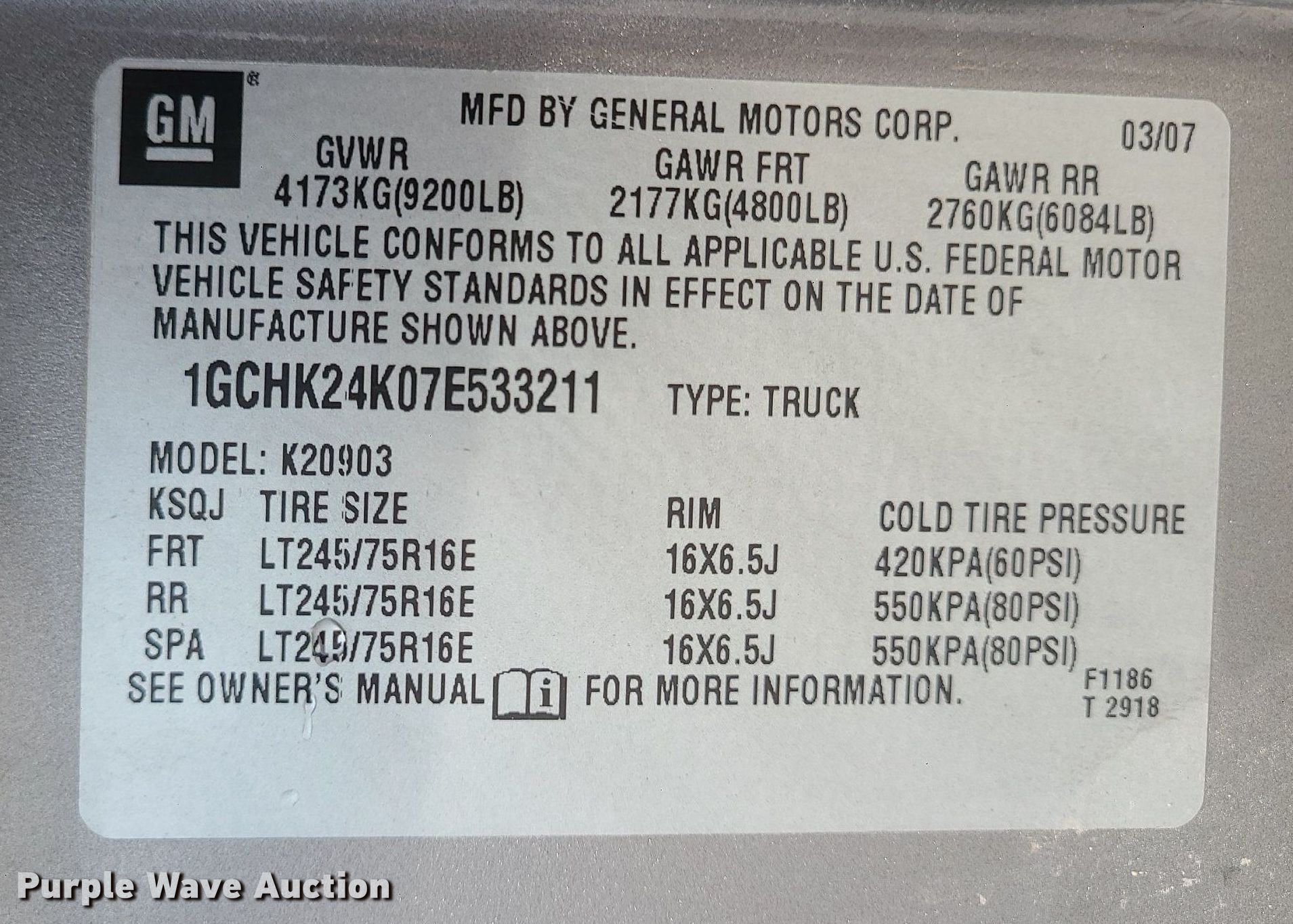 - VIN: 1GCHK24K07E533211